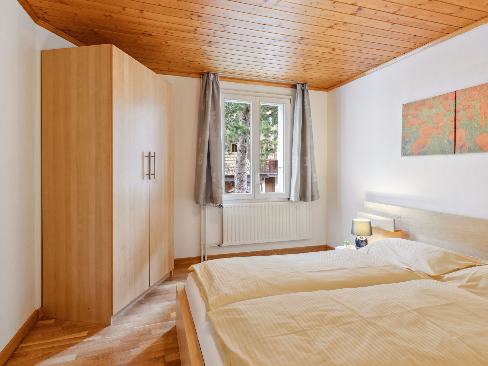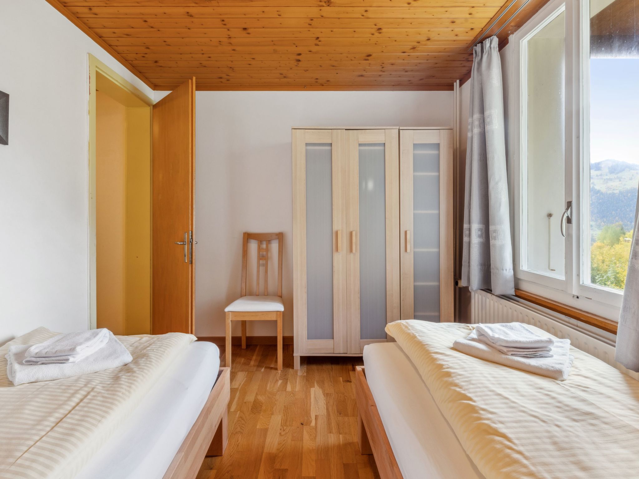 "Apt. No.18", 3-Zimmer-Wohnung 60 m2 im 1. Stock. Komfortabel und gemütlich eingerichtet: Wohn-/Esszimmer mit Esstisch. 1 Zimmer mit 1 franz. Bett (140 cm, Länge 200 cm). 1 Zimmer mit 1 x 2 Etagenbetten (90 cm, Länge 200 cm). Küche (Backofen, 4 Glaskeramikherd Platten, Toaster, Wasserkocher, Mikrowelle, elektrische Kaffeemaschine, Kapseln für die Kaffeemaschine (Nespresso) extra). Bad/Dusche/WC. Kleiner Balkon. Sicht auf die Berge. Zur Verfügung: Haartrockner. Bitte beachten: Nichtraucher-Unterkunft.