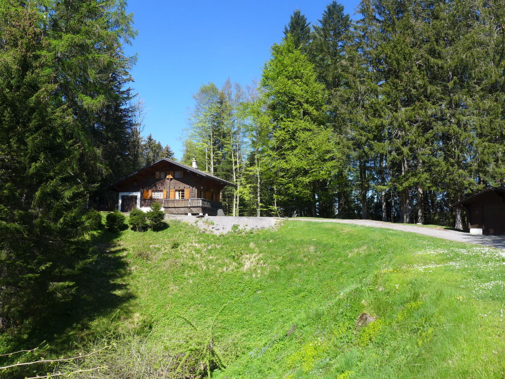 "Chalet Le Coucou", 5-Zimmer-Chalet 90 m2 auf 2 Stockwerken. Sehr einfach eingerichtet: kleiner Salon mit TV (Flachbildschirm). Ausgang zum Balkon. Esszimmer mit Esstisch. Kleine Küche (4 Kochplatten, Backofen, Mikrowelle, elektrische Kaffeemaschine, Racletteofen, Fondue Set (Käse)). Bad/WC. Obergeschoss: 1 Zimmer mit 2 Betten (90 cm). 1 Zimmer, ohne Schrank mit 2 Betten (90 cm). 1 Zimmer, ohne Schrank mit 1 Bett (90 cm). Eingeschränkte Sicht auf die Berge und den Wald. Zur Verfügung: Internet (Wireless LAN, gratis). Bitte beachten: nicht geeignet für Kinder unter 6 Jahren. Nichtraucher-Haus. 2 Haustiere/Hunde erlaubt.