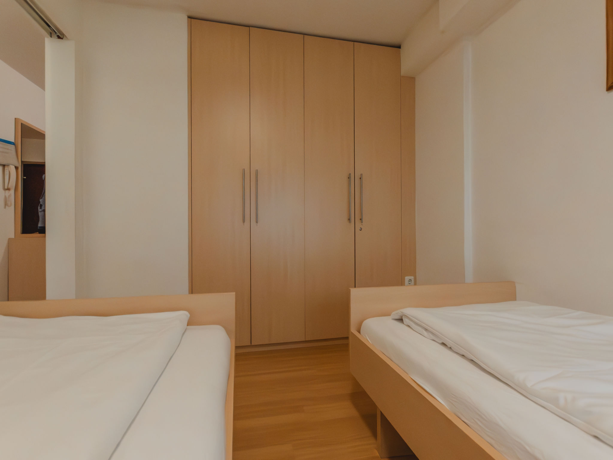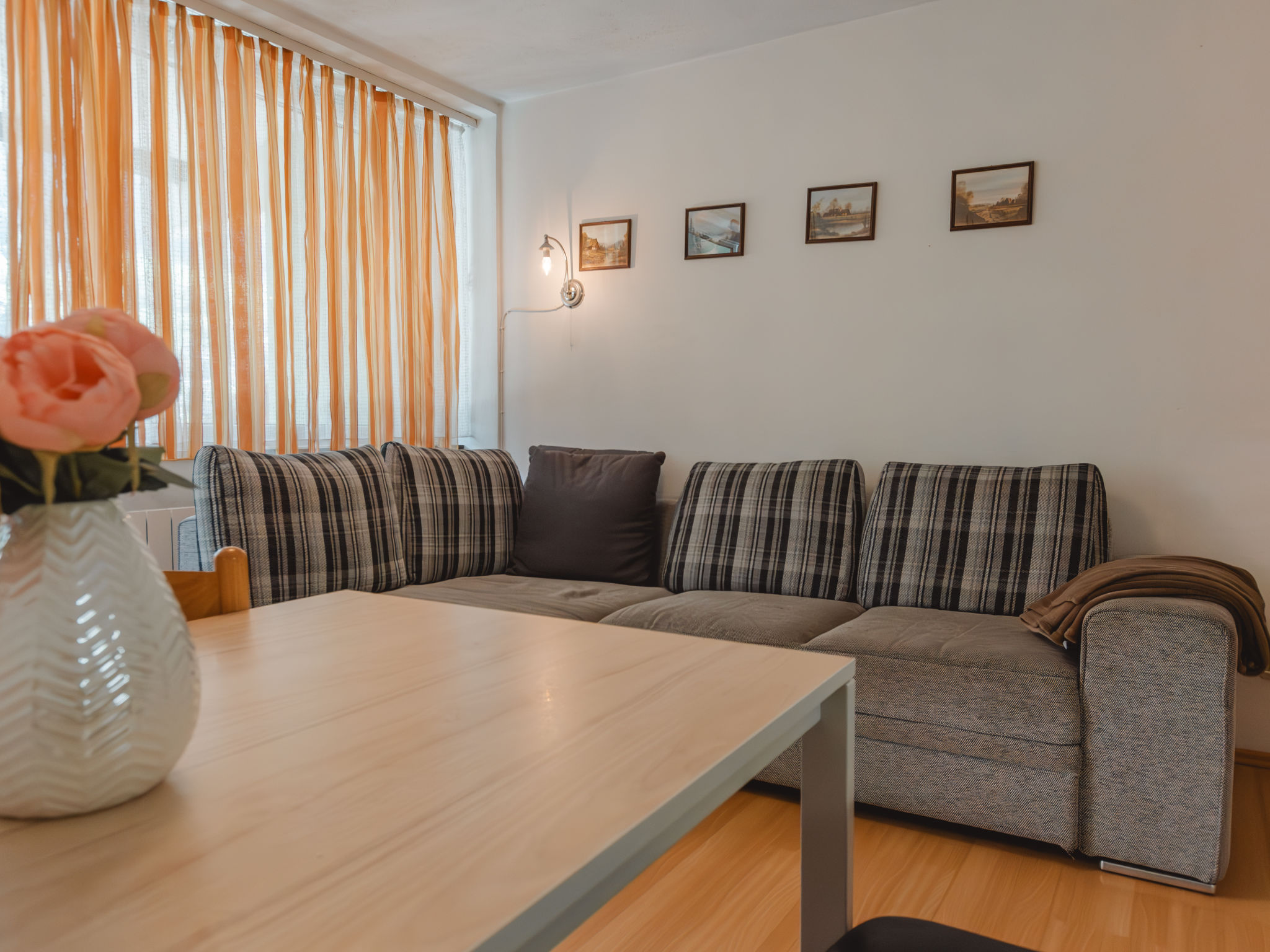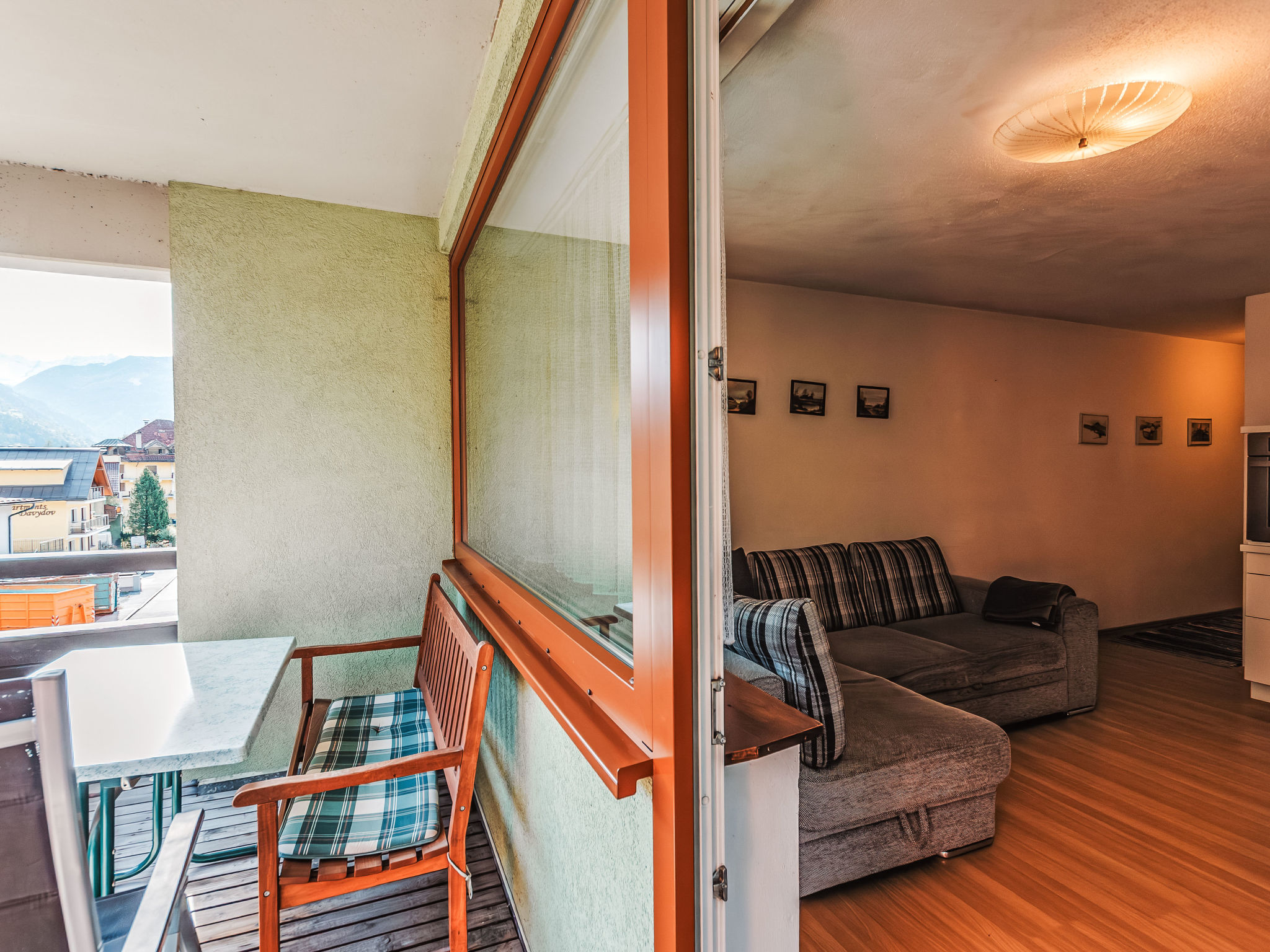 2-Zimmer-Wohnung 45 m2 im 3. Stock. Stilvoll und gemütlich eingerichtet: Eingang. Wohn-/Esszimmer mit 1 Doppeldiwanbett und Sat-TV. Ausgang zum Balkon. 1 Zimmer, ohne Fenster mit 2 Betten. Offene Küche (Backofen, Geschirrspüler, 2 Glaskeramikherd Platten, Toaster, Wasserkocher, elektrische Kaffeemaschine). Bad, sep. WC. Balkon. Balkonmöbel. Schöne Sicht auf die Landschaft. Zur Verfügung: Internet (Wireless LAN, gratis). 50402-000758-2021