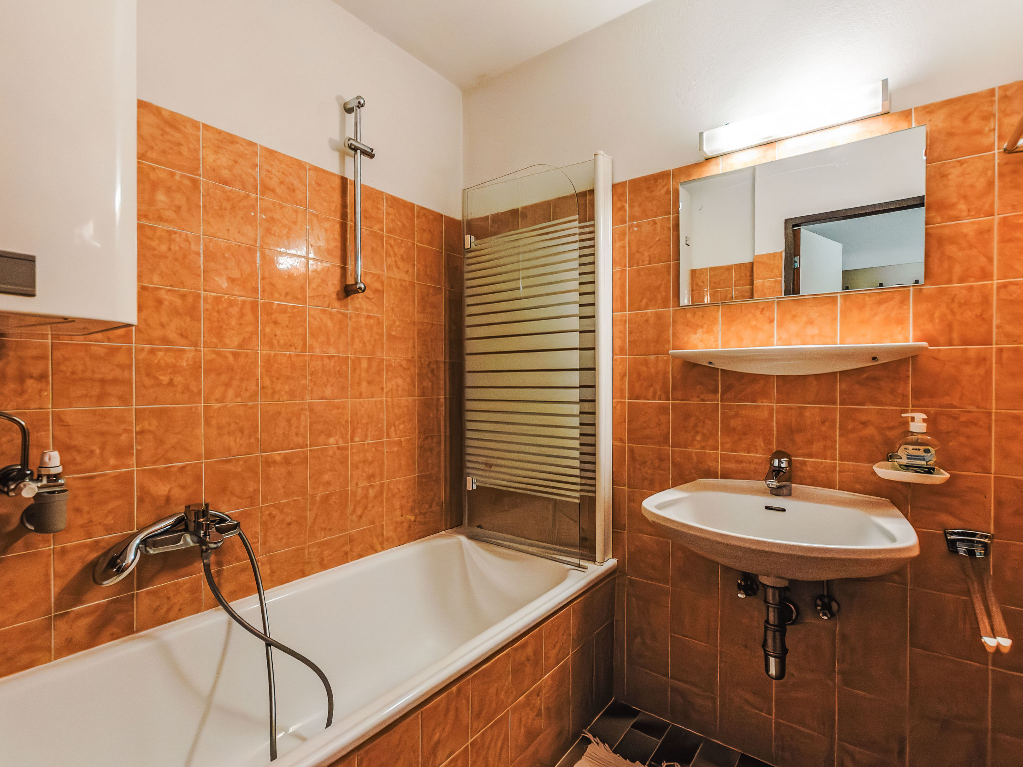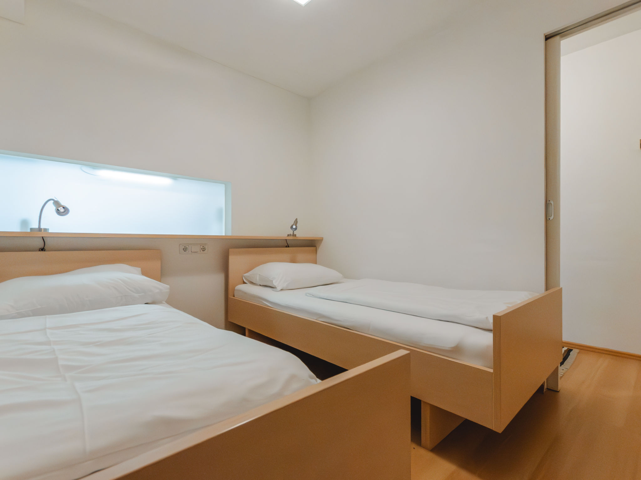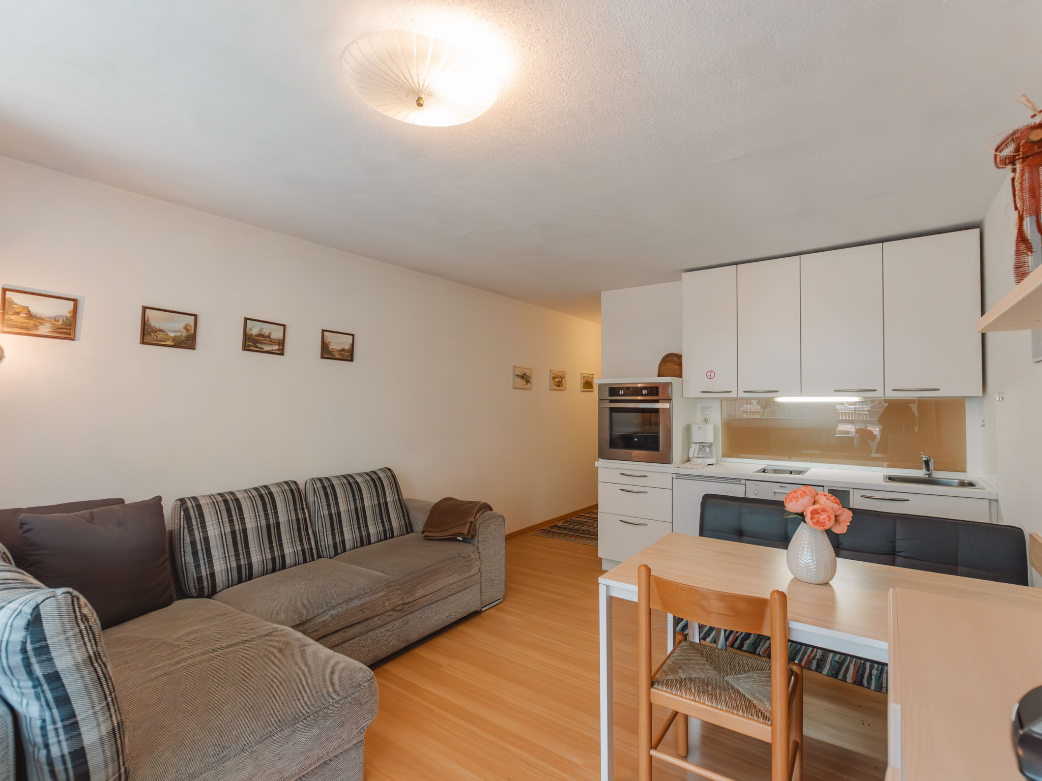 2-Zimmer-Wohnung 45 m2 im 3. Stock. Stilvoll und gemütlich eingerichtet: Eingang. Wohn-/Esszimmer mit 1 Doppeldiwanbett und Sat-TV. Ausgang zum Balkon. 1 Zimmer, ohne Fenster mit 2 Betten. Offene Küche (Backofen, Geschirrspüler, 2 Glaskeramikherd Platten, Toaster, Wasserkocher, elektrische Kaffeemaschine). Bad, sep. WC. Balkon. Balkonmöbel. Schöne Sicht auf die Landschaft. Zur Verfügung: Internet (Wireless LAN, gratis). 50402-000758-2021