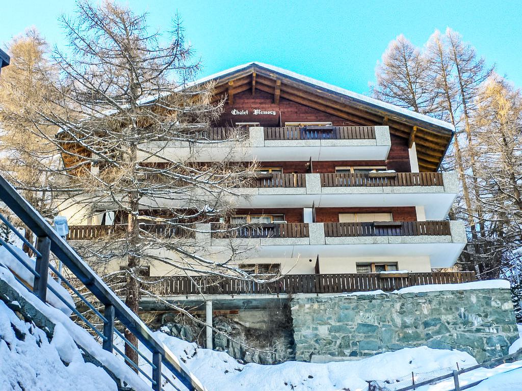 Einfaches Mehrfamilienhaus "Memory". Im Ortsteil Trift, 750 m vom Zentrum von Zermatt, ruhige, sonnige Lage am Hang. Im Hause: Waschmaschine, Wäschetrockner (zur Mitbenutzung, extra). Steiler Fussweg (60 Stufen) bis zum Haus. Supermarkt 700 m, Restaurant 300 m, Bäckerei 400 m, Zentrum zu Fuss in 15 Minuten erreichbar, Bushaltestelle "Bahnhof" 750 m, Bahnstation "Bahnhof Zermatt" 750 m. Bergbahn 750 m, Skiverleih 700 m, Skibushaltestelle 750 m, Skischule, Kinderskischule 450 m. Bitte beachten: kein Fahrstuhl vorhanden. Taxi kann nicht bis zum Haus fahren.
