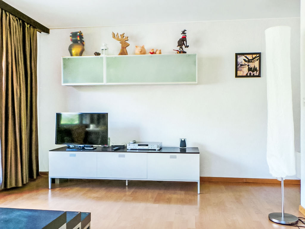 3-Zimmer-Wohnung 70 m2 im 2. Stock. Einfach und zweckmässig eingerichtet: Wohnzimmer mit TV, Radio und DVD. Ausgang zum Balkon. 1 Zimmer mit 1 Doppelbett (2 x 90 cm, Länge 200 cm). 1 Zimmer mit 1 Bett (90 cm, Länge 200 cm), 1 x 2 Etagenbetten (90 cm, Länge 200 cm). Wohnküche (4 Kochplatten, Backofen, Toaster, Wasserkocher, Tiefkühler, elektrische Kaffeemaschine, Fondue Set (Chinoise)) mit Esstisch. Bad/WC. Balkon. Balkonmöbel. Schöne Sicht auf die Berge und die Ortschaft. Zur Verfügung: Haartrockner. Internet (Wireless LAN, gratis). Bitte beachten: Nichtraucher-Unterkunft.