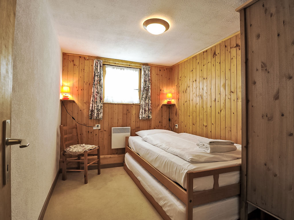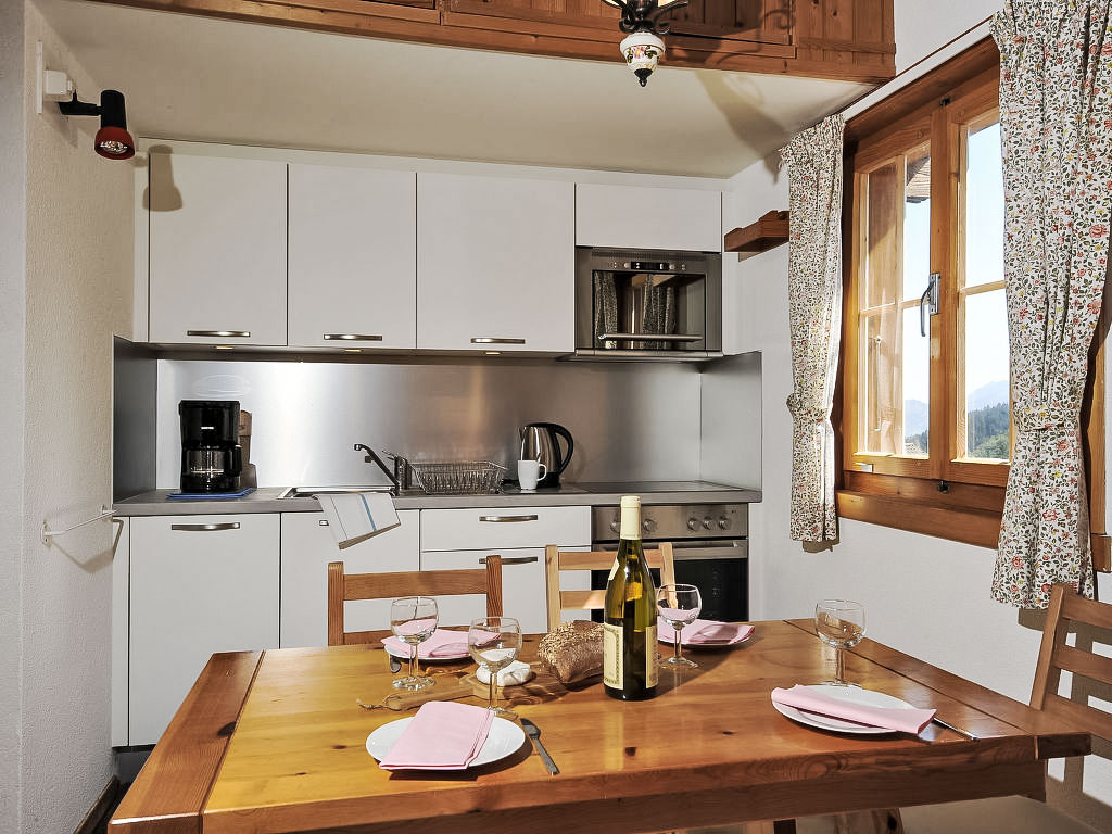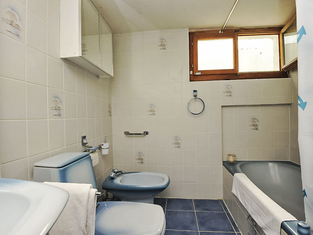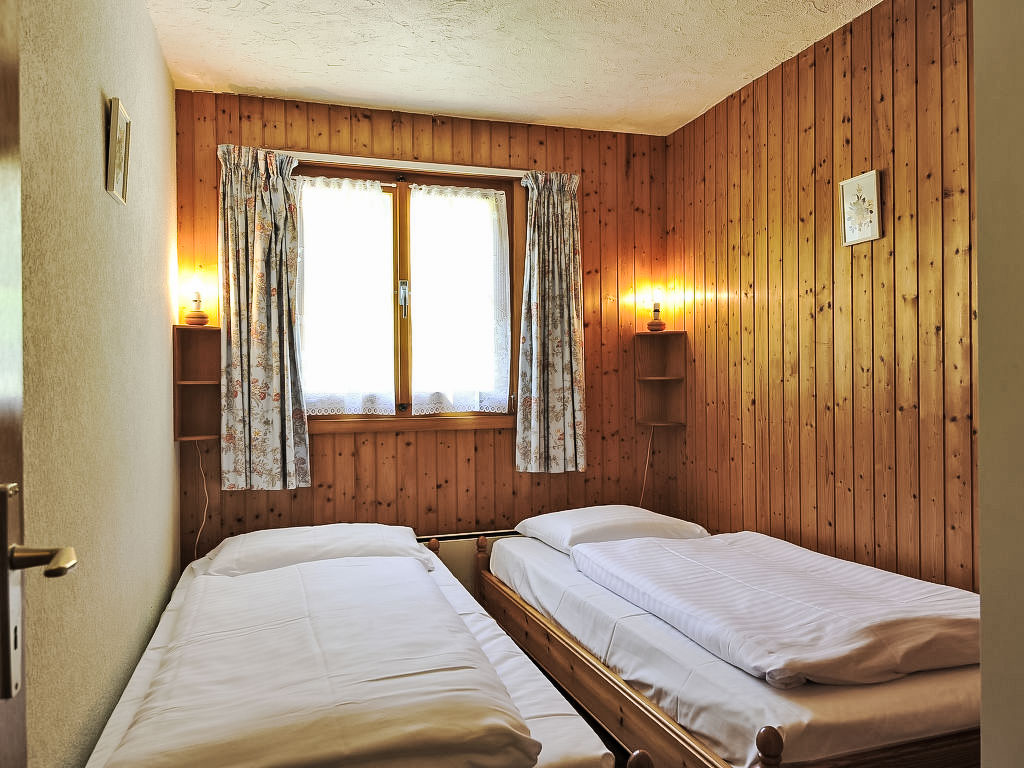 "Mountain View", 5-Zimmer-Chalet 110 m2 auf 3 Stockwerken. Zweckmässig und gemütlich eingerichtet: 1 Zimmer mit 2 Betten (90 cm, Länge 200 cm). 1 kleines Zimmer mit 2 Betten (70 cm, Länge 180 cm). 1 Zimmer mit 2 Betten (90 cm, Länge 190 cm). Bad/Bidet/WC. Unteres Geschoss: 1 Zimmer mit 1 Bett (90 cm, Länge 190 cm). 1 Zimmer mit 1 Doppelbett (160 cm, Länge 200 cm). Bad/Bidet/WC. Obergeschoss: Wohn-/Esszimmer mit Esstisch, Sat-TV und Video. Ausgang zum Balkon, Richtung Süden. Offene Küche (Backofen, Geschirrspüler, 4 Glaskeramikherd Platten, Mikrowelle, Tiefkühler, elektrische Kaffeemaschine, Fondue Set (Käse)). Sep. WC. Sehr schöne Sicht auf die Berge und die Landschaft. Zur Verfügung: Waschmaschine, Wäschetrockner. Internet (Wireless LAN, gratis). Bitte beachten: Nichtraucher-Unterkunft.