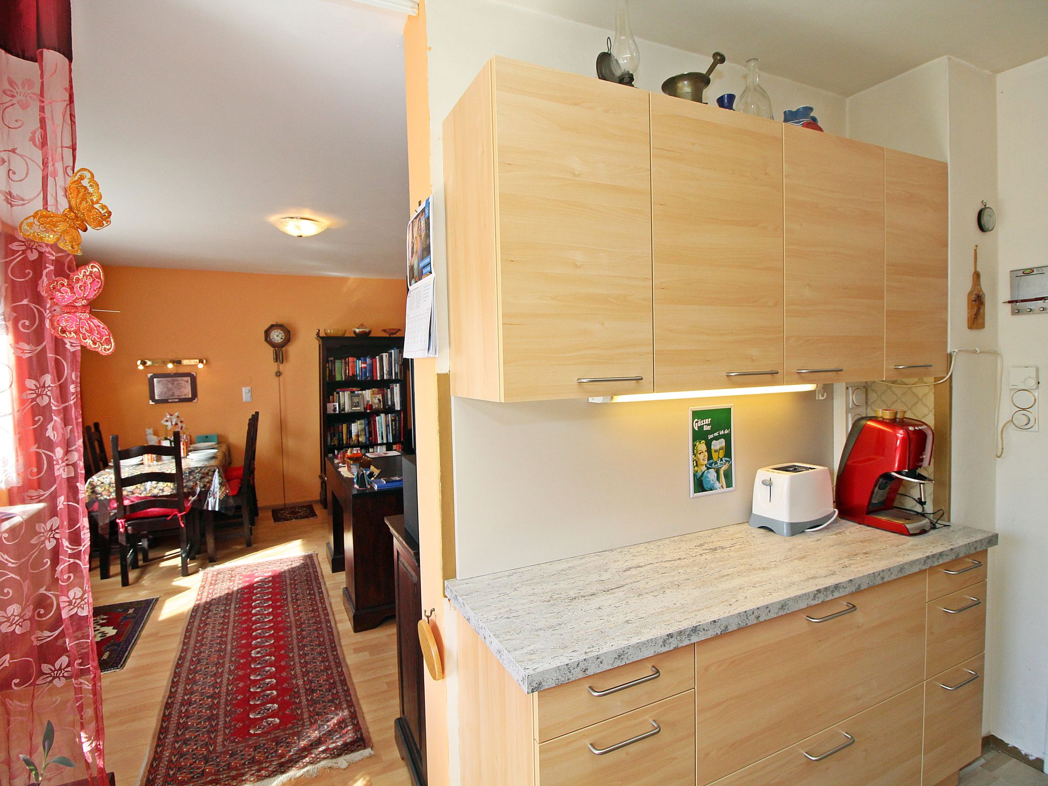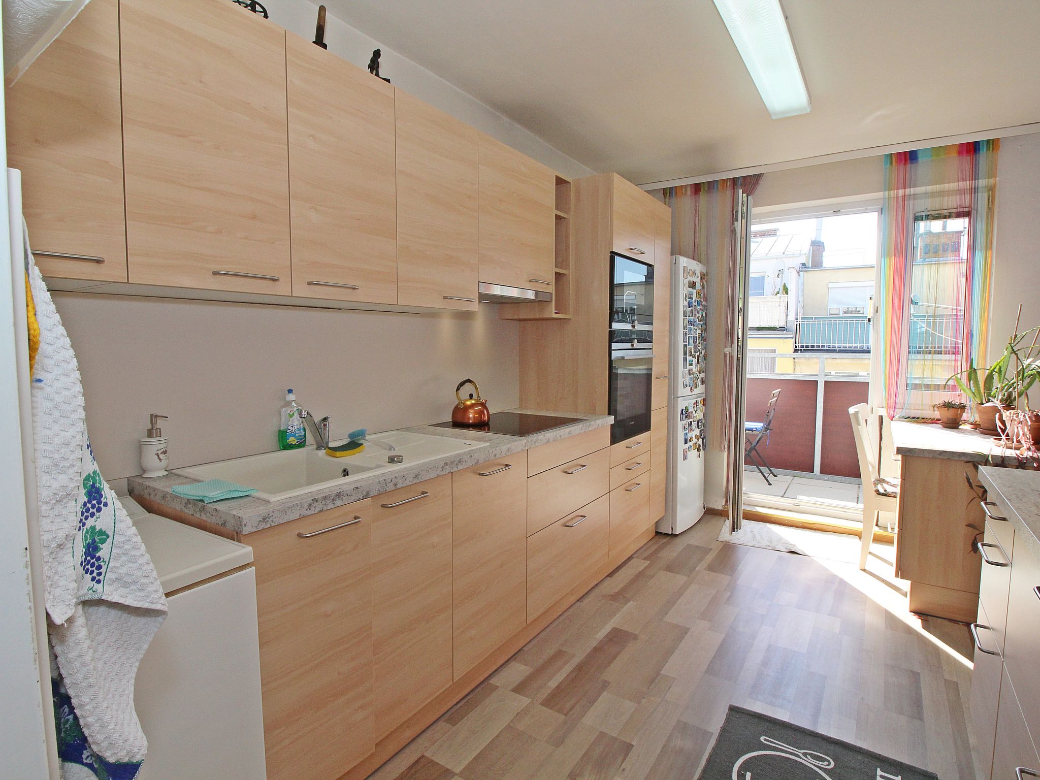 "Vienna waits for you", 3-Zimmer-Wohnung 65 m2, im Dachgeschoss. Geräumig und hell, rustikal und geschmackvoll eingerichtet: Eingang. Wohn-/Esszimmer mit Esstisch, Sat-TV, Flachbildschirm und Stereoanlage. Ausgang zur Terrasse. 1 Doppelzimmer, Fenster zum Hof mit Sat-TV, Flachbildschirm und Ventilator. 1 kleines Doppelzimmer mit 1 franz. Bett (140 cm, Länge 200 cm). Küche (Backofen, Geschirrspüler, 4 Glaskeramikherd Platten, Mikrowelle, Tiefkühler, elektrische Kaffeemaschine, Kapseln für die Kaffeemaschine (Cafissimo) extra). Bad, sep. WC. Holzböden. Kleine Terrasse 8 m2, Südwestlage. Terrassenmöbel. Seitliche Sicht auf die Stadt. Zur Verfügung: Waschmaschine, Bügeleisen, Haartrockner. Internet (Wireless LAN, gratis). Bitte beachten: geeignet für Familien. Nichtraucher-Unterkunft.