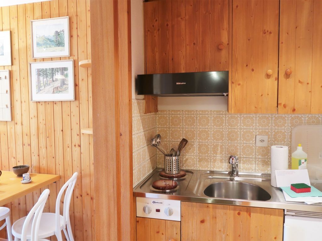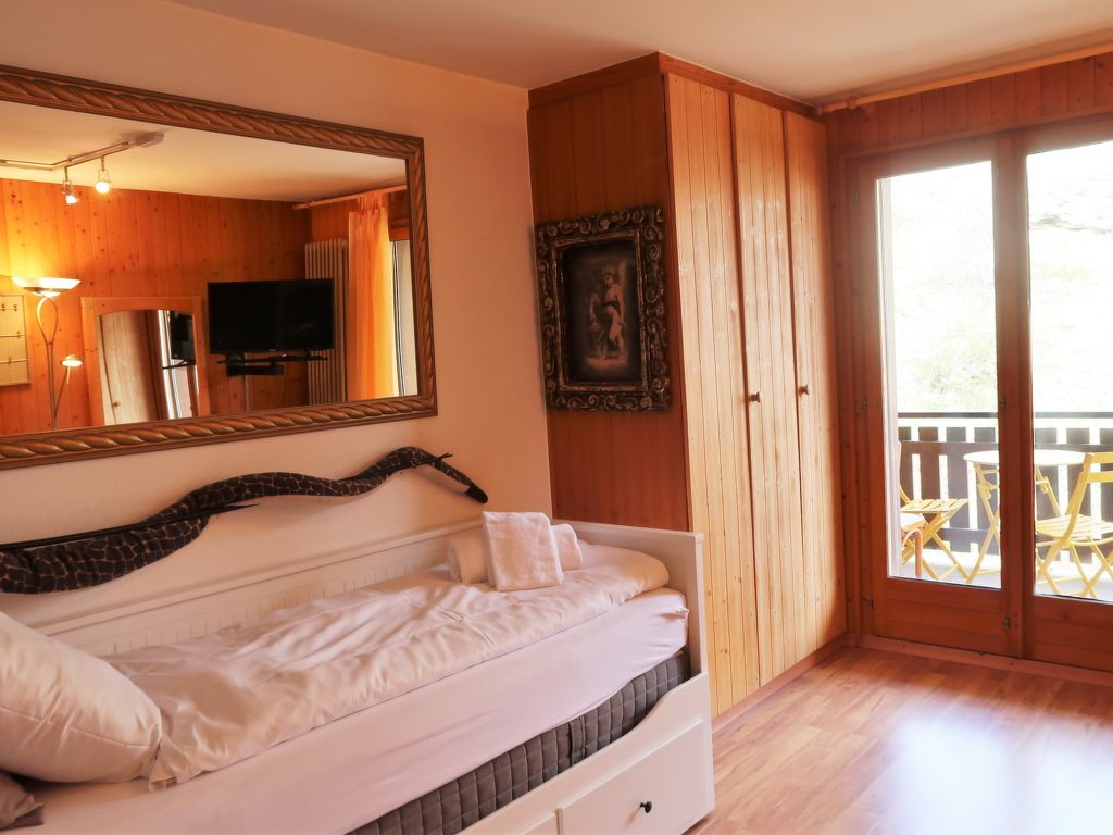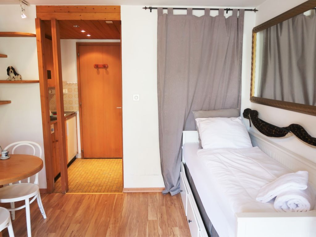 "Beau-Séjour 35", 1-Zimmer-Studio 20 m2 im 5. Stock. Zweckmässig eingerichtet: Wohn-/Schlafzimmer mit 1 Ausziehbett (2 Pers. 2 x 90 cm, Länge 190 cm), Kabel-TV. Ausgang zum Balkon, Richtung Norden. Offene Küche (2 Kochplatten, Mikrowelle). Dusche/WC. Zur Verfügung: Internet (Wireless LAN, gratis). Bitte beachten: Nichtraucher-Unterkunft. 1 Haustier/Hund erlaubt.