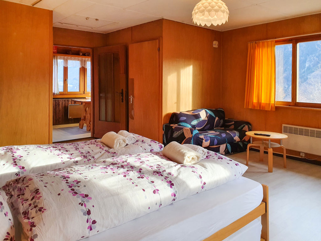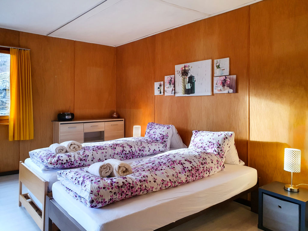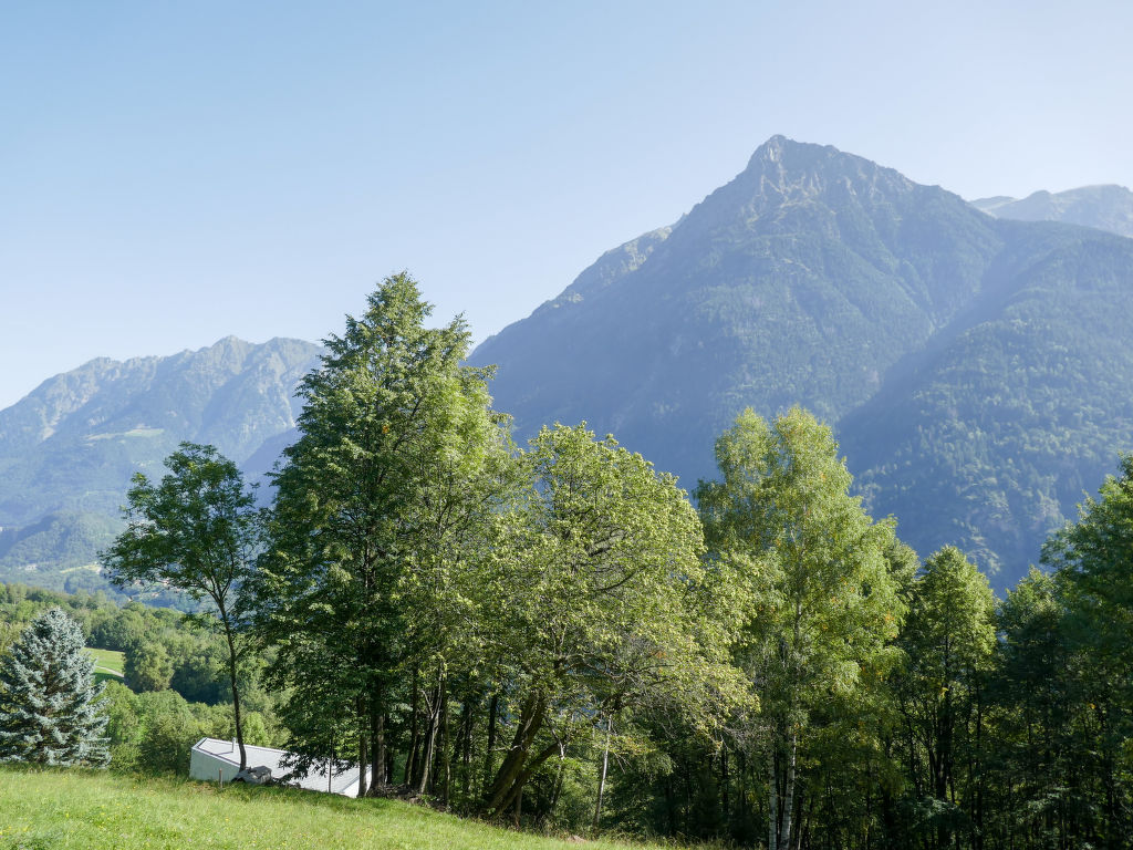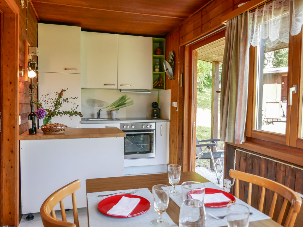 "Baita Bella Vista", 2-Zimmer-Haus 60 m2. Hell, einfach und rustikal eingerichtet: Wohn-/Schlafzimmer mit 2 Ausziehbetten (3 Pers. 2 x 90 cm, Länge 200 cm), TV und Radio. Offene Küche (Backofen, 4 Glaskeramikherd Platten, elektrische Kaffeemaschine, Kapseln für die Kaffeemaschine (Dolcegusto) extra, Racletteofen, Fondue Set (Käse)) mit Esstisch. Ausgang zum Garten. Dusche, sep. WC. E-Heizung. Gartensitzplatz, Garten. Terrassenmöbel, Gartengrill. Herrliche Panoramasicht auf die Berge und das Tal. Zur Verfügung: Waschmaschine, Wäschetrockner, Kinderhochstuhl, Babybett bis 2 Jahre (extra), Haartrockner. Internet (Wireless LAN). Bitte beachten: Nichtraucher-Unterkunft. Maximal 1 Haustier/Hund erlaubt. Feuerlöscher.
