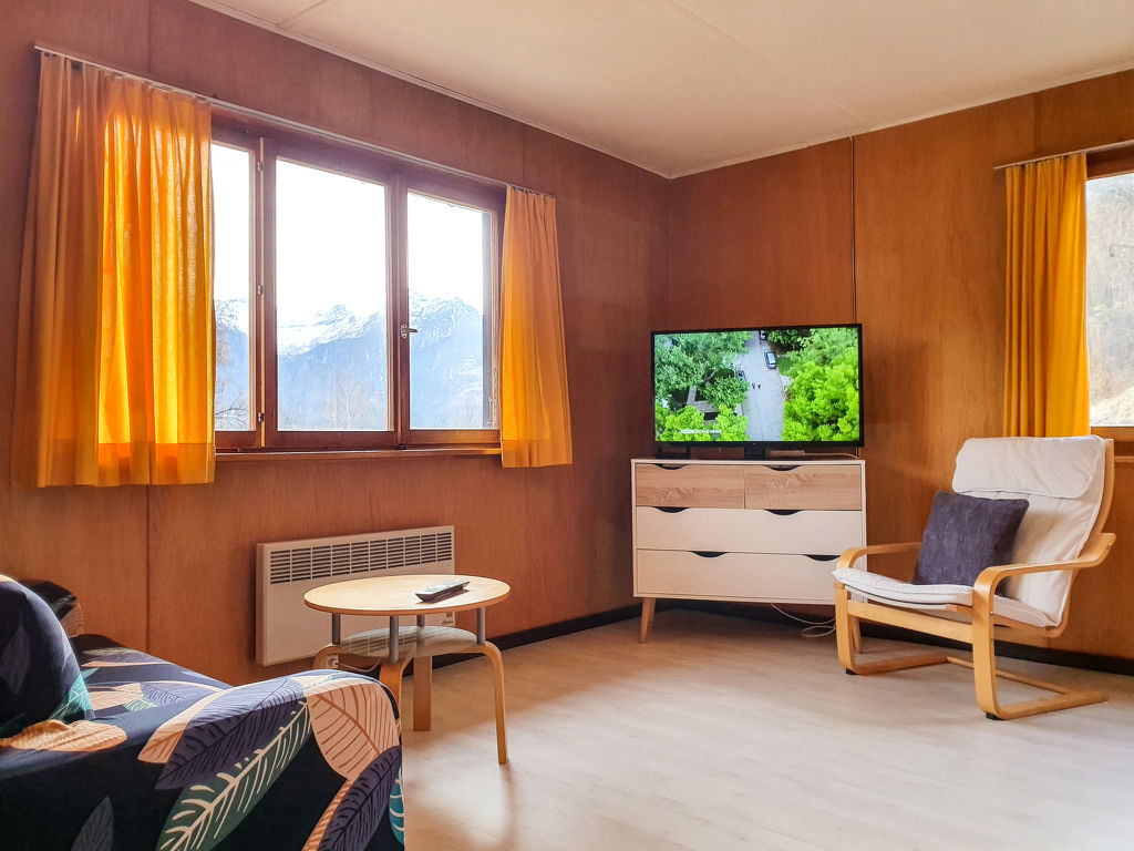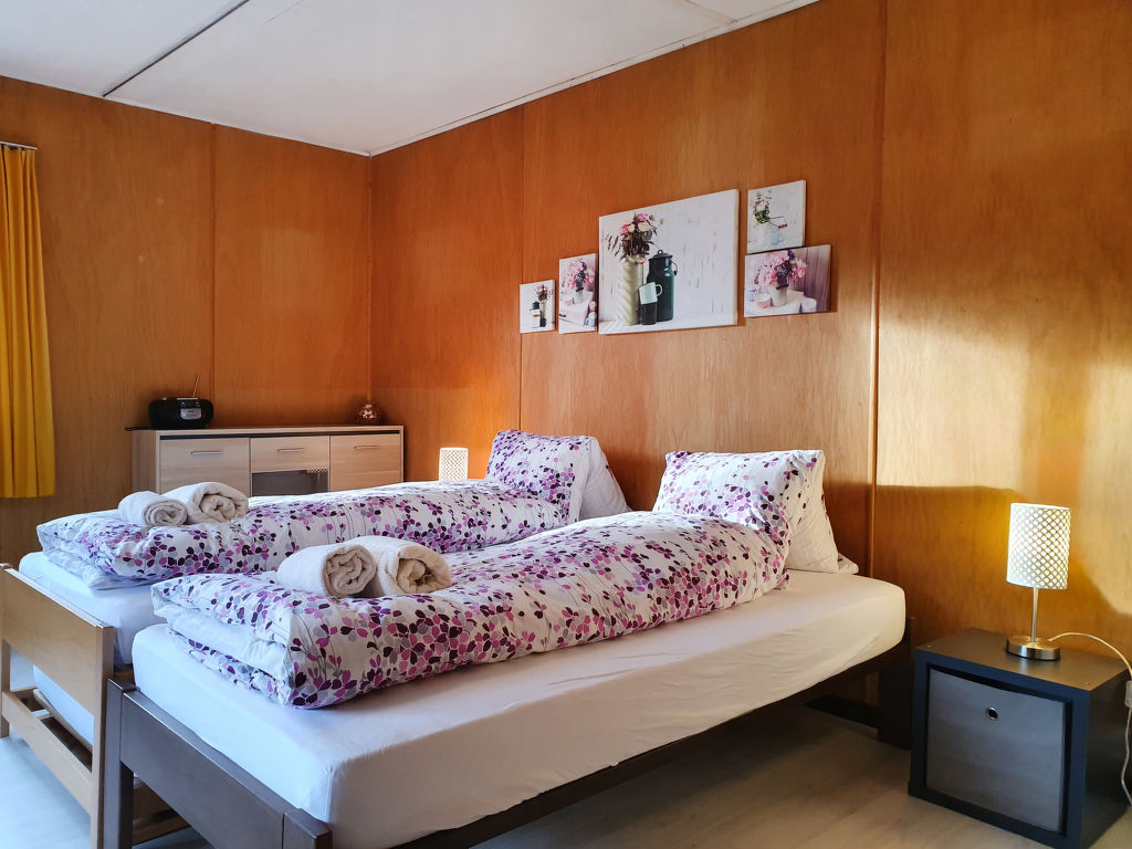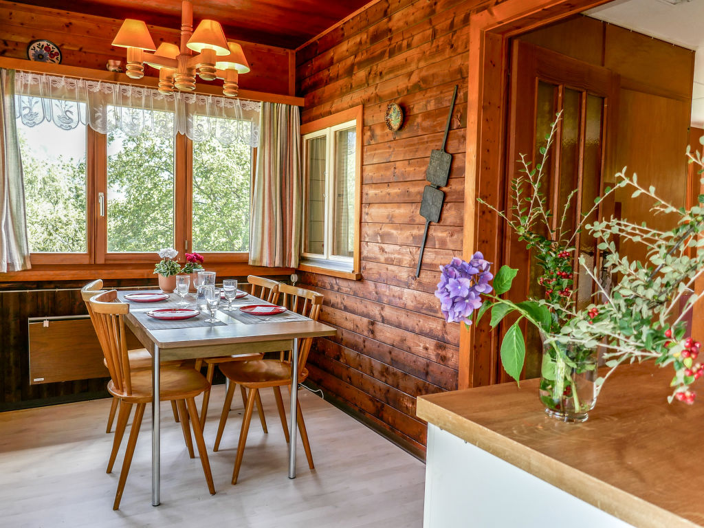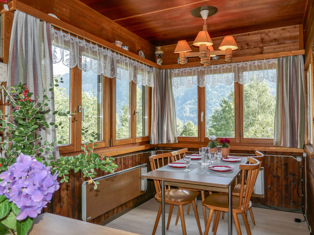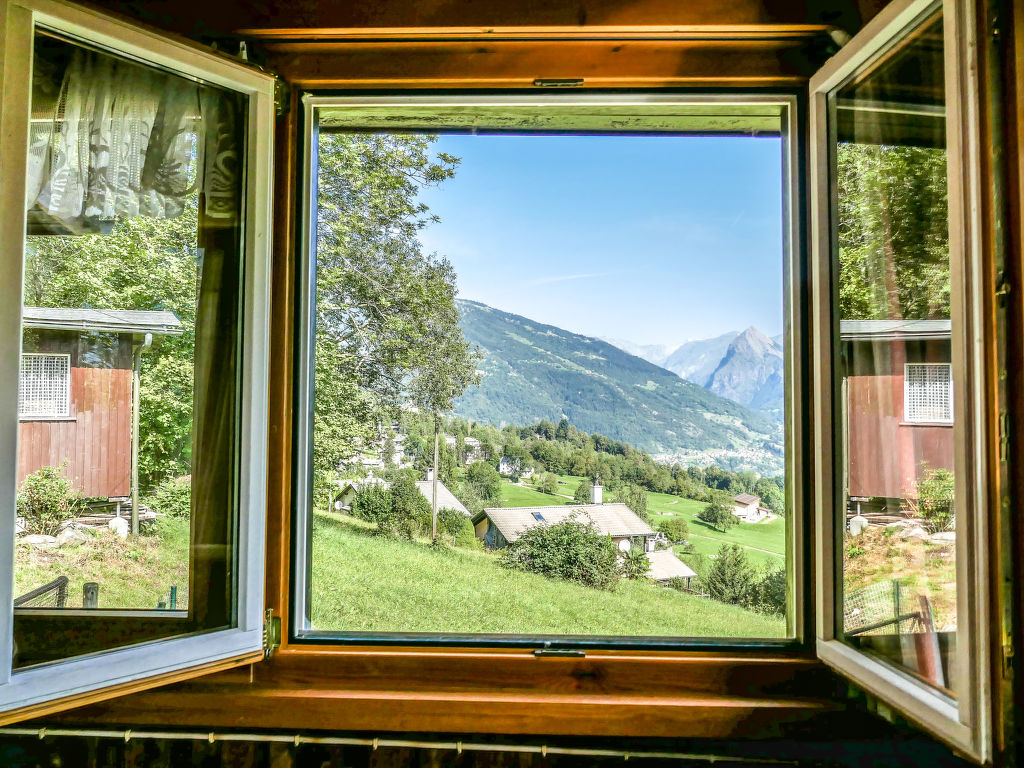 "Baita Bella Vista", 2-Zimmer-Haus 60 m2. Hell, einfach und rustikal eingerichtet: Wohn-/Schlafzimmer mit 2 Ausziehbetten (3 Pers. 2 x 90 cm, Länge 200 cm), TV und Radio. Offene Küche (Backofen, 4 Glaskeramikherd Platten, elektrische Kaffeemaschine, Kapseln für die Kaffeemaschine (Dolcegusto) extra, Racletteofen, Fondue Set (Käse)) mit Esstisch. Ausgang zum Garten. Dusche, sep. WC. E-Heizung. Gartensitzplatz, Garten. Terrassenmöbel, Gartengrill. Herrliche Panoramasicht auf die Berge und das Tal. Zur Verfügung: Waschmaschine, Wäschetrockner, Kinderhochstuhl, Babybett bis 2 Jahre (extra), Haartrockner. Internet (Wireless LAN). Bitte beachten: Nichtraucher-Unterkunft. Maximal 1 Haustier/Hund erlaubt. Feuerlöscher.