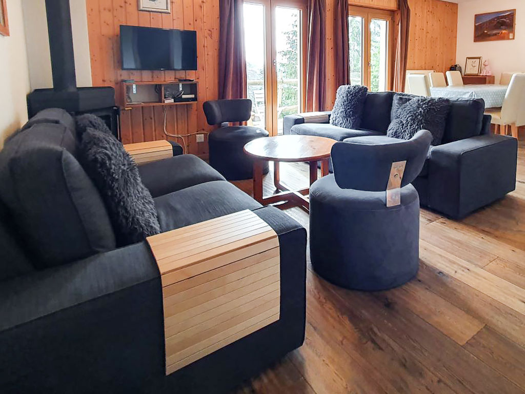 "Genepi", 5-Zimmer-Reihenhaus 100 m2 auf 2 Stockwerken. Komfortabel und geschmackvoll eingerichtet: Wohn-/Esszimmer mit Schwedenofen, Sat-TV, Internationale TV-Sender und DVD. Ausgang zur Terrasse. 1 kleines Zimmer mit 2 Betten. Offene Küche (Backofen, Geschirrspüler, 4 Glaskeramikherd Platten, Mikrowelle, elektrische Kaffeemaschine, Fondue Set (Käse)). Dusche/WC. Ölheizung. Obergeschoss: 1 Zimmer mit 1 Doppelbett. Ausgang zum Balkon. 1 Zimmer mit 1 Bett. Ausgang zum Balkon. 1 Zimmer mit 2 Betten. Bad/WC. Ölheizung. Parkettböden. Balkon, Terrasse. Panoramasicht. Zur Verfügung: Internet (Wireless LAN). Bitte beachten: Nichtraucher-Unterkunft. ein Schlitten wird für das Gespäck zur Verfügung gestellt.