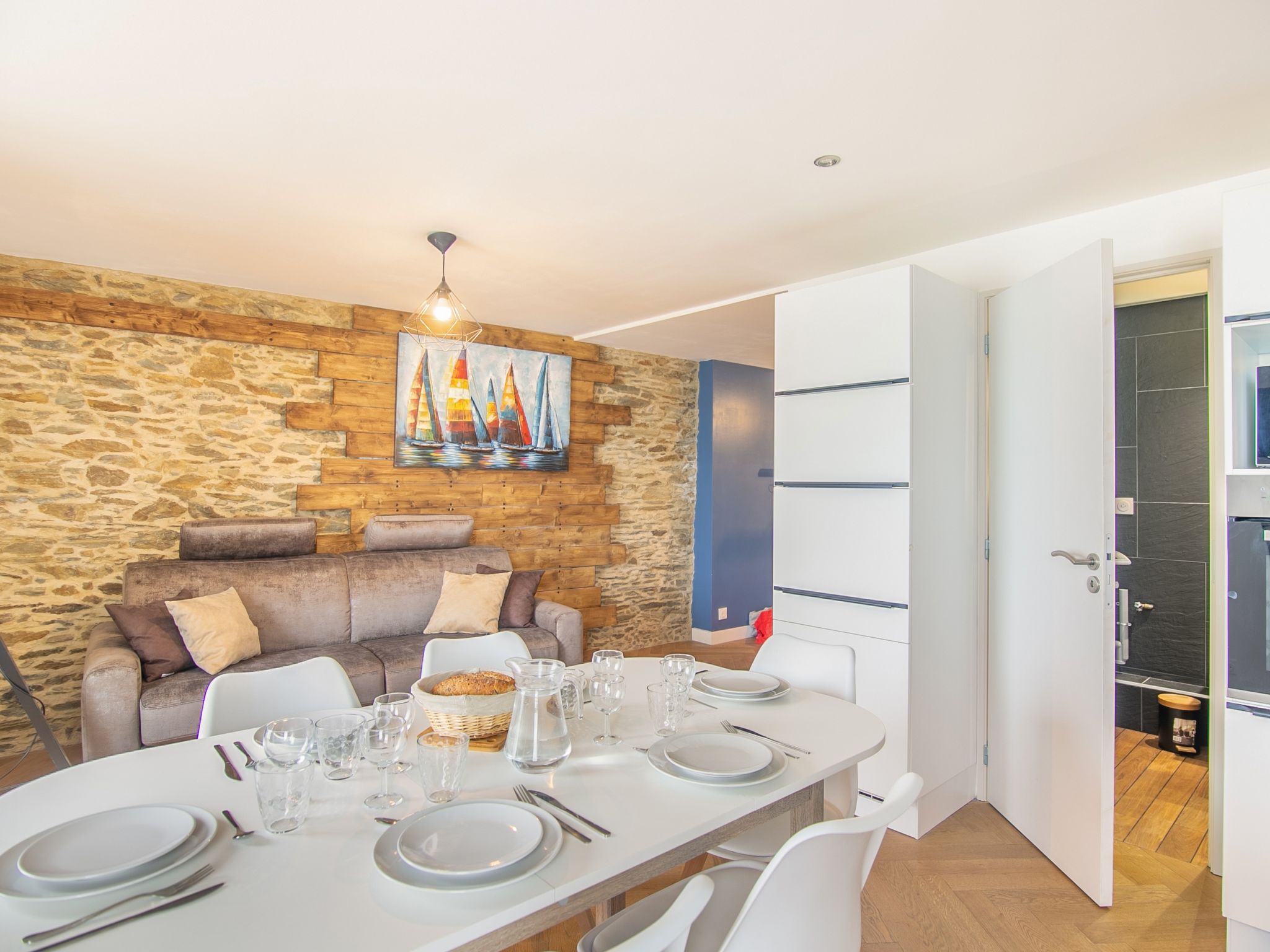 Zweifamilienhaus auf 2 Stockwerken, renoviert im Jahre 2021. 2 Wohnungen im Ferienhaus. Im Ortsteil port de Cancale, ruhige, sonnige Lage, vom Meer, 10 m vom Strand. Gebührenpflichtige Kurzparkzone, Montag - Sonntag. Supermarkt 2.4 km, Restaurant, Bar 50 m, Bäckerei 900 m, Café 50 m, Zentrum zu Fuss in 5 Minuten erreichbar, Bushaltestelle "Eglise" 1.3 km, Sandstrand "Port mer" 4 km, Thermalbad "Thermes marins de St Malo" 16 km. Sporthafen 50 m, Golfplatz (18 Loch) 25 km, Reitstall 2 km. Nahe gelegene Sehenswürdigkeiten: grand aquarium de Saint Malo 14 km, St Malo Intramuros 17 km, La pointe du grouin 5 km, Dinard 22 km, Dinan 25 km, Le Mont St Michel 48 km. Die Schlüsselübergabe findet bei der Agentur Interhome in Cancale statt.