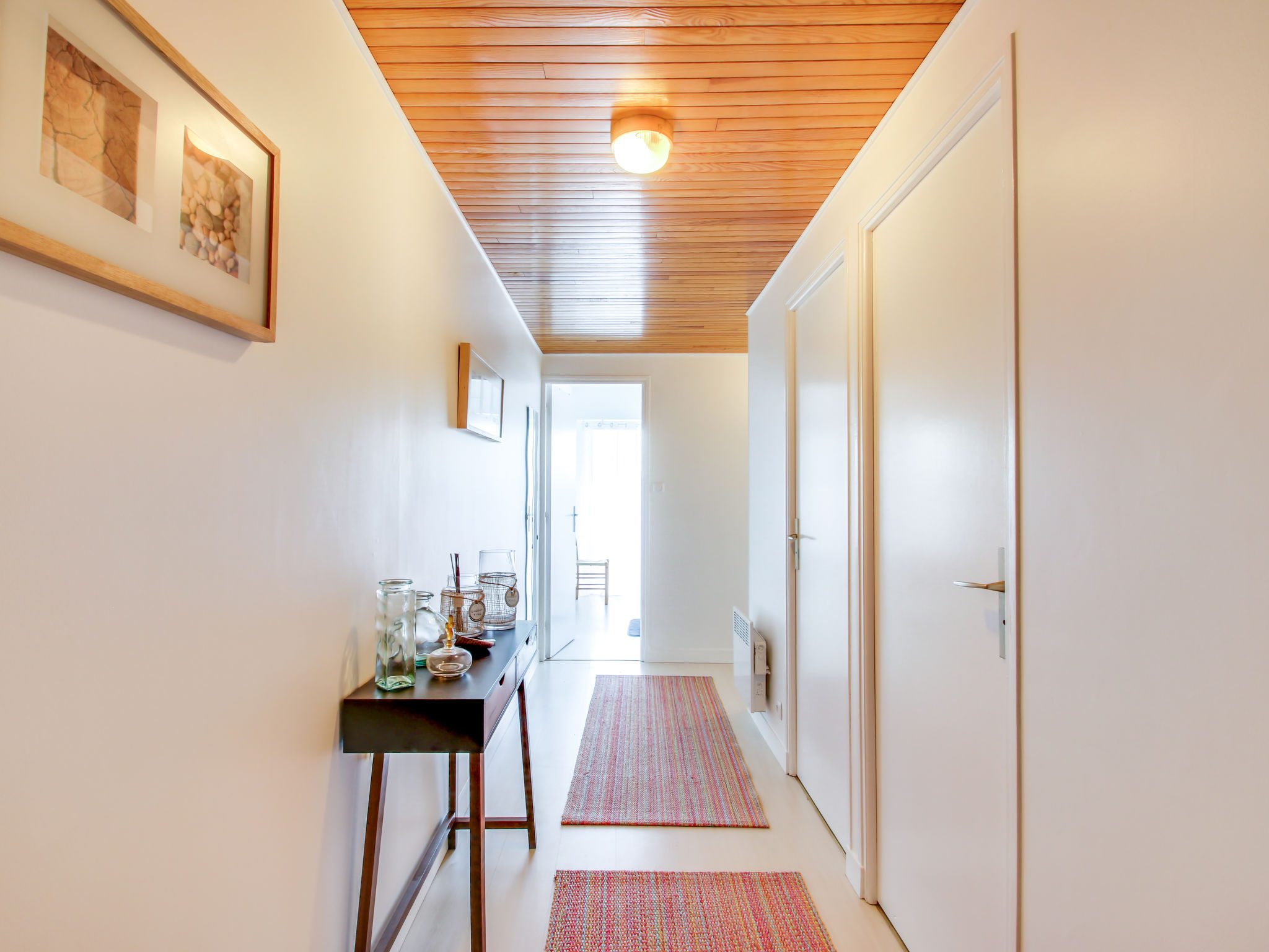 2-Zimmer-Wohnung 66 m2 im 2. Stock, Nordostlage. Hell, komfortabel und schön eingerichtet: Wohn-/Esszimmer mit 1 Diwanbett (160 cm, Länge 190 cm), TV (Flachbildschirm). Ausgang zum Balkon. 1 Zimmer mit 1 franz. Bett (160 cm, Länge 190 cm). Offene Küche (Backofen, Geschirrspüler, 4 Glaskeramikplatten, Toaster, Wasserkocher, Mikrowelle, elektrische Kaffeemaschine). Bad, sep. WC. E-Heizung. Balkon 15 m2, Nordlage und Ostlage. Terrassenmöbel. Fernsicht auf das Meer. Zur Verfügung: Waschmaschine, Bügeleisen, Haartrockner. Internet (Wireless LAN, gratis). Parkplatz Nr. 4 (1 Auto). Bitte beachten: Nichtraucher-Unterkunft. Rauchmelder.