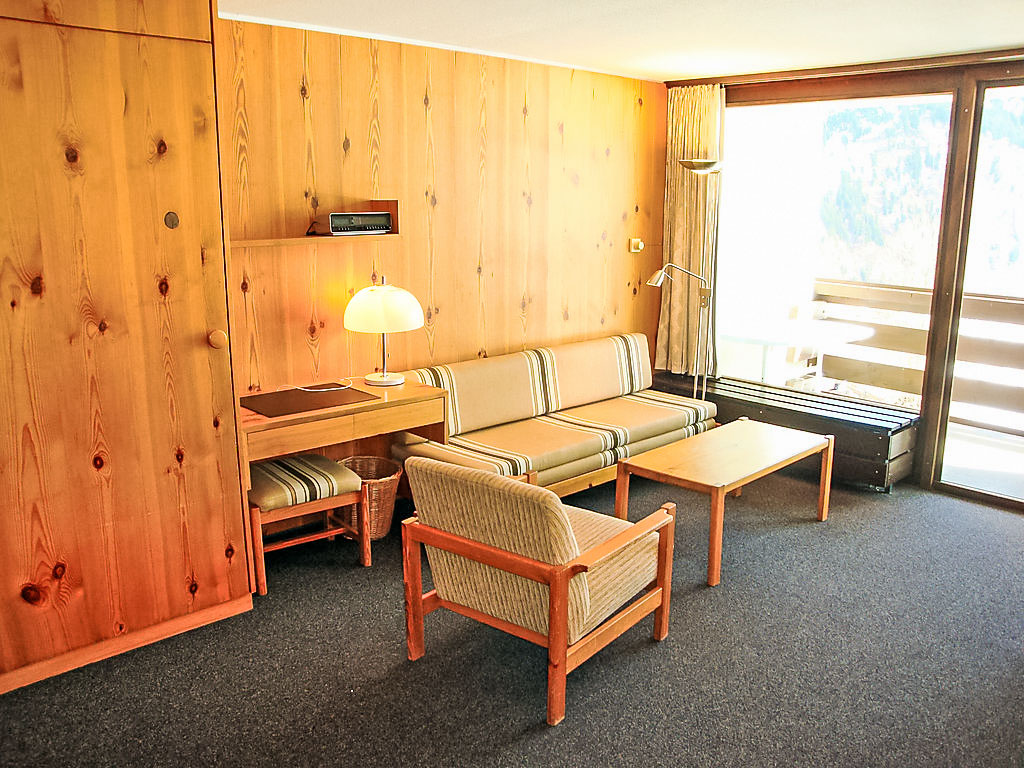 "Apt A 082", 3-Zimmer-Wohnung 90 m2 im 8. Stock. Einfach und zweckmässig eingerichtet: Wohn-/Esszimmer mit 1 Doppelwandschrankbett, Kabel-TV und Radio. 1 Zimmer mit 2 Betten und 1 x 2 Etagenbetten. Schlafnische mit 1 x 2 Etagenbetten. 1 Kinderzimmer mit 1 Bett. Grosse Wohnküche (Backofen). Bad/WC, Dusche/WC. Balkon, Südlage. Terrassenmöbel. Zur Verfügung: Internet (Wireless LAN, gratis). Sehr schöne Sicht auf den Medelsergletscher.