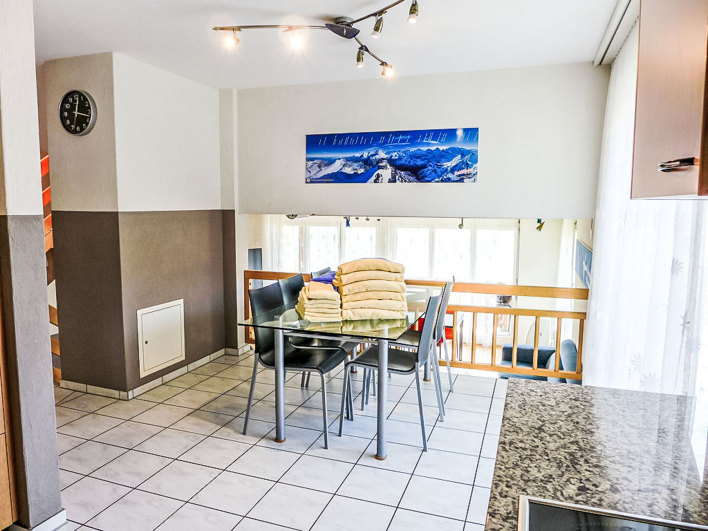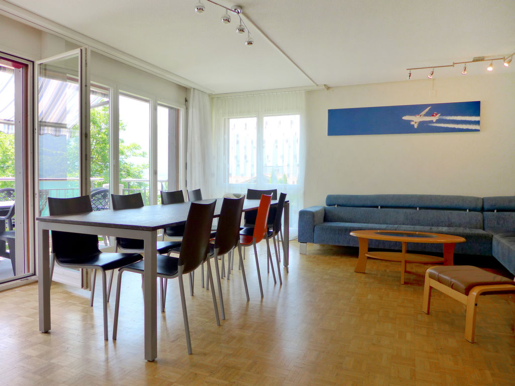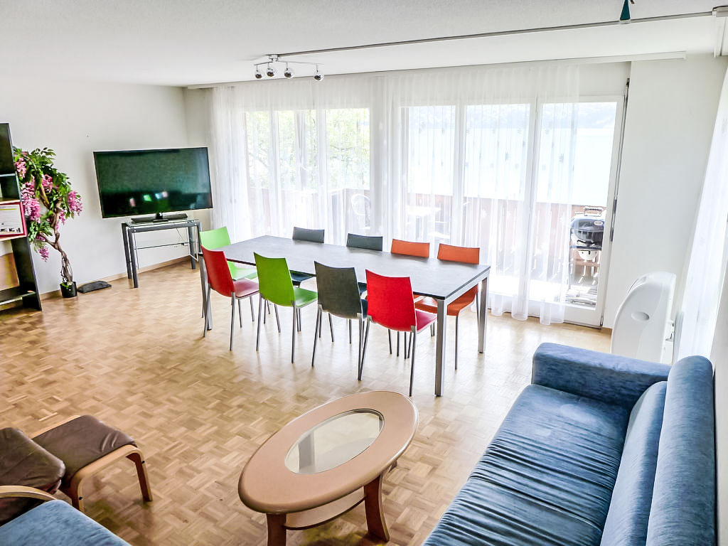 "Seematte, Apt. 13", 4-Zimmer-Maisonette-Wohnung 130 m2 auf 2 Stockwerken. Geräumig und hell, komfortabel und gemütlich eingerichtet: Wohn-/Esszimmer mit Schwedenofen, TV, Radio und Klimaanlage. Ausgang zum Balkon. Offene Küche (Backofen, Geschirrspüler, 4 Glaskeramikherd Platten, Mikrowelle, elektrische Kaffeemaschine) mit Esstisch. Dusche/WC. Obergeschoss: 2 Zimmer, jedes Zimmer mit 1 franz. Bett (160 cm). Ausgang zum Balkon. Dachgeschoss: 1 Zimmer mit 1 franz. Bett (160 cm), 4 Schlafmöglichkeiten (80 cm), Bad/WC. Dusche/WC. 2 Balkone, Südlage, Terrasse. Terrassenmöbel. Herrliche Sicht auf den See und die Berge. Zur Verfügung: Waschmaschine, Wäschetrockner, Bügeleisen. Internet (Wireless LAN, gratis). Bitte beachten: Nichtraucher-Unterkunft. Maximal 1 Haustier/Hund erlaubt. Die Wohnung liegt auf 4 Halbetagen.