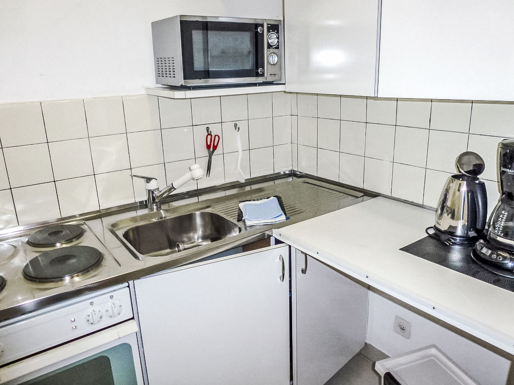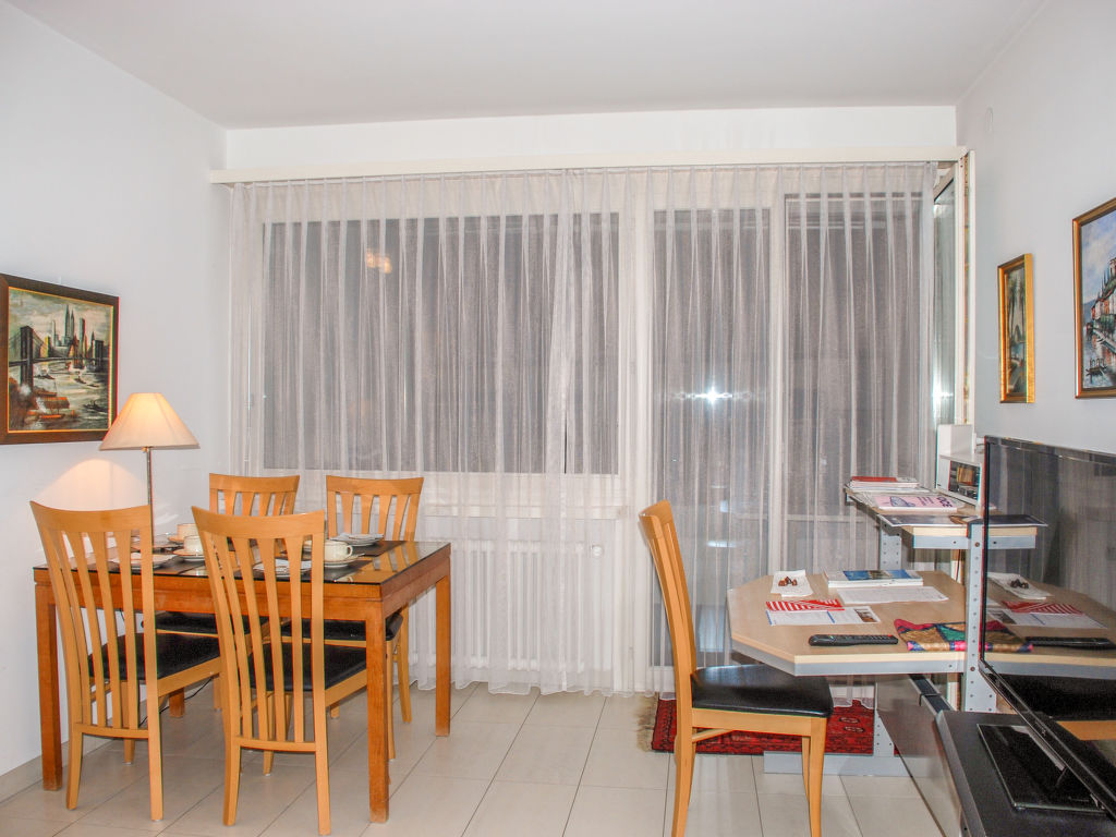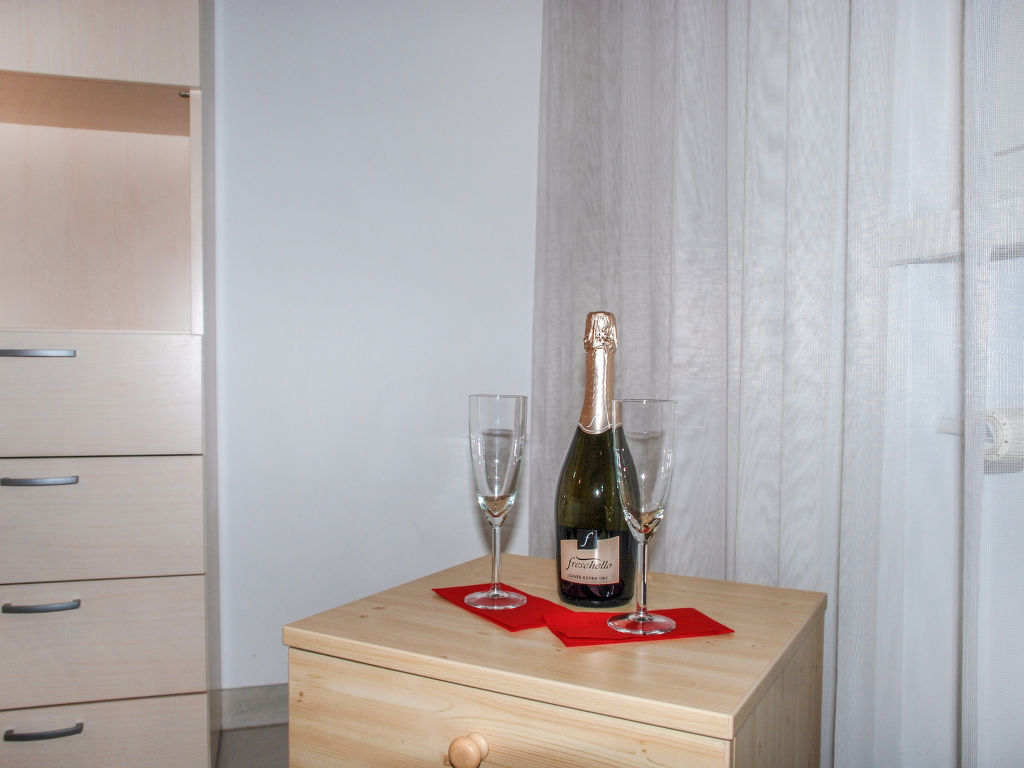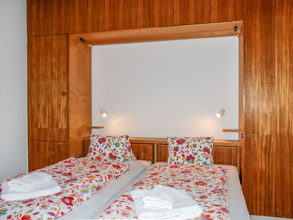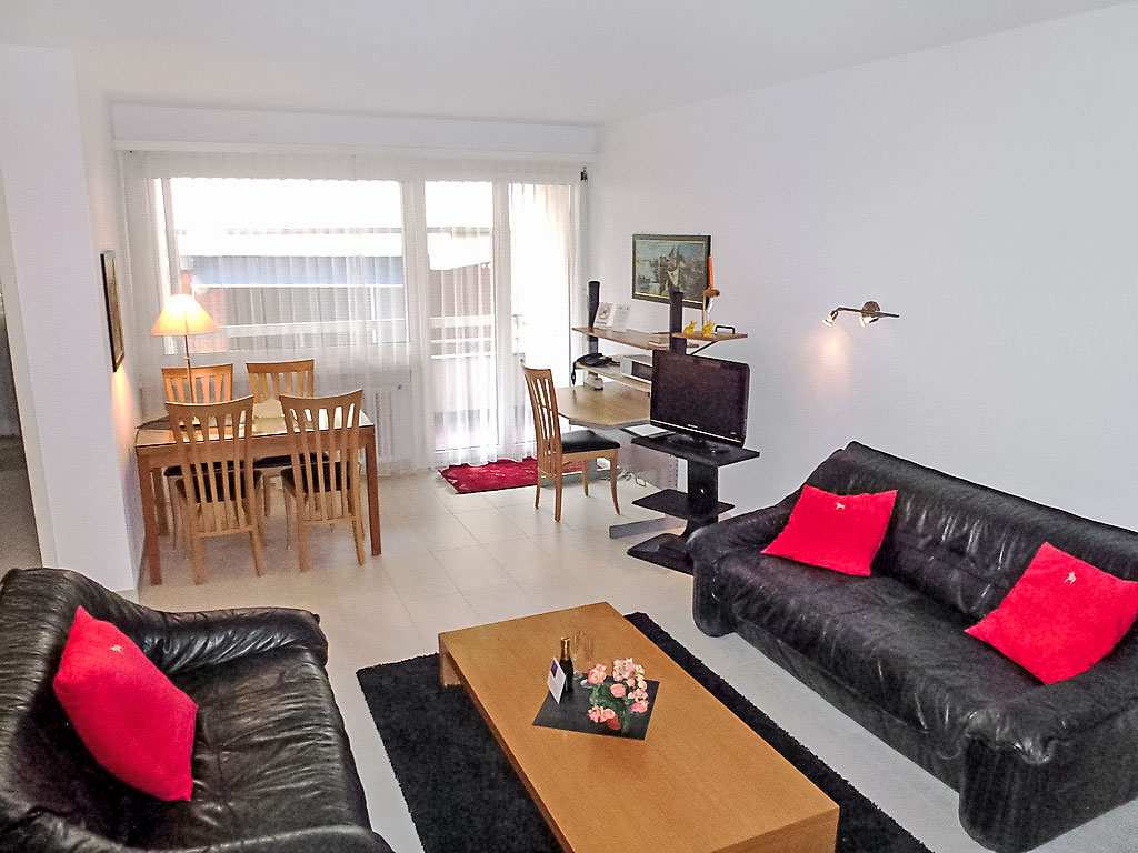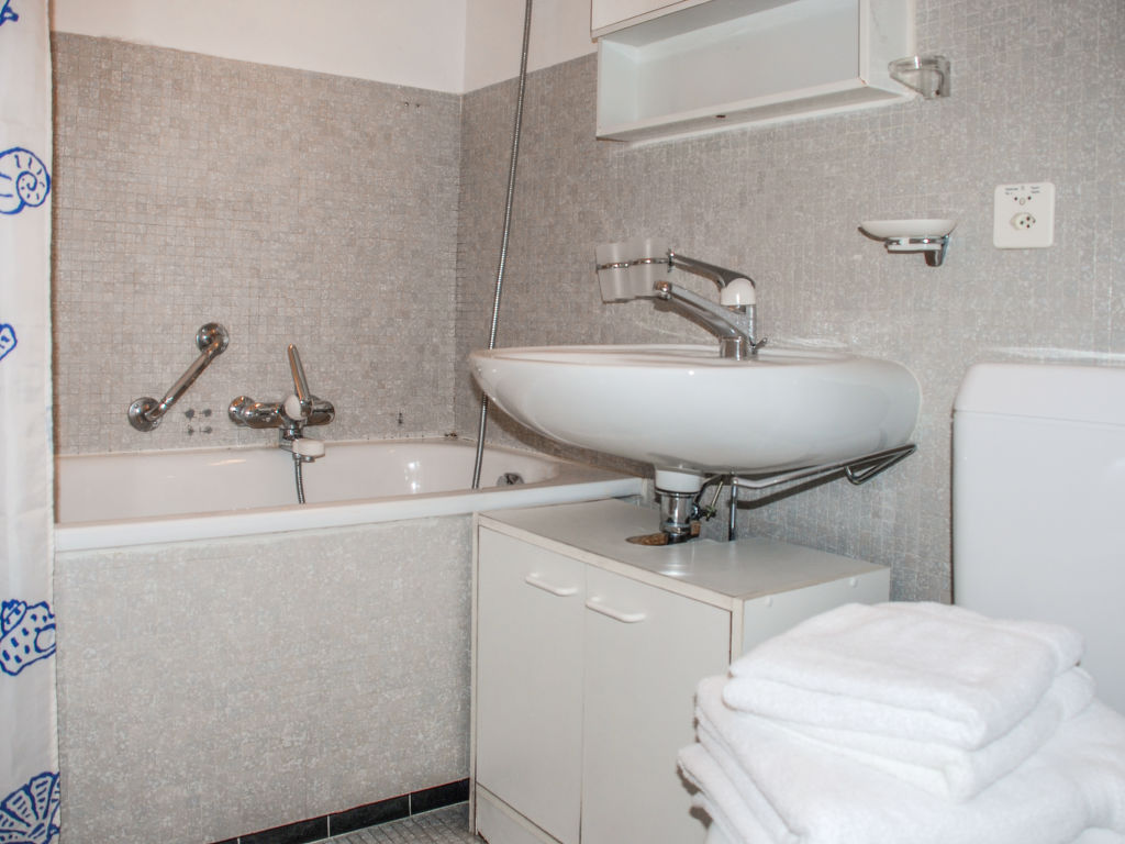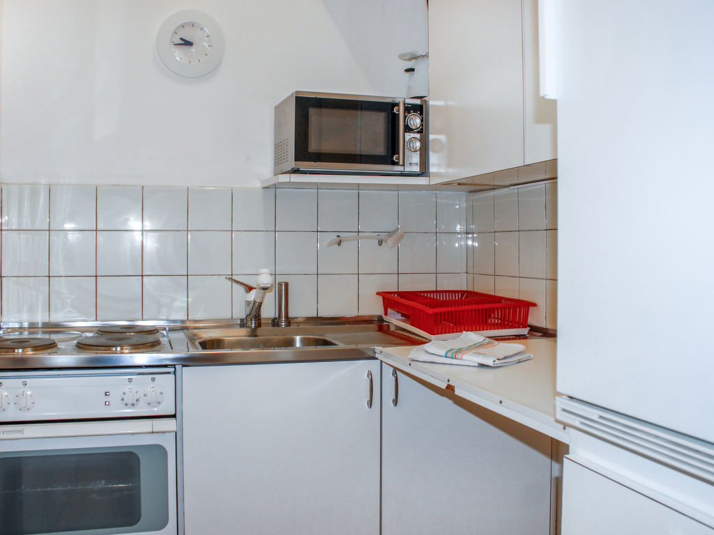 2-Zimmer-Wohnung 50 m2 im 2. Stock, Westlage. Geräumig, zweckmässig und gemütlich eingerichtet: offenes Wohn-/Esszimmer mit 1 Doppelwandschrankbett (2 x 90 cm, Länge 200 cm), Essecke, Kabel-TV, Flachbildschirm und Radio. Ausgang zum Balkon. 1 kleines Zimmer mit 1 Doppelwandschrankbett (2 x 90 cm, Länge 200 cm). Kleine Küche (3 Kochplatten, Backofen, Mikrowelle). Bad/WC. Heizung. Balkon. Balkonmöbel. Keine Sicht auf den See. Zur Verfügung: Kinderhochstuhl, Babybett bis 2 Jahre (extra), Haartrockner. Internet (Wireless LAN, gratis). Bitte beachten: geeignet für Familien. Nichtraucher-Unterkunft. GeheimTipp: ruhige Lage, immer Sommer kühle Wohnung, Ideal für Familien!