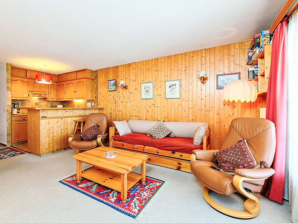 "Sapin Bleu", 2-Zimmer-Wohnung 60 m2 im 1. Stock, Südlage. Schön und gemütlich eingerichtet: Wohn-/Esszimmer mit 1 Ausziehbett (2 x 80 cm), offenem Kamin und Sat-TV (Flachbildschirm), CD. Ausgang zum Balkon. 1 Zimmer mit 2 Betten. Offene Küche (4 Kochplatten, Backofen, Geschirrspüler, Mikrowelle, elektrische Kaffeemaschine, Racletteofen, Fondue Set (Käse)). Bad/WC. Kleiner Balkon 10 m2, Südlage. Sehr schöne Panoramasicht auf die Berge. Zur Verfügung: Internet (Wireless LAN, gratis). Blu-Ray Player. Garage Nr. 6, Höhe 200 cm, Breite 470 cm. Maximal 1 Haustier/Hund erlaubt.