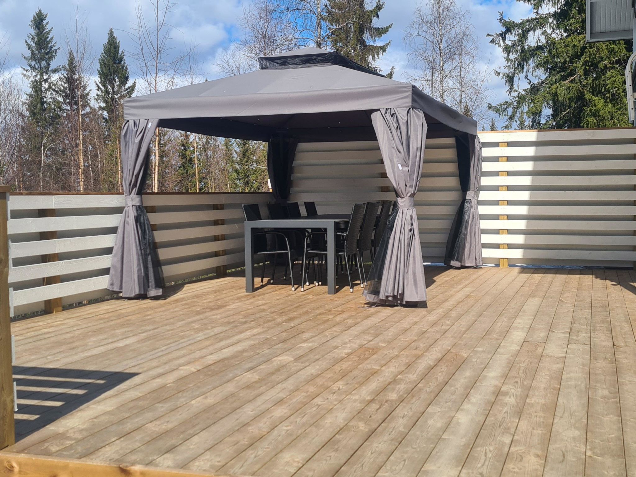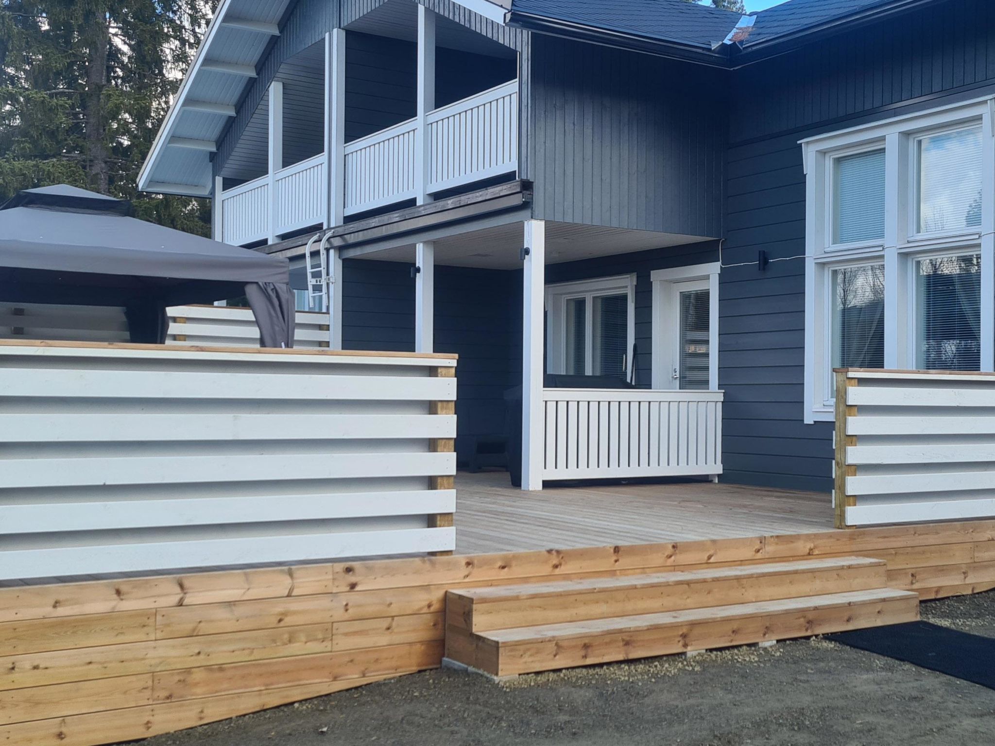 Dieses Doppelhaus befindet sich an einem ruhigen Ort, in Vuokatti. Fertigstellung 2009. Wohnfläche 94 m², Wohnküche, Sauna (elektrische Heizung), Waschraum mit zwei Duschen und Toilette. 4 Schlafzimmer (9 Betten): zwei Schlafzimmer mit Twin-Bett und zwei Schlafzimmer mit getrennten Betten. Schlafzimmer mit 1 Zustellbett und 1 Schlafsofa (120 cm) für 1-2 Personen. Dusche/Toilette auch im 2. Stock. 2x TV. Offene Terrasse und Skiraum. Für ein Baby: Hochstuhl und Reisebett, auch Kinderschutzgitter auf der Treppe. Voukatti Skipiste 3.5 km, Sotkamo 9 km, Hiukka Strand 9 km (in Sotkamo), nächster See 1 km. Kajaani 30 km, Langlaufloipe 150 m. Ferienclub Katinkulta/Spa 5 km. Anreise um 16 Uhr am Anreisetag und Abreise um 12 Uhr am Abreisetag, auch bei Wochenendaufenthalten. HINWEIS: Der Preis beinhaltet KEINE Endreinigung und KEINE Bettwäsche (Bettlaken und Handtücher). Bettwäsche und Endreinigung müssen im Voraus, gegen Aufpreis, gebucht werden. Haustiere sind NICHT erlaubt.
