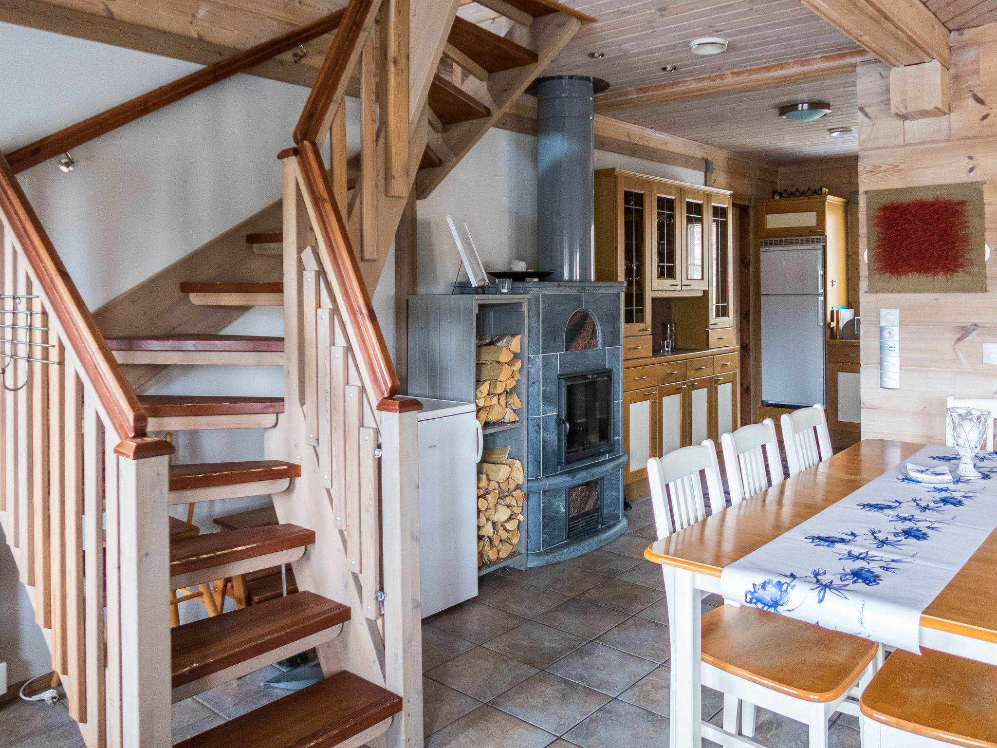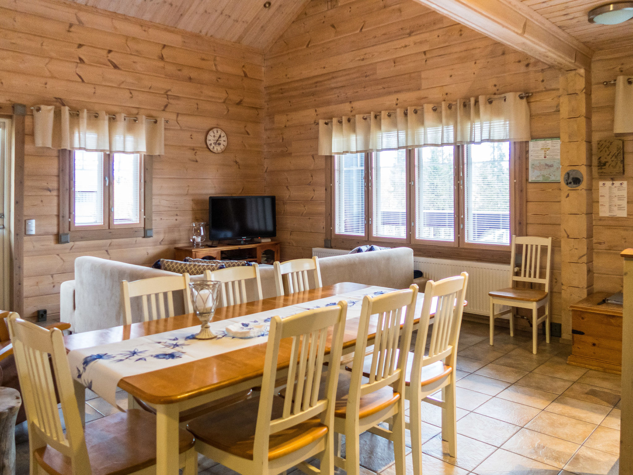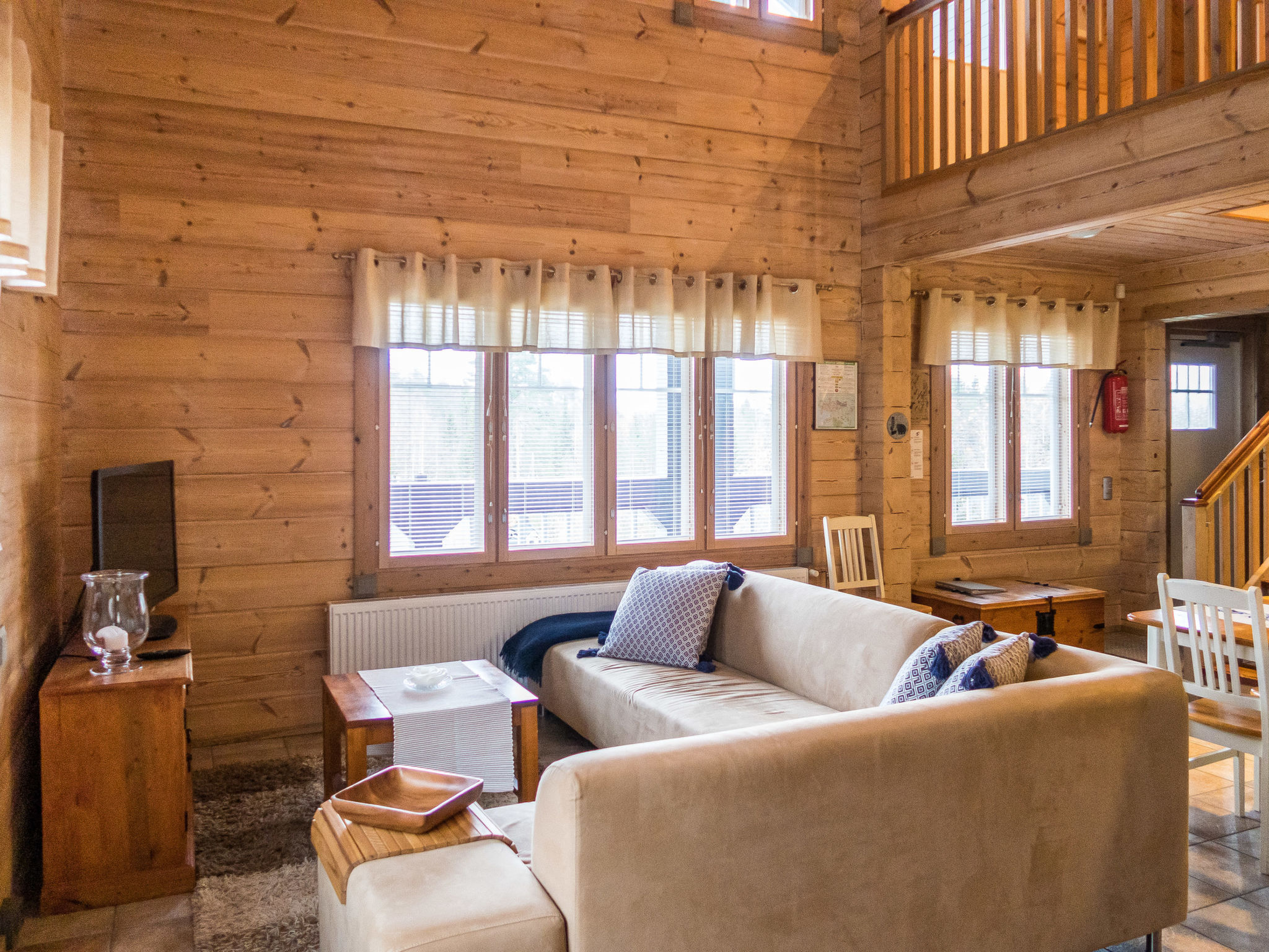 Dieses separate Blockhaus, Baujahr 2003. Es befindet sich im Skizentrum Vuokatti (Pisten 100 m). Wohnfläche 117 m², auf zwei Etagen. Im Erdgeschoss gibt es separate Küche, Wohnzimmer mit Kamin. Esstisch für 8 Personen. Schlafzimmer mit "Twin"-Bett. Im 2. Stock befinden sich zwei Schlafzimmer mit je 2 getrennten Betten. Es gibt zwei Matratzen, die als Zustellbetten verwendet werden können. Offener Dachboden mit kleinem Sofa und TV. Hauswirtschaftsraum, Bad (2 Duschen), Sauna (elektrische Heizung), separate Toilette im 1. Stock. Terrasse mit Möbeln und Gasgrill (im Sommer). Zusätzlich: 2x Kabelfernsehen, Stereoanlage, elektrische Brandmeldeanlage, elektrisches Schloss/Schlüsselsystem. Für ein Kind: Bett und Hochstuhl und Sicherheitstore auf der Treppe. Hinweis: Auf diesem Grundstück (Parkplatz) gibt es Videoüberwachung. Sotkamo 7 km, Holiday Club Katinkulta Spa / Golf 3.5 km, Bowling 3.5 km, Vuokatti Sport 0.3 km, Skitunnel 0.7 km. Wir empfehlen diese Villa für Familien oder Paare. Dieses Haus wird nicht an Jugendgruppen vermietet. Anreise um 16 Uhr am Anreisetag und Abreise um 12 Uhr (Mittag) am Abreisetag, auch bei allen Wochenendbuchungen! Keine Haustiere erlaubt. Der Preis beinhaltet die Endreinigung, Bettwäsche ist gegen Aufpreis erhältlich.