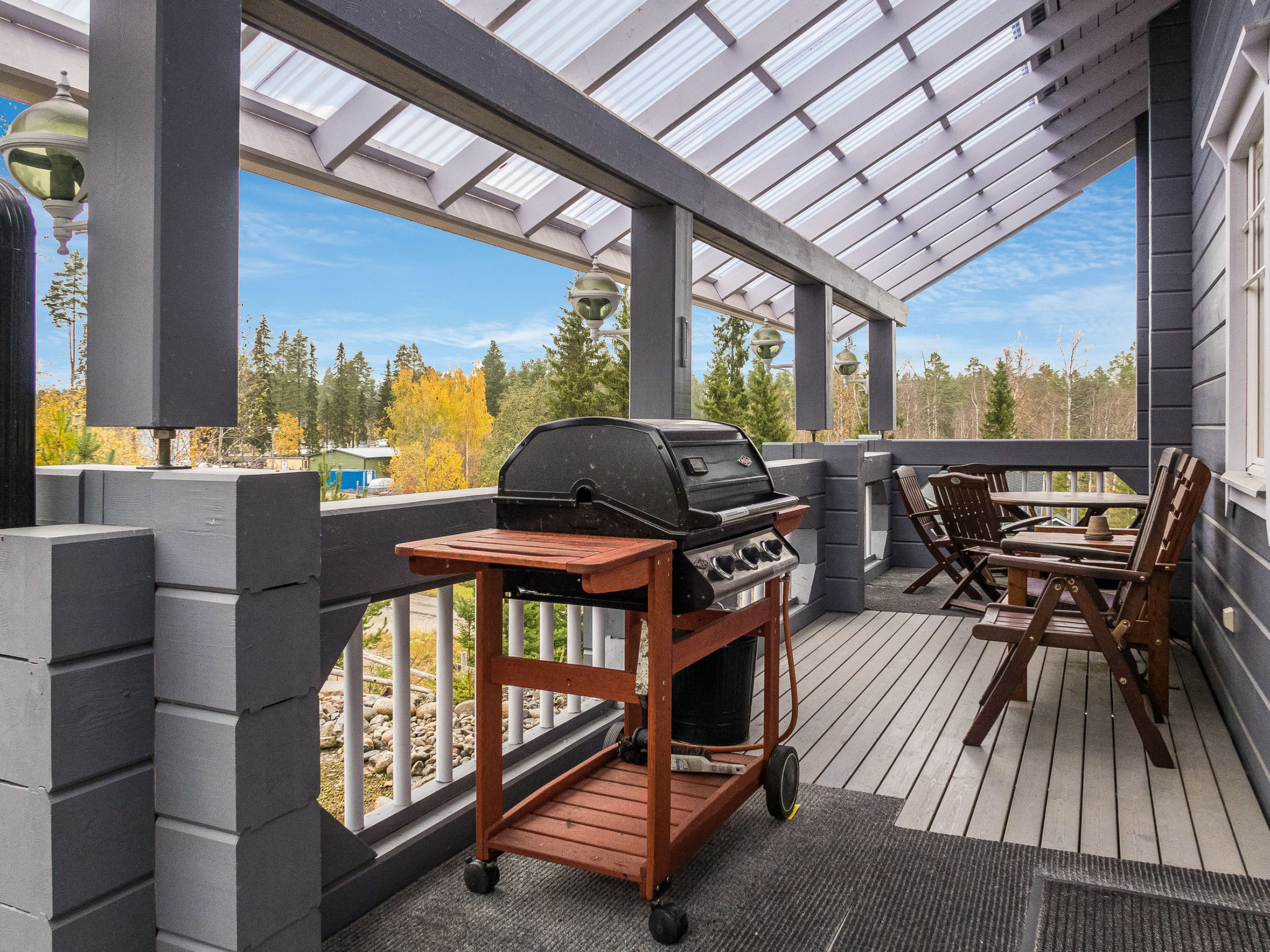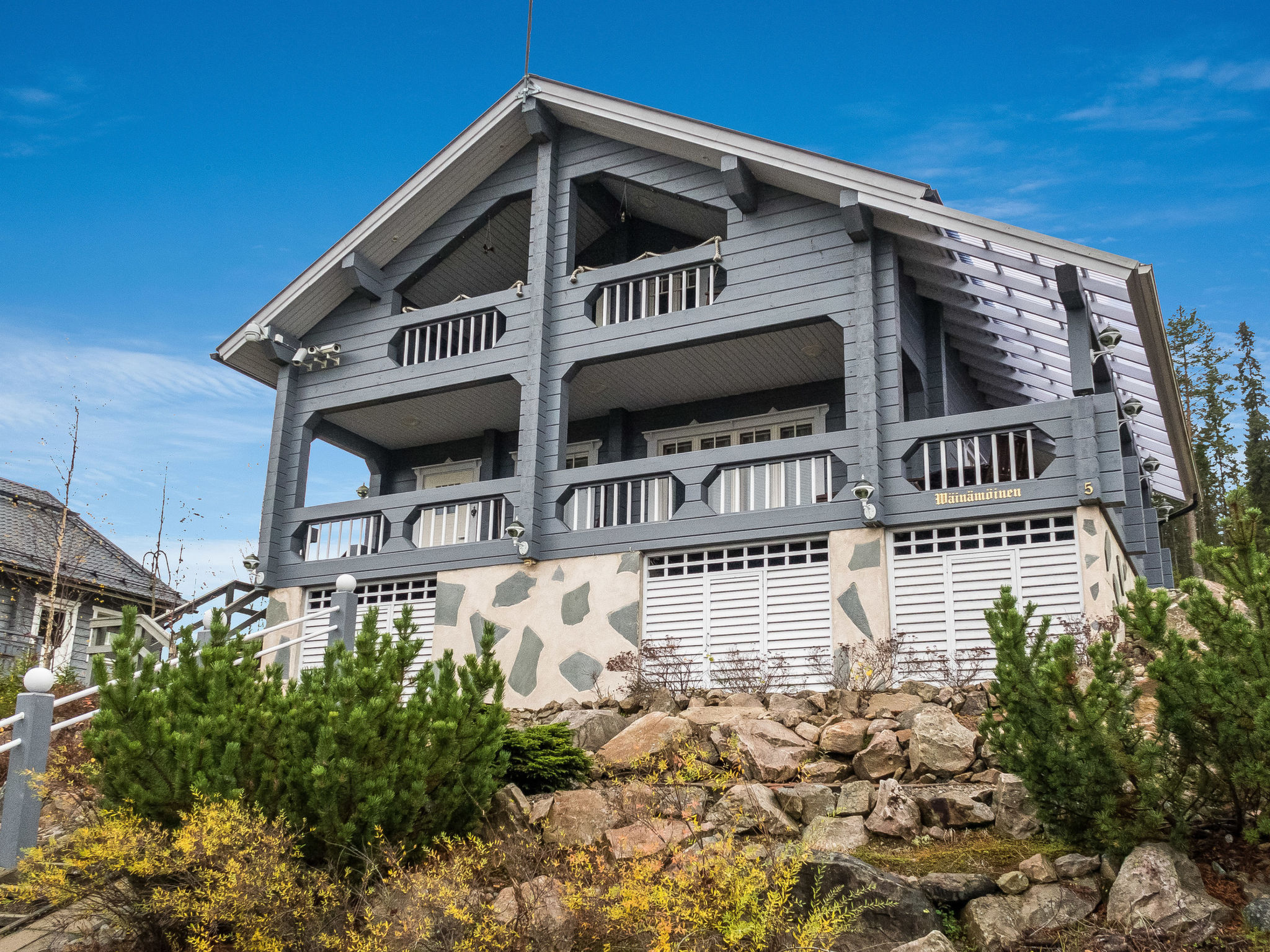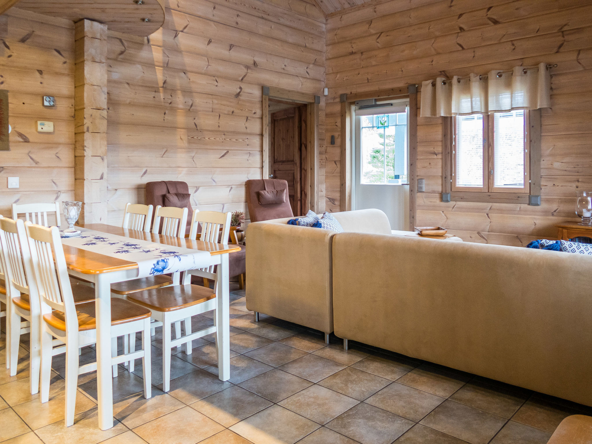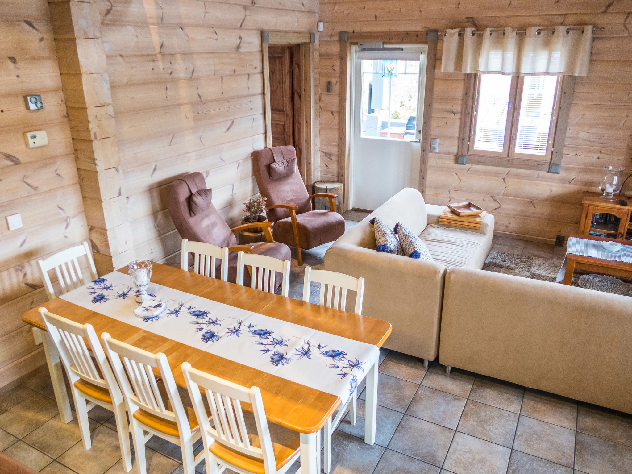 Dieses separate Blockhaus, Baujahr 2003. Es befindet sich im Skizentrum Vuokatti (Pisten 100 m). Wohnfläche 117 m², auf zwei Etagen. Im Erdgeschoss gibt es separate Küche, Wohnzimmer mit Kamin. Esstisch für 8 Personen. Schlafzimmer mit "Twin"-Bett. Im 2. Stock befinden sich zwei Schlafzimmer mit je 2 getrennten Betten. Es gibt zwei Matratzen, die als Zustellbetten verwendet werden können. Offener Dachboden mit kleinem Sofa und TV. Hauswirtschaftsraum, Bad (2 Duschen), Sauna (elektrische Heizung), separate Toilette im 1. Stock. Terrasse mit Möbeln und Gasgrill (im Sommer). Zusätzlich: 2x Kabelfernsehen, Stereoanlage, elektrische Brandmeldeanlage, elektrisches Schloss/Schlüsselsystem. Für ein Kind: Bett und Hochstuhl und Sicherheitstore auf der Treppe. Hinweis: Auf diesem Grundstück (Parkplatz) gibt es Videoüberwachung. Sotkamo 7 km, Holiday Club Katinkulta Spa / Golf 3.5 km, Bowling 3.5 km, Vuokatti Sport 0.3 km, Skitunnel 0.7 km. Wir empfehlen diese Villa für Familien oder Paare. Dieses Haus wird nicht an Jugendgruppen vermietet. Anreise um 16 Uhr am Anreisetag und Abreise um 12 Uhr (Mittag) am Abreisetag, auch bei allen Wochenendbuchungen! Keine Haustiere erlaubt. Der Preis beinhaltet die Endreinigung, Bettwäsche ist gegen Aufpreis erhältlich.