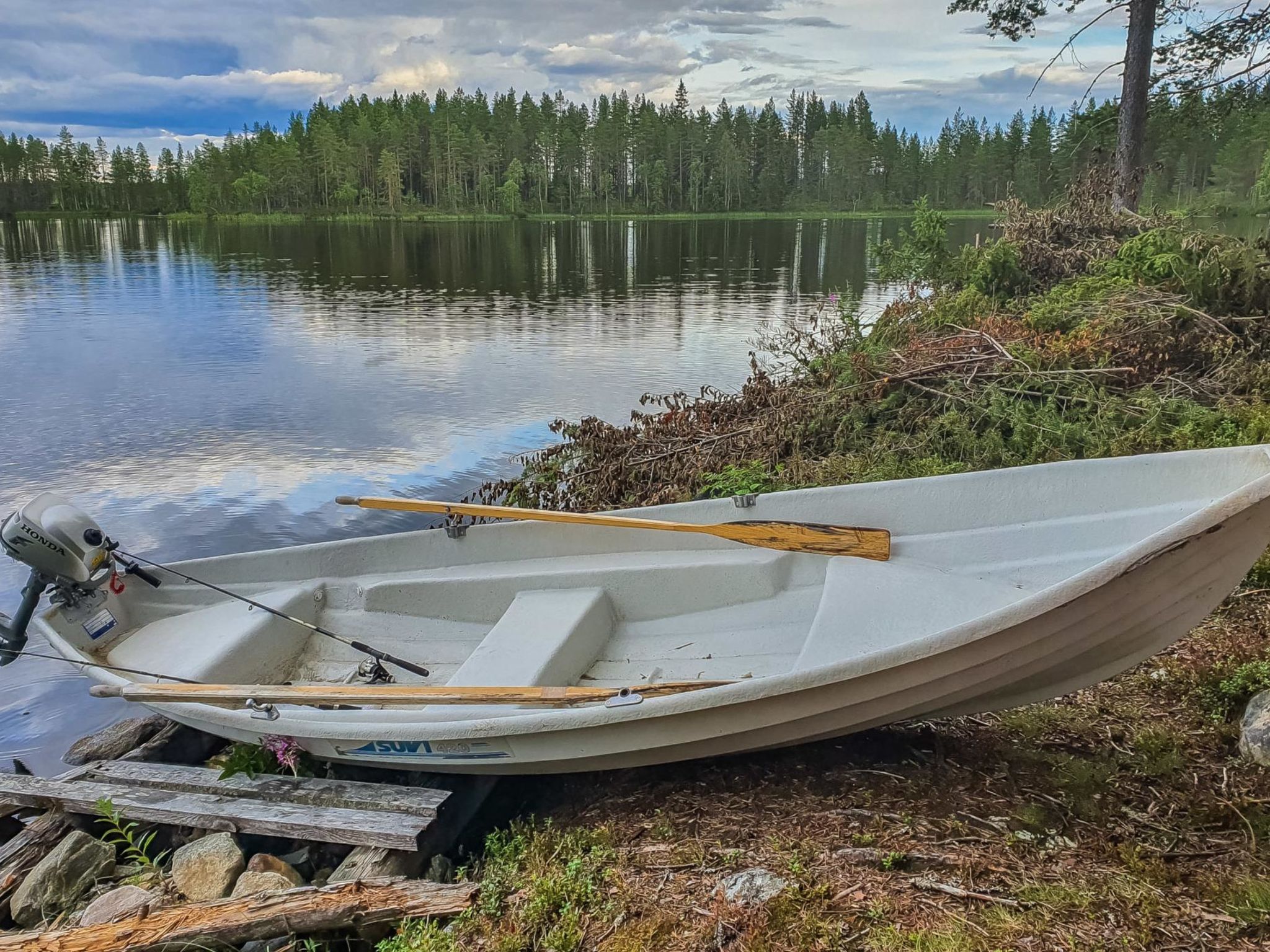 150 km nordöstlich von Kajaani, 75 km südöstlich von Suomussalmi, in der Nähe der russischen Grenze (1.5 km), im Dorf Kuivajärvi, dem einzigen bewohnten Viena-Karelischen Dorf in Finnland. See Pieni Kuivajärvi 20 m (Länge 1 km, Breite 0.5 km), Verbindung zum See Kuivajärvi (Länge 2.3 km, Breite 1 km), flacher und felsiger Boden, Anlegestelle, eigenes Boot mit Aussenbordmotor (Kunde bringt Benzin mit). Grosse, handgeschnitzte Blockhütte, Baujahr 1964, renoviert und modernisiert im Jahr 2015, geräumiges Wohnzimmer, Küche, 5 Schlafzimmer (4 Schlafzimmer mit jeweils 2 Betten und 1 Schlafzimmer mit 3 Betten), Sauna (elektrischer Saunaofen), Waschraum mit Whirlpool und 2 Duschen, Ankleidezimmer und Wohn-, Ausstellungs- und Tagungsbereich. Drei der Schlafzimmer befinden sich im Obergeschoss, Sauna im Erdgeschoss. Die Küche ist mit Catering-Kücheneinrichtungen, warmen und kalten Buffettischen im Wohnzimmer ausgestattet. Seesauna 40 m, holzbeheizter Saunaofen, Kaminraum und überdachte Veranda. Wasserleitung (Dusche in der Sauna), elektrische Heizung und elektrische Heizung und elektrische Beleuchtung. Eigener Bootsanleger und Lagerfeuerplatz am Ufer. Im Hauptgebäude gibt es zum Beispiel Wii-Spielekonsole, Play Station 2, Smart-TV, Netflix und drahtlose Internetverbindung (W-LAN) und Whirlpool im Hof (vom Kunden selbst gefüllt und beheizt, Preis € 50/Buchung). Aufgrund der abgeschiedenen Lage kann der Fernseher nur über eine Internetverbindung gesehen werden. Karaoke-Ausrüstung, Pokertisch und Luftwärmepumpe (mit Kühlung im Sommer). Heisser Räucherofen und Fischreinigungstisch im Hof. Das historisch wertvolle Domnan Pirtti bietet eine schöne Kulisse für Wildnis- und Naturaktivitäten, Jagd- und Angeltouren sowie für Tagungen, Erholungstage und Familienfeiern. Catering- und Programmdienste können im Voraus gebucht werden. Es gibt Platz für 50 Personen (maximal 11 Personen können übernachten). Domnan Pirtti eignet sich auch für einen ruhigen Urlaub im schönen Viena-Karelischen Dorf. In der Nähe befinden sich beispielweise orthodoxe Nikolauskapelle (Kirche, 150 m), Tanzhalle Kuivajärvi (200 m) und historisches Haus Hietajärvi (3.5 km). Das Ferienhaus ist von staatseigenen Landereien umgeben. Zu den Naturreservaten des Kalevala-Parks in Murhisalo gehören auch wertvolle Landschaftsgebiete von Kuivajärvi und Hietajärvi. Der UKK Itäraja Sommerwanderweg erreicht auch das Gebiet Kuivajärvi. Wanderwege und Naturpfade in der Umgebung eignen sich für Tagesausflüge zu mehrtätigen Wanderungen. Angeln: Kleine Seen, Stromschnellen und Ströme. Angelscheinbereich 5505 Yli-Vuokki (www.eraluvat.fi). Jagd: Staatliches Kleinwildjagdgebiet 5604 East-Suomussalmi (www.eraluvat.fi). Vartius Grenzübergang (Russland) 17 km, Kostamus (in Russland) 55 km, Winterkriegsmuseum Raatteen Porti und Raate-Strasse 40 km. Suomussalmi 75 km (zum Beispiel Spa Kiannon Kuohut), Kajaani 150 km. Verlassen Sie bitte das Haus in dem Zustand, den Sie sich als der nächste Gast selbst wünschen würden. Aufgrund grosser Entfernungen kann die Wartung des Hauses nicht nach jedem Gast überprüft werden. Wir empfehlen die Endreinigung gegen Aufpreis zu bestellen.