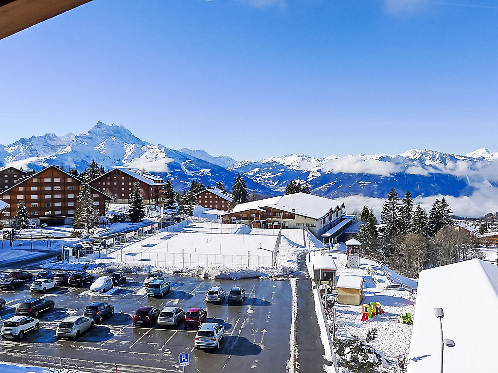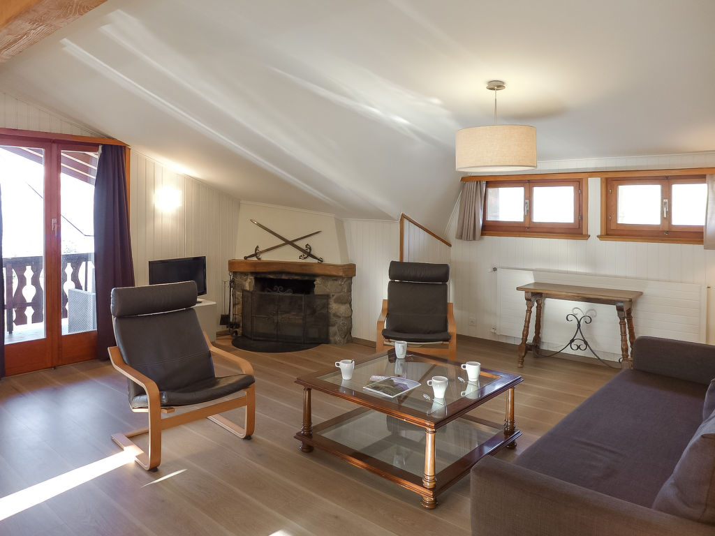 "La Haute Cîme", 4-Zimmer-Attikawohnung 80 m2, Südlage. Teilweise abgeschrägt, teilweise renoviert im Jahre 2015, komfortabel eingerichtet: grosses Wohn-/Esszimmer mit offenem Kamin und TV (Flachbildschirm). Ausgang zum Balkon. 1 abgeschrägtes Zimmer mit 1 Bett (160 cm, Länge 200 cm). 2 Zimmer, jedes Zimmer mit 2 Betten (90 cm). Offene Küche (Backofen, Geschirrspüler, 4 Glaskeramikherd Platten, Mikrowelle, Tiefkühler, Fondue Set (Käse)) mit kleiner Bar. Bad/Bidet/WC, Dusche. Parkettböden. Grosser Balkon 14 m2, Südlage. Terrassenmöbel. Sehr schöne Panoramasicht auf die Berge und das Tal. Zur Verfügung: Internet (Wireless LAN, gratis). Garage Nr. Apt 16.