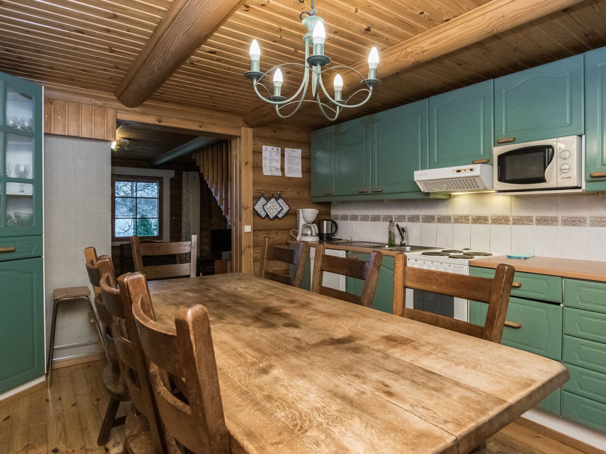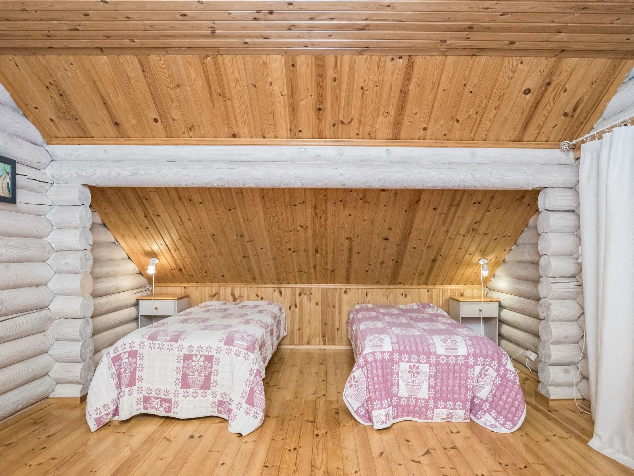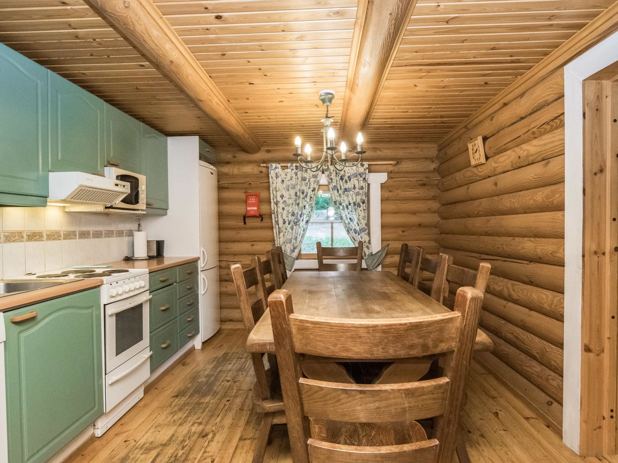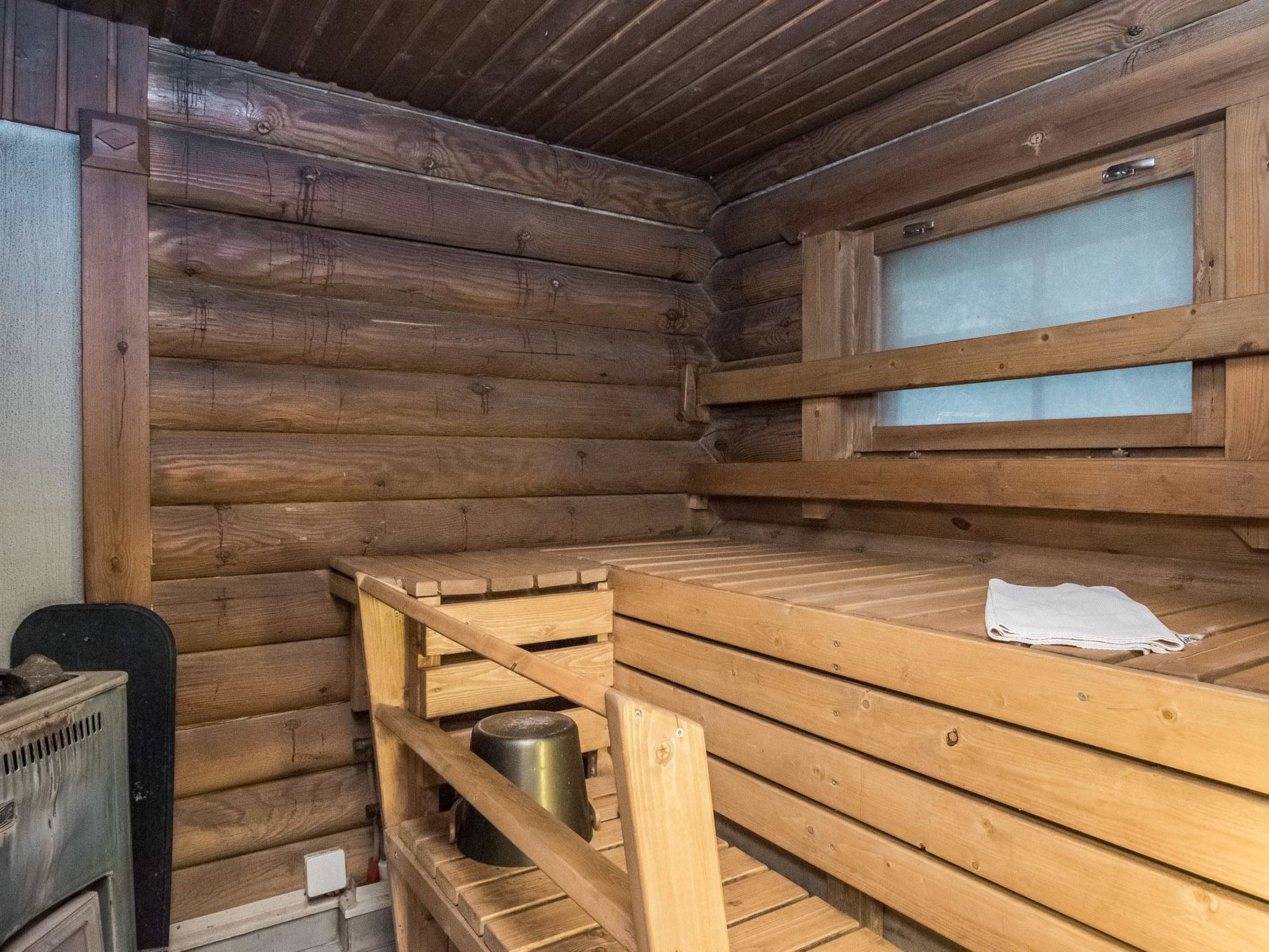 Maximal 2 Haustiere/Hunde erlaubt. 37 km nördlich von Hämeenlinna, See Iso-Roine 20 m (Länge 8 km, Breite 2 km), flacher und harter Sandboden, Anlegestelle und Ruderboot. Blockferienhaus, Baujahr 1999, Küche, Wohnzimmer, 2 Zustellbetten, 2 Schlafzimmer mit je 2 Betten, im Obergeschoss Schlafzimmer mit 4 Betten, Schlafboden mit 2 Zustellbetten, Sauna, Waschraum (WC und Dusche), Veranda. Luftwärmepumpe. Geräumiges und komfortables Blockhaus am Ufer des Iso-Roine-Sees. Ebenes Grundstück, das hauptsächlich grasig ist. Vom ebenen Grundstück ein steiler Hang zum Ufer. Schritte zum Ufer hinunter, die als Anlegestelle enden. Auf dem gleichen grossen Grundstück weitere Ferienhäuser 8414-8426. Insgesamt können in diesen Ferienhäusern 120 Personen gleichzeitig untergebracht werden. Auf dem 2.5 Hektar grossen Wiesengebiet zwischen der "Baronburg" (8426) und der Küste gibt es Wettbewerbe im mittelalterlichen Still und andere Ausrüstungen, die unter Aufsicht eingesetzt werden können. In der Umgebung gibt es auch Badminton- und Volleyballplätze, sowie einen privaten 21-Loch-Discgolfplatz (Discs und Anleitung gegen Aufpreis). Viele Skipisten in der Umgebung, auch Reiten (z.B. auf Islandpferden), Angeln aus den Booten und Mehrzweckflössen, Kanufahrten. Geführte Angel- und Flusskrebstouren nach Vereinbarung (1.700 Hektar Fischereigebiet am Iso-Roine-See). Motorboote, Floss und Hot-Pot zu mieten. Schneeschuhwanderungen nach Vereinbarung. Bauernhof hat eigenes 7 Hektar grosses Naturschutzgebiet. Waldhütte mit Tipi-Küche kann im Wald in der Nähe der Hütte verwendet werden. Dienste im Englisch, Deutsch, Russisch, Schwedisch und Estnisch.