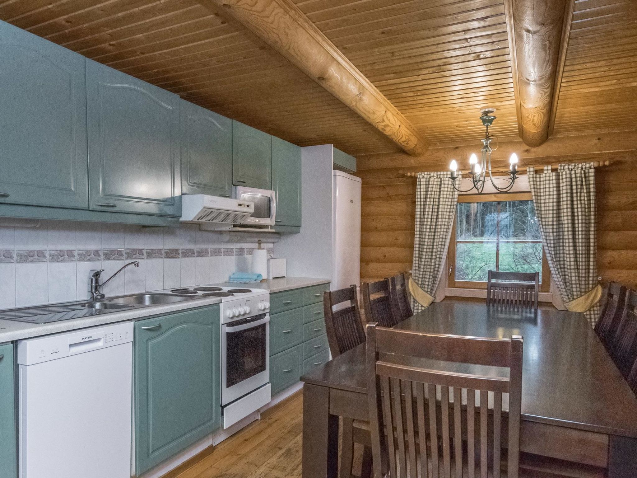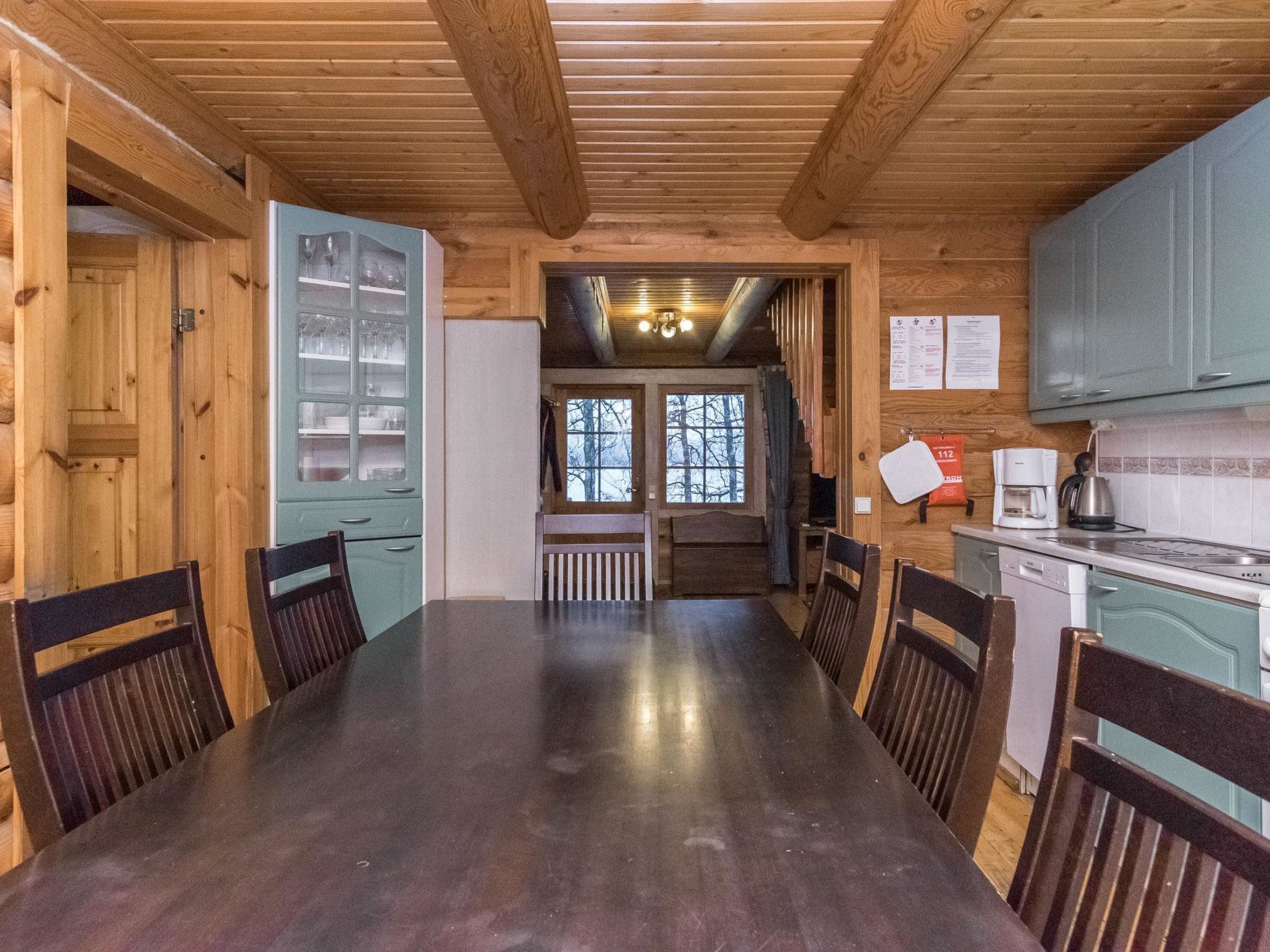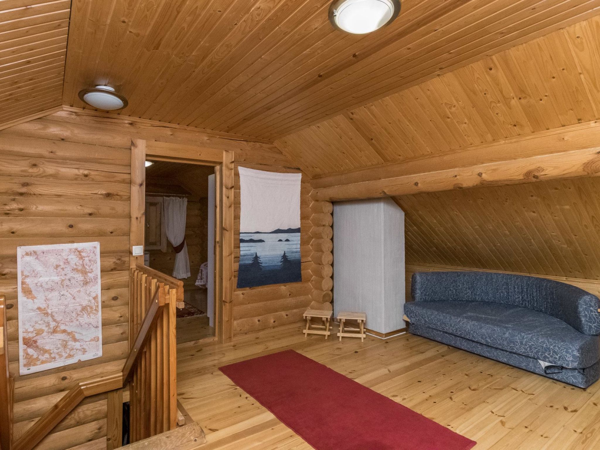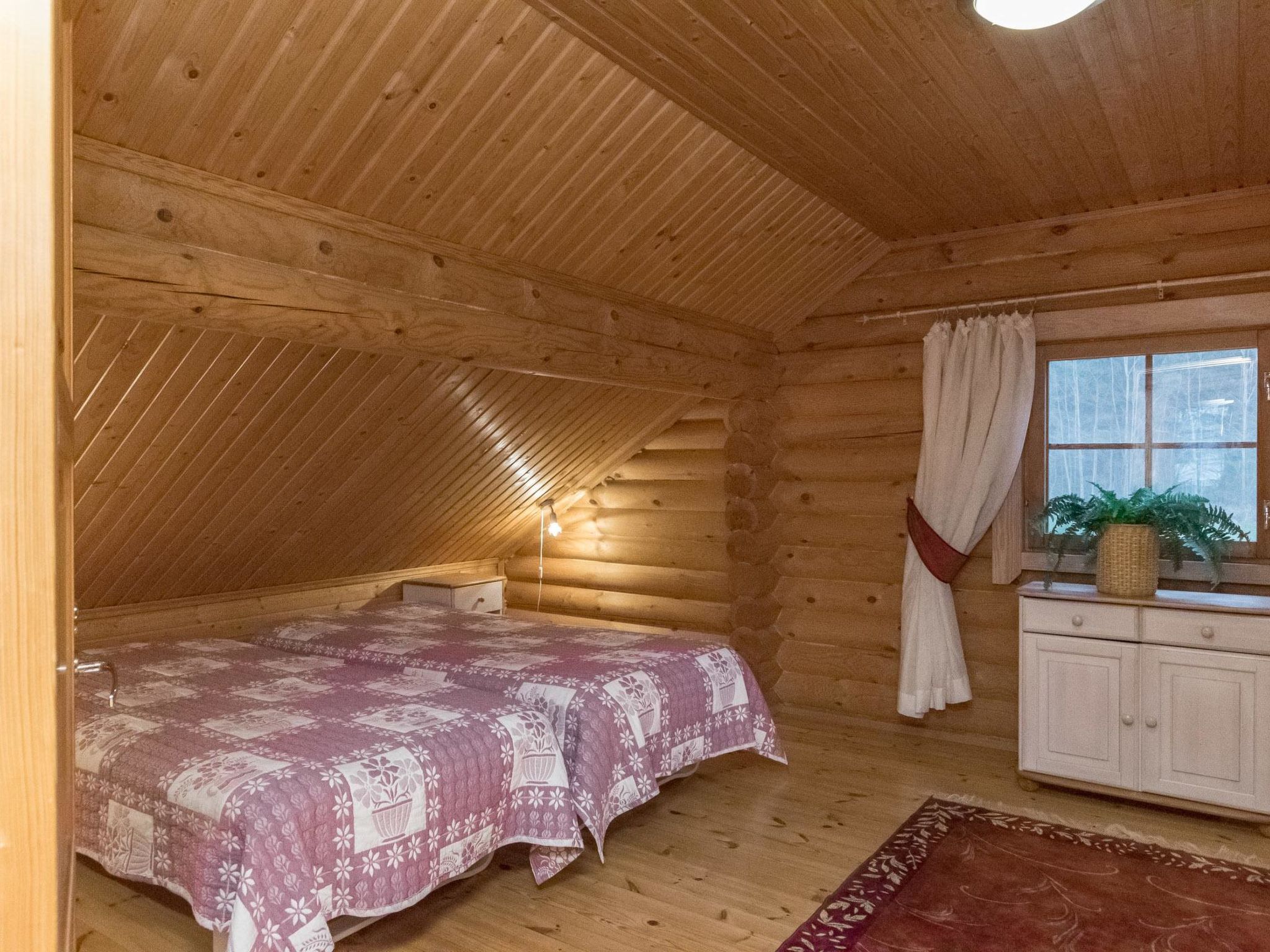 37 km nördlich von Hämeenlinna, See Iso-Roine 20 m (Länge 8 km, Breite 2 km), flacher und harter Sand-/Felsboden, nicht geeignet für sehr kleine Kinder, Anlegestelle und Ruderboot. Blockferienhaus, Baujahr 1999, Küche, Wohnzimmer mit 2 Zustellbetten, 2 Schlafzimmer mit je 2 Betten, im Obergeschoss Schlafzimmer mit 4 Betten, Schlafboden mit 2 Zustellbetten, Sauna, Waschraum (WC und Dusche), Veranda. Luftwärmepumpe. Geräumiges und komfortbales Ferienhaus, am Ufer des Sees Iso-Roine. Ebenes Grundstück, das hauptsächlich grasig ist. Vom ebenen Grundstück ein steiler Hang zum Ufer. Treppen zum Ufer hinunter, die als Anlegestelle enden. Auf dem gleichen grossen Grundstück sind Ferienhäuser 8414 - 8426. Insgesamt können 120 Personen gleichzeitig in diesen Häusern untergebracht werden. Auf dem 2.5 Hektar grossen Wiesengebiet zwischen der "Baronburg" (8426) und der Küste gibt es mittelalterliche und andere Wettbewerbe, Ausrüstung kann unter Aufsicht benutzt werden. In der Umgebung gibt es auch Badmintor- und Volleyballplätze, sowie einen privaten 21-Loch-Discgolfplatz (Discs und Anleitung gegen Aufpreis). Viele Skipisten in der Umgebung, auch Reiten (z.B. auf Islandpferden), Angeln von Booten und Mehrzweckflössen, Kanufahren. Geführte Angel- und Flusskrebstouren nach Vereinbarung (1.700 Hektar Fischereigebiet am Iso-Roine-See). Motorboote und Floss zu vermieten. Schneeschuhwanderungen nach Vereinbarung. Bauernhof hat eigenes 7 Hektar grosses Naturschutzgebiet. Waldhütte mit Tipi-Küche kann im Wald, in der Nähe des Hauses, verwendet werden. Dienste im Englisch, Deutsch, Russisch, Schwedisch und Estnisch.