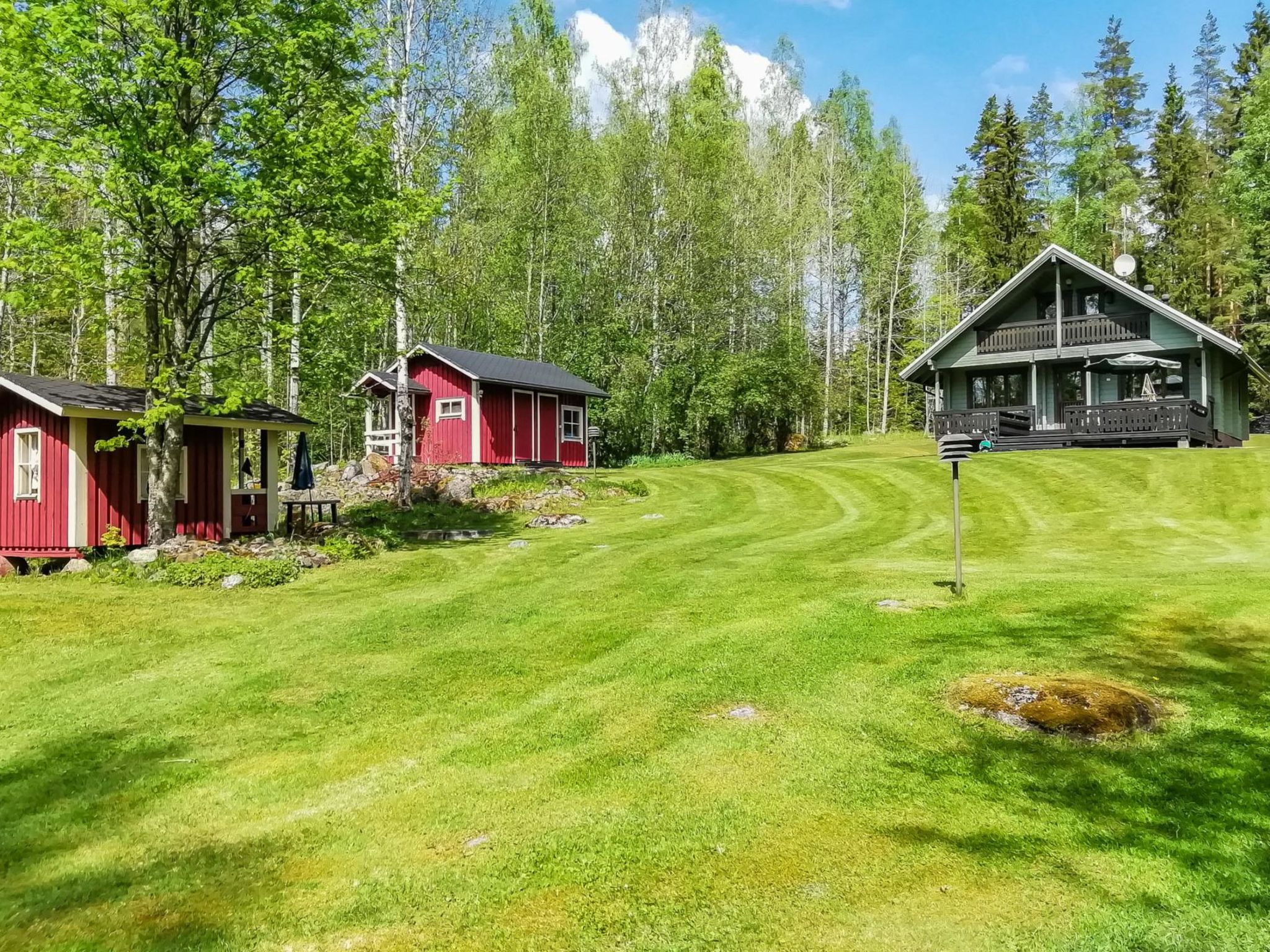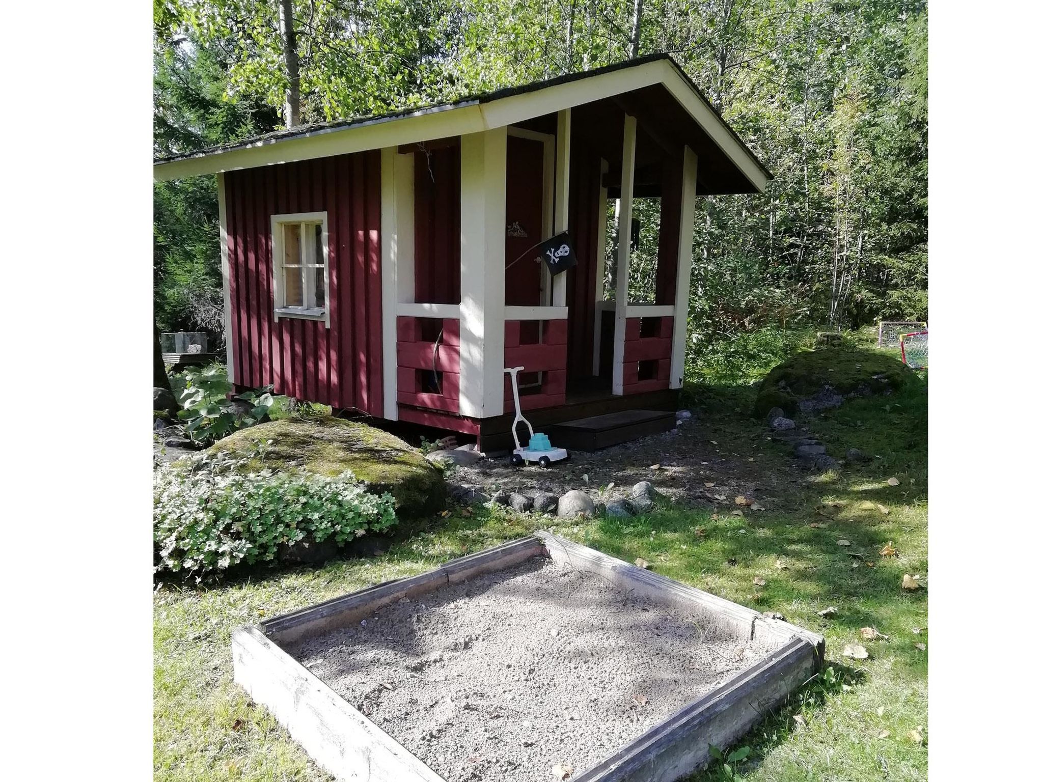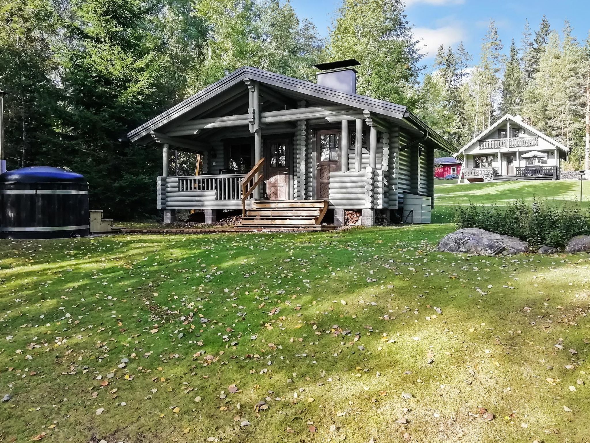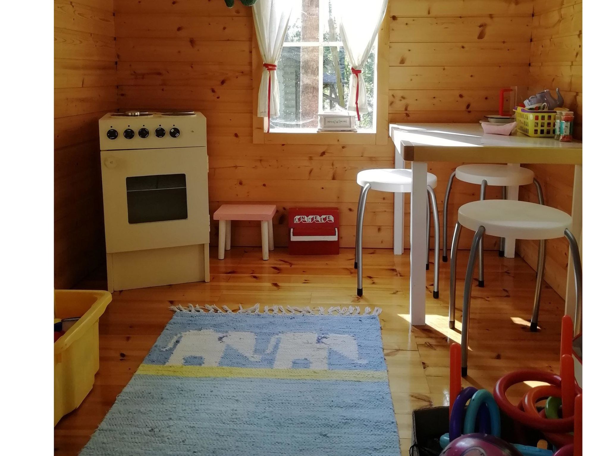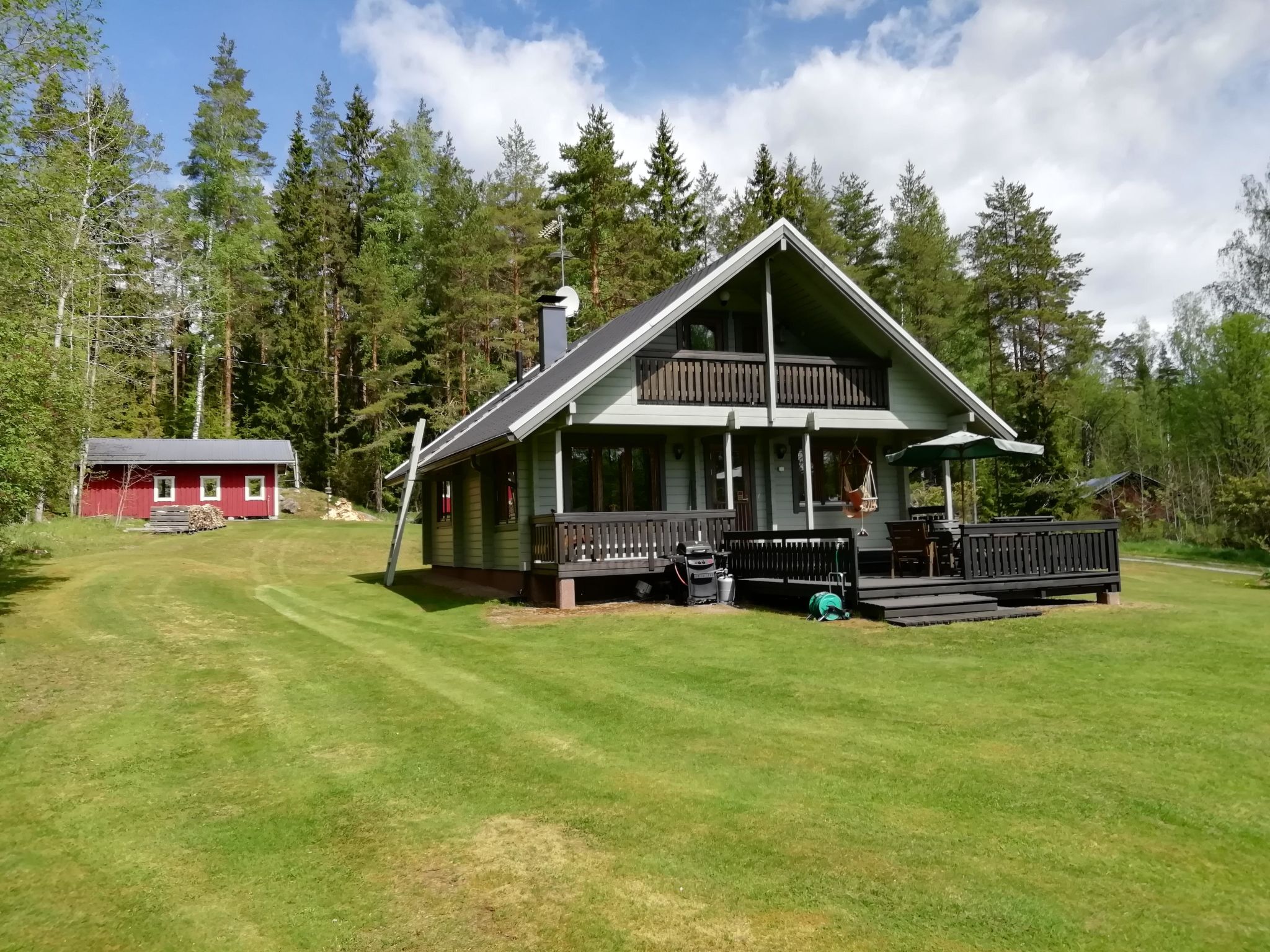 36 km westlich von Hämeenlinna, See Kotkajärvi 40 m, flacher und sich sanft vertiefender Strand, Anlegestelle mit Bänken und Badeleiter, Ruderboot. Das Wasser im Kotkajärvi-See ist klar und sauber. Komplex mit zwei Gebäuden, in schöner Lage. Blockhaus (75 m²): im Erdgeschoss Wohnzimmer, Wohnküche, Schlafzimmer (120 cm breites Bett), elektrische Sauna, Dusche, separates WC. Obergeschoss: 2 Schlafzimmer mit je 1 dicker Matratze (90 cm breit, kann an jedem Ort frei gelegt werden), + 1 separates Bett, Schlafsofa in der Lobby. Für alternative Zustellbetten gibt es zwei Matratzen (80 cm x 200 cm). Die Treppen haben an beiden Enden Kindersicherungstore. Teilweise überdachte Terrasse, Gasgrill und Spielhaus vor dem Haus. Nur für den Sommer (30.4.-31.10., je nach Wetterlage): Saunagebäude 35 m²: Lobby, Wohnküche, ausziehbares Schlafsofa, Kamin, Sauna mit Holzofen, keine Dusche. Das Wasser kommt aus dem See in die Sauna und wird in einem Kessel erhitzt. Hinweis! Der Kamin in der Hauptkabine steht den Gästen nicht zur Verfügung. Der Kamin im Saunagebäude steht jedoch im Sommer zur Verfügung. Im Winter wird das Saunagebäude nicht genutzt. Schöner Komplex aus zwei Gebäuden, in ruhiger Lage am See Kotkajärvi. Der Strand ist für Kinder geeignet. Der Hof ist gut gepflegt, flach und grasig. Eigener Strand, Ruderboot und grosser Garten krönen Ihren Sommertag. Hämeenlinna 36 km, Tampere 65 km, Vergnügungspark Puuhamaa 65 km.