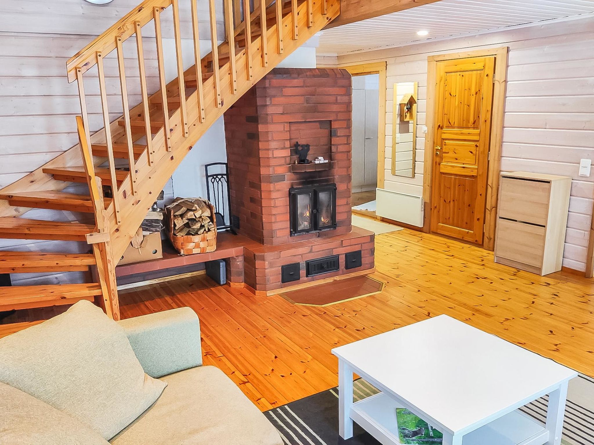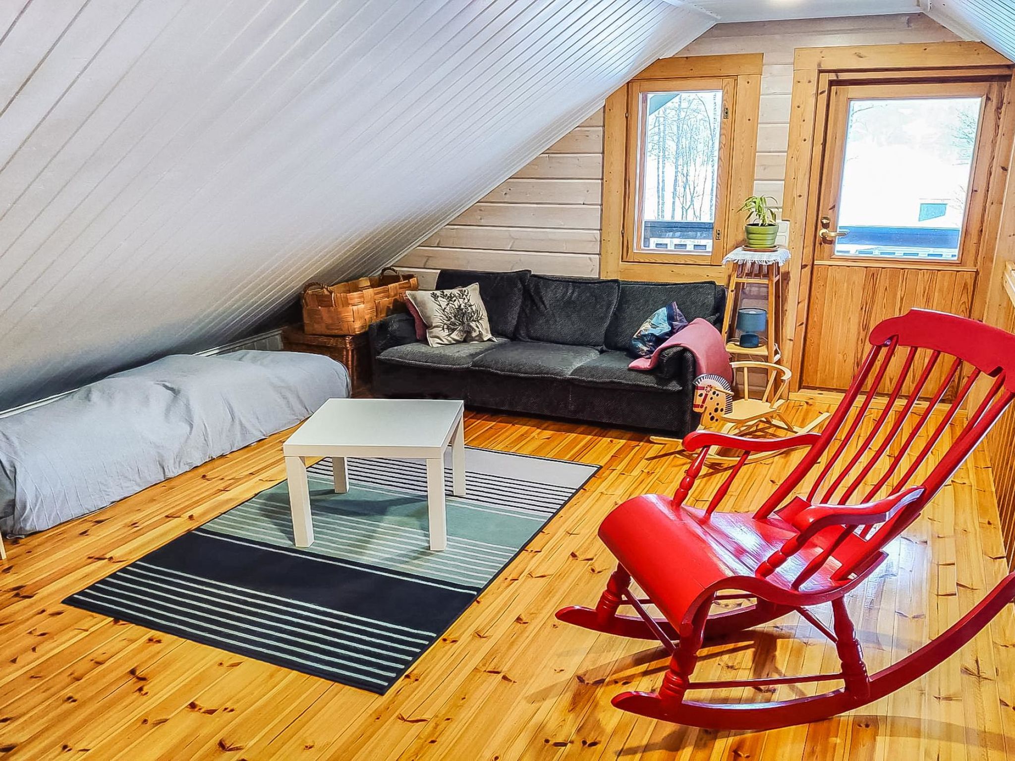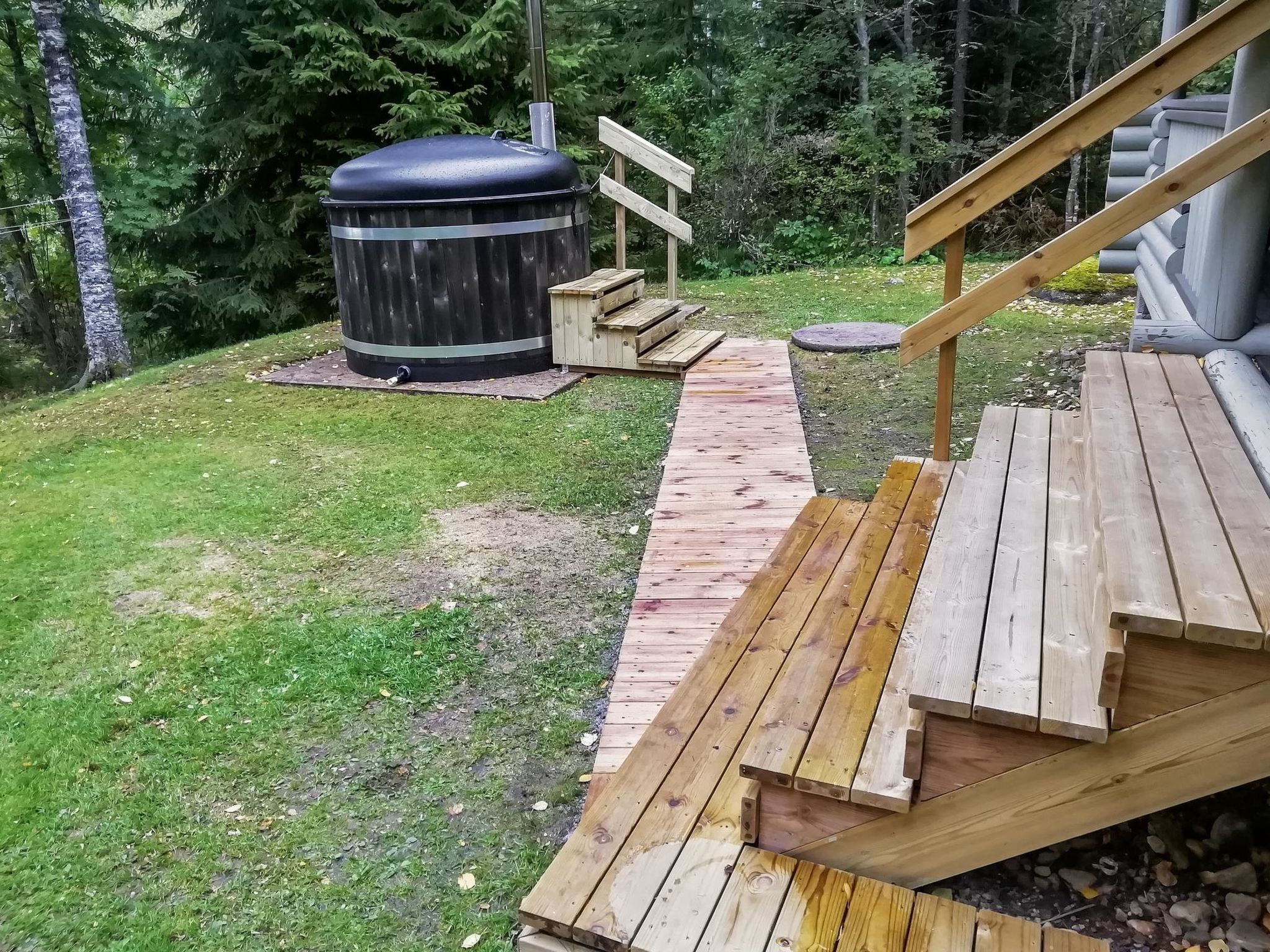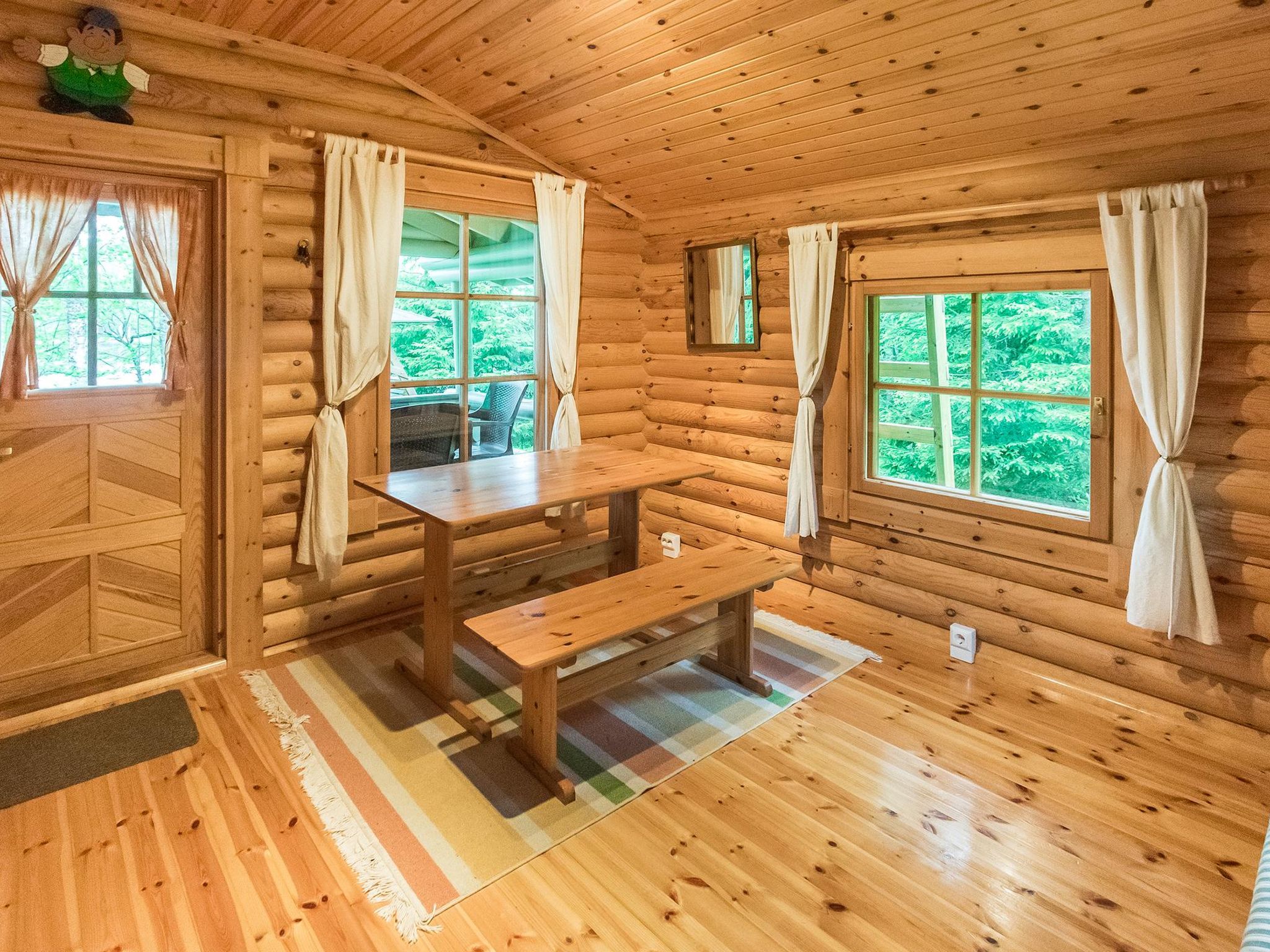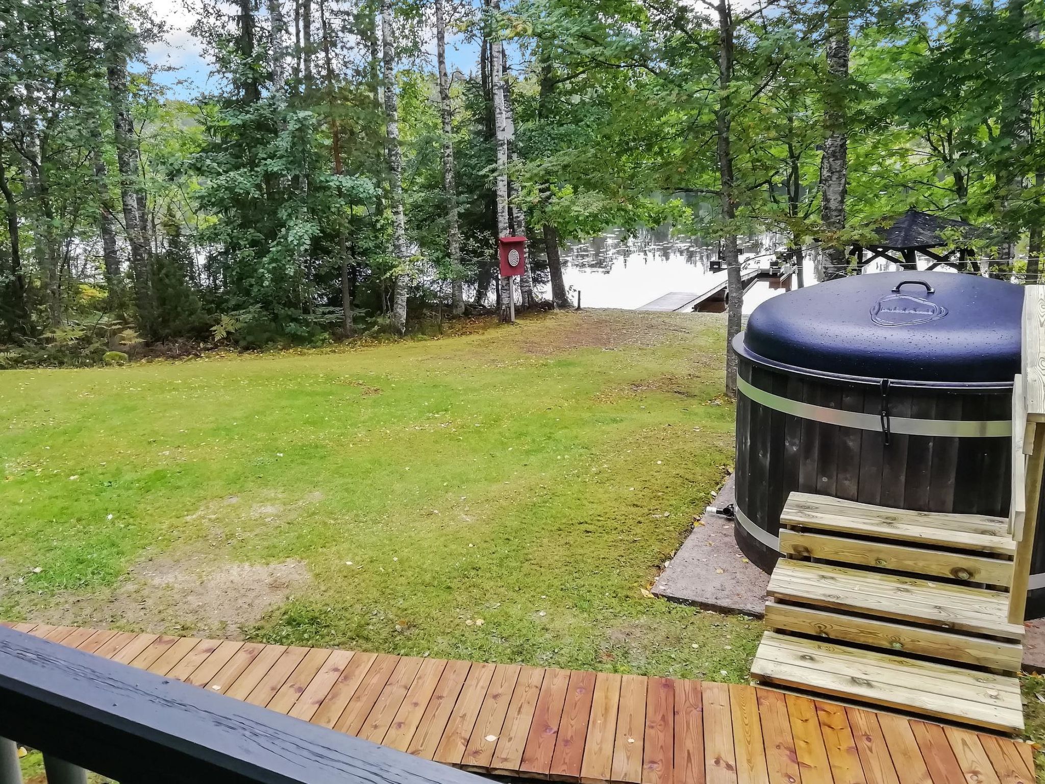 36 km westlich von Hämeenlinna, See Kotkajärvi 40 m, flacher und sich sanft vertiefender Strand, Anlegestelle mit Bänken und Badeleiter, Ruderboot. Das Wasser im Kotkajärvi-See ist klar und sauber. Komplex mit zwei Gebäuden, in schöner Lage. Blockhaus (75 m²): im Erdgeschoss Wohnzimmer, Wohnküche, Schlafzimmer (120 cm breites Bett), elektrische Sauna, Dusche, separates WC. Obergeschoss: 2 Schlafzimmer mit je 1 dicker Matratze (90 cm breit, kann an jedem Ort frei gelegt werden), + 1 separates Bett, Schlafsofa in der Lobby. Für alternative Zustellbetten gibt es zwei Matratzen (80 cm x 200 cm). Die Treppen haben an beiden Enden Kindersicherungstore. Teilweise überdachte Terrasse, Gasgrill und Spielhaus vor dem Haus. Nur für den Sommer (30.4.-31.10., je nach Wetterlage): Saunagebäude 35 m²: Lobby, Wohnküche, ausziehbares Schlafsofa, Kamin, Sauna mit Holzofen, keine Dusche. Das Wasser kommt aus dem See in die Sauna und wird in einem Kessel erhitzt. Hinweis! Der Kamin in der Hauptkabine steht den Gästen nicht zur Verfügung. Der Kamin im Saunagebäude steht jedoch im Sommer zur Verfügung. Im Winter wird das Saunagebäude nicht genutzt. Schöner Komplex aus zwei Gebäuden, in ruhiger Lage am See Kotkajärvi. Der Strand ist für Kinder geeignet. Der Hof ist gut gepflegt, flach und grasig. Eigener Strand, Ruderboot und grosser Garten krönen Ihren Sommertag. Hämeenlinna 36 km, Tampere 65 km, Vergnügungspark Puuhamaa 65 km.