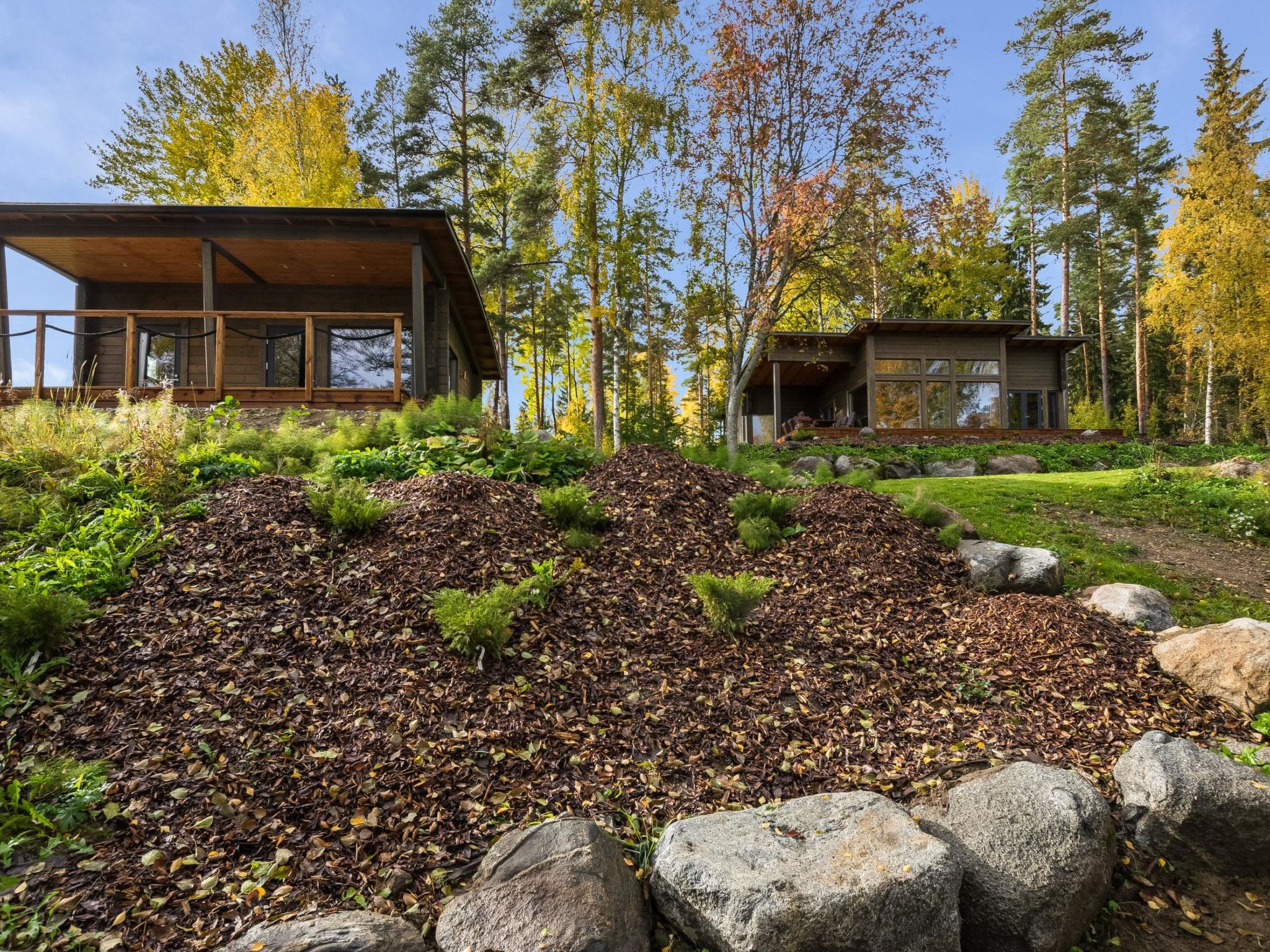 35 km nördlich von Hämeenlinna, See Konaanjärvi 30 m, Sand-/Lehmboden, Ruderboot, Kajak, Anlegestelle. Blockhaus, Baujahr 2019, in herrlicher Lage, am Konaanjärvi-See. Dieses Reiseziel besteht aus zwei Gebäuden, der Hauptkabine 95 m² und der Seekabine 25 m². Hauptkabine: Schlafzimmer mit Doppelbett und 2 Schlafzimmer mit je zwei getrennten Betten in beiden. Gut ausgestattete Küche, Kamin, WC, Dusche. Terrasse mit Möbeln und Gasgrill vor der Hauptkabine. Holzbeheizte Sauna, Dusche und Ankleidezimmer in der Seekabine. Schlafsofa und Kamin im Wohnbereich. Terrasse vor dem Haus am See. Holzbefeurter Whirlpool kann gegen zusätzliche Gebühr gemietet werden. Kunden müssen die Wanne selbst heizen. Der Eigentümer vermietet die Wanne nur, wenn es plus (+) Grad Celsius ist. Die Wanne muss mindestens eine Woche vor dem Urlaub direkt beim Eigentümer gebucht werden. Die Miete im Jahr 2020 beträgt EURO 120. Stabile Treppen führen zum Strand. Blockhaus, Baujahr 2019, wunderschöne Lage am See. Eigener Sandstrand, gepflegter Garten und ruhige Umgebung bilden schöne Kombination. Drei separate Schlafzimmer in der Hauptkabine und die Sauna am See bieten Privatsphäre für diejenigen, die es brauchen. Die grossen Fenster sowohl in der Hauptkabine als auch in der Sauna am See bieten einen atemberaubenden Blick über den See. Sappee 26 km, Hämeenlinna 36 km, Tampere 63 km.