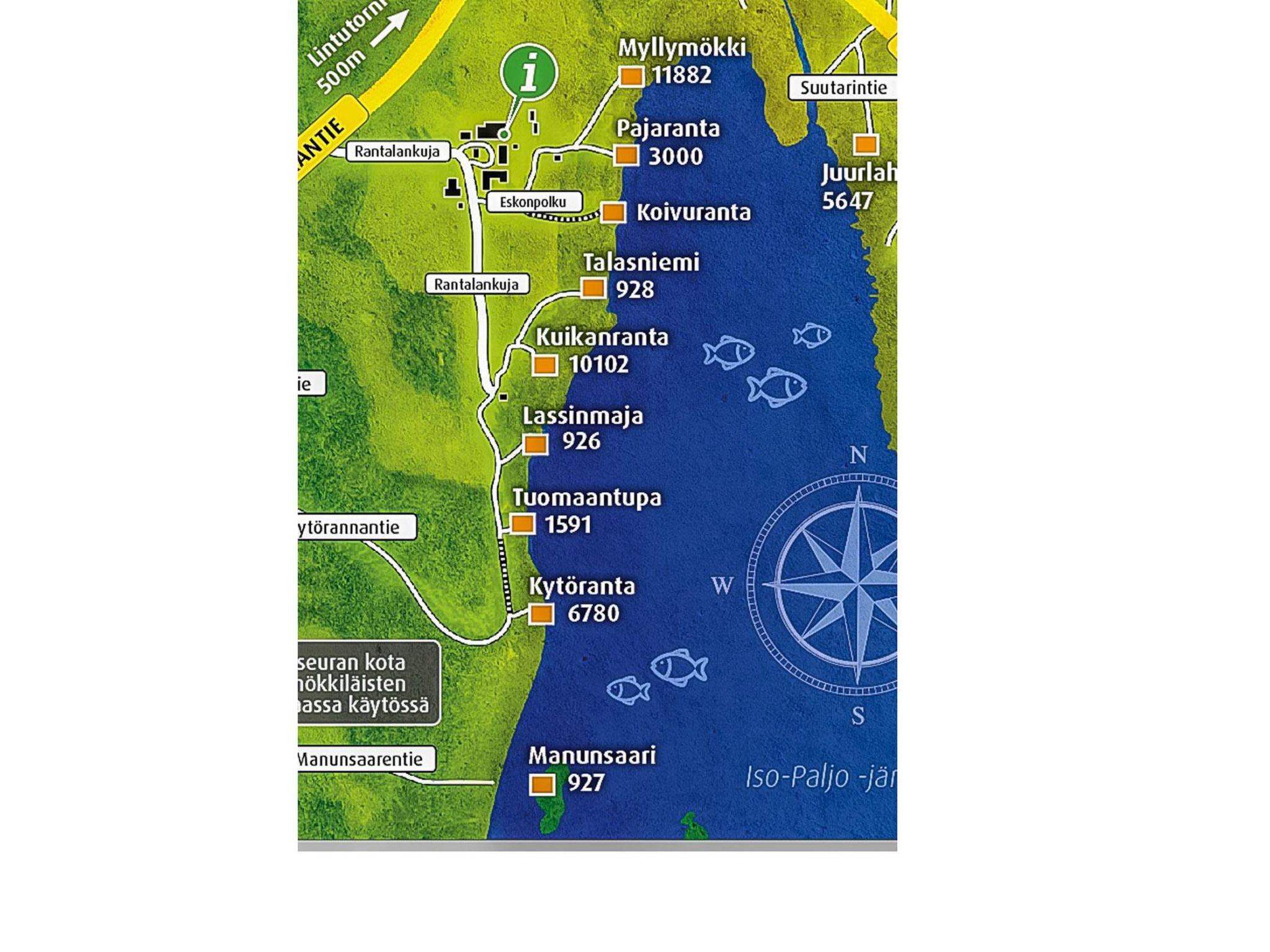 67 km nördlich von Heinola, See Iso-Paljojärvi 15 m (Länge 2 km und Breite 0.7 km), flacher und hart geschliffener Boden, eigenes Boot. Holzferienhaus, Baujahr 1985 (Renovierung 2007), Wohnküche mit Schlafcouch/Doppelbett, 2 Schlafzimmer mit je 1 Doppelbett, Ankleideraum, Waschraum, Sauna, Terrasse. Heizungspumpe/Inverter-Klimaanlage. Hinweis! In diesem Ferienhaus enden die Wochenendbuchungen am Sonntag um 12:00 Uhr. Seit über 40 Jahren werden die Ferienhäuser auf der Rantala Farm vermietet. Die Farm befindet sich nur wenige Gehminuten vom Haus entfernt, so dass die Gäste den Alltag auf der Farm kennenlernen oder einfach nur zum Plaudern vorbeischauen können. Das komfortable Ferienhaus ist ideal für Familien mit Kindern und Gäste, die älter sind. Auf der Rantala Farm wird Getreide und Kümmel angebaut, wobei einige der Felder eher landschaftlich als produktiv sind. Da die Forstwirtschaft für den Landwirt wichtig ist, gibt es für Gäste zahlreiche Möglichkeiten, durch die Wälder zu streifen oder die Forststrassen bzw. Pfade für Spaziergänge und Rucksacktouren zu nutzen. Wilde Beeren und Pilze können frei im Wald gesammelt werden. Das Rantala-Gebiet ist reich an diesen natürlichen Produkten. Auf dem Bauernhof gibt es Dorfgesellschaft-Tipi, in dem die Gäste am offenem Feuer Würstchen rösten oder Kaffee kochen können. Auch der Naturlehrpfad Vuorenkylä, mit seiner herrlichen Landschaft, ist einen Besuch wert! Im Winter gibt es 2-8 km lange gepflegte Skipisten, auf denen Sie das Skigebiet Purnuvuori erreichen können. In Purnu können Sie die berauschende Geschwindigkeit des Abfahrtskifahrens erleben und auch eine, in Purnus berühmte, Maräne essen und geniessen! Vom Haus aus ist das nationale Schneemobil-Wegenetz leicht zu erreichen: Auf der Rantala Farm können die Gäste Schneemobil mieten. In Pajaranta gab es früher die Werkstatt der Rantala Farm, wo Eisenläufer für den Schlitten und Hufeisen für die Pferde hergestellt wurden, die auf der Farm gebraucht worden sind. "Paja" bedeutet Werkstatt oder Schmiede, daher der Name Pajaranta ("Werkstatt/Schmiedeufer"). Die Sonne scheint fast den ganzen Tag auf der Terrasse von Pajaranta. Im Hof gibt es Gartenschaukel und auf der Terrasse Tisch mit Stühlen. Es steht Ruderboot zur Verfügung, mit dem Sie in der Nähe der kleinen Insel grossen Barsch fischen und Ihren Fang dann zum Holzgrill am Ufer bringen können. Direkt neben dem Ferienhaus gibt es ausgezeichnetes Gelände zum Sammeln von Beeren und Pilzen, das sich auch ideal zum Wandern im Allgemeinen eignet. Kommen Sie und geniessen Sie auch die Hitze in der Haussauna mit traditionellem Holzofen. Wir wollen, dass Sie Ihren Urlaub auf der Rantala Farm geniessen und sind bereit Ihnen dabei gerne zu helfen. Eine Steckdose für Motorheizung ist im Freien vorhanden. Haartrockner. Hartola Golfplatz 24 km, Lahti 105 km.