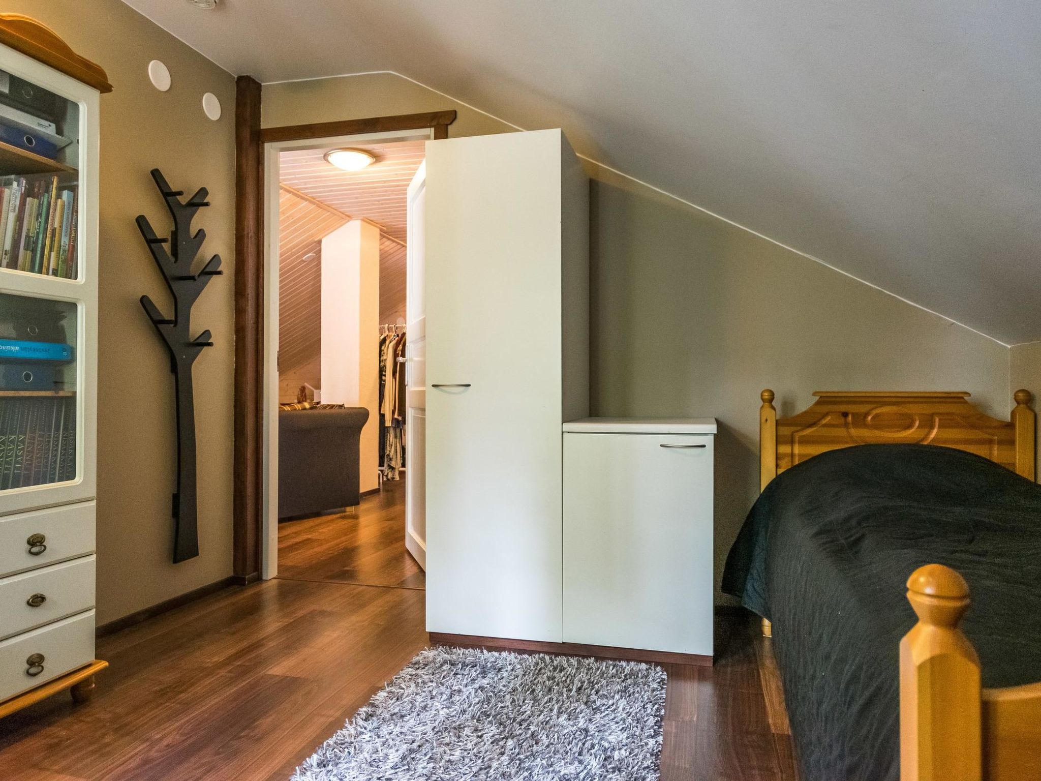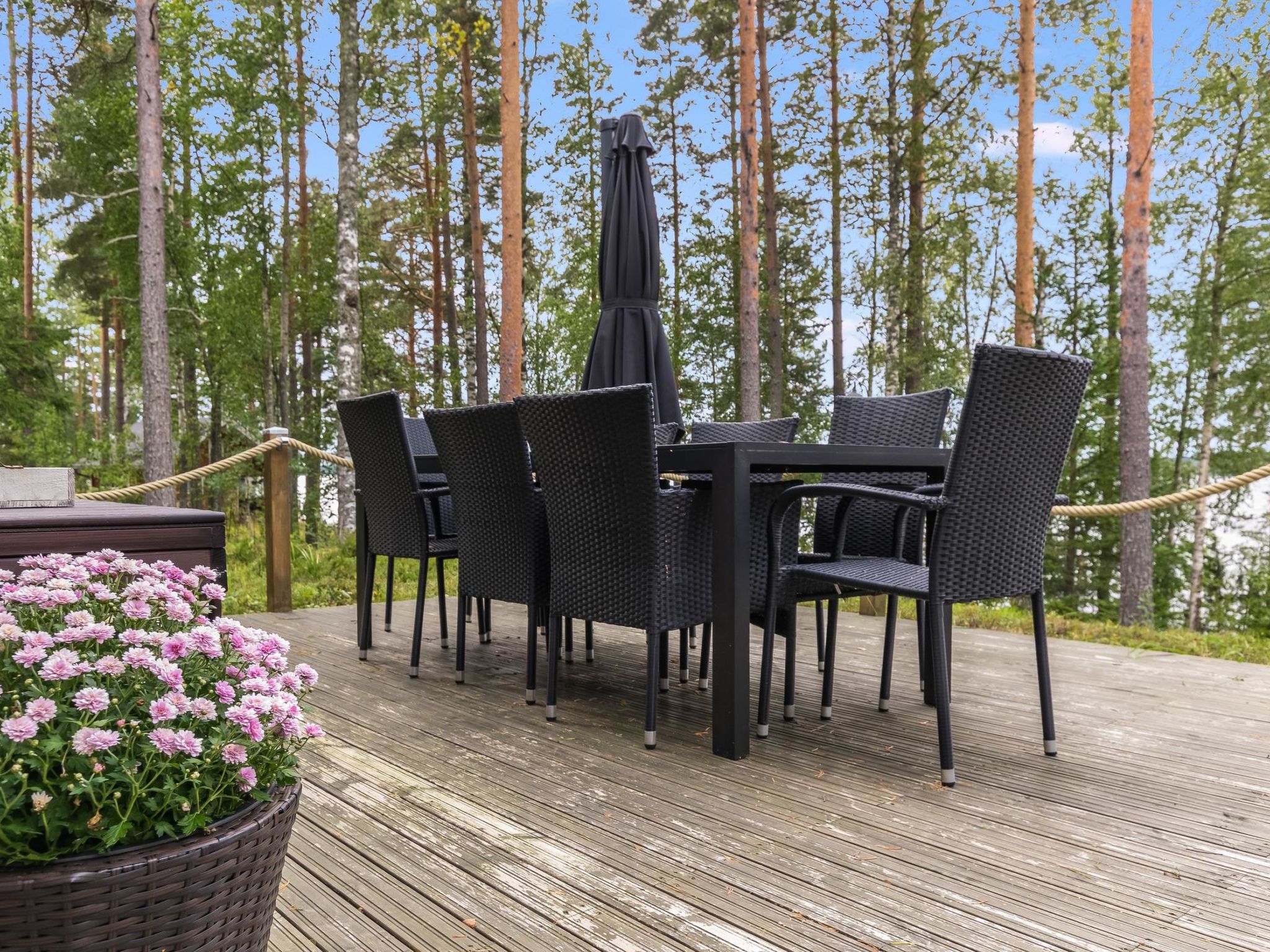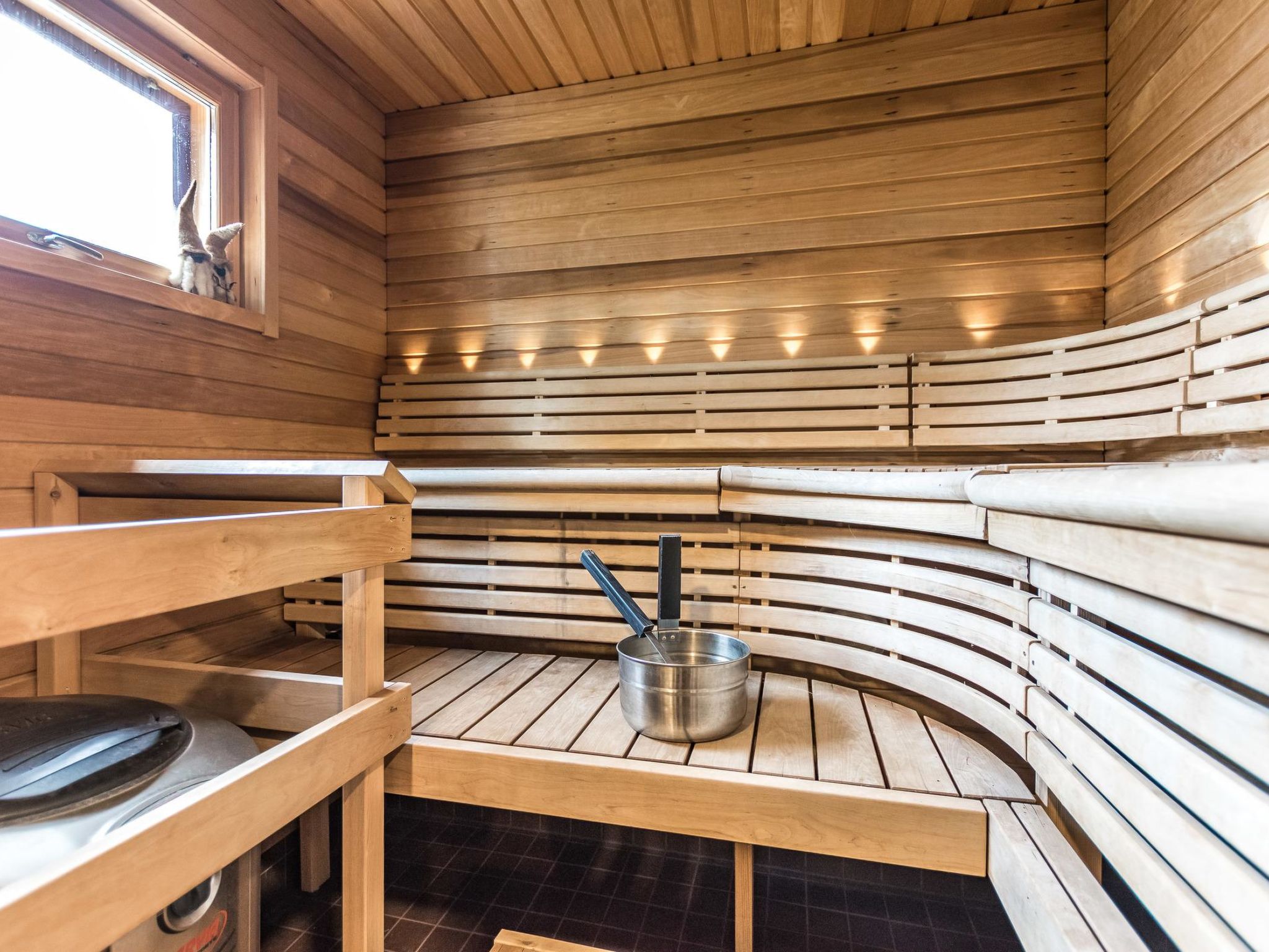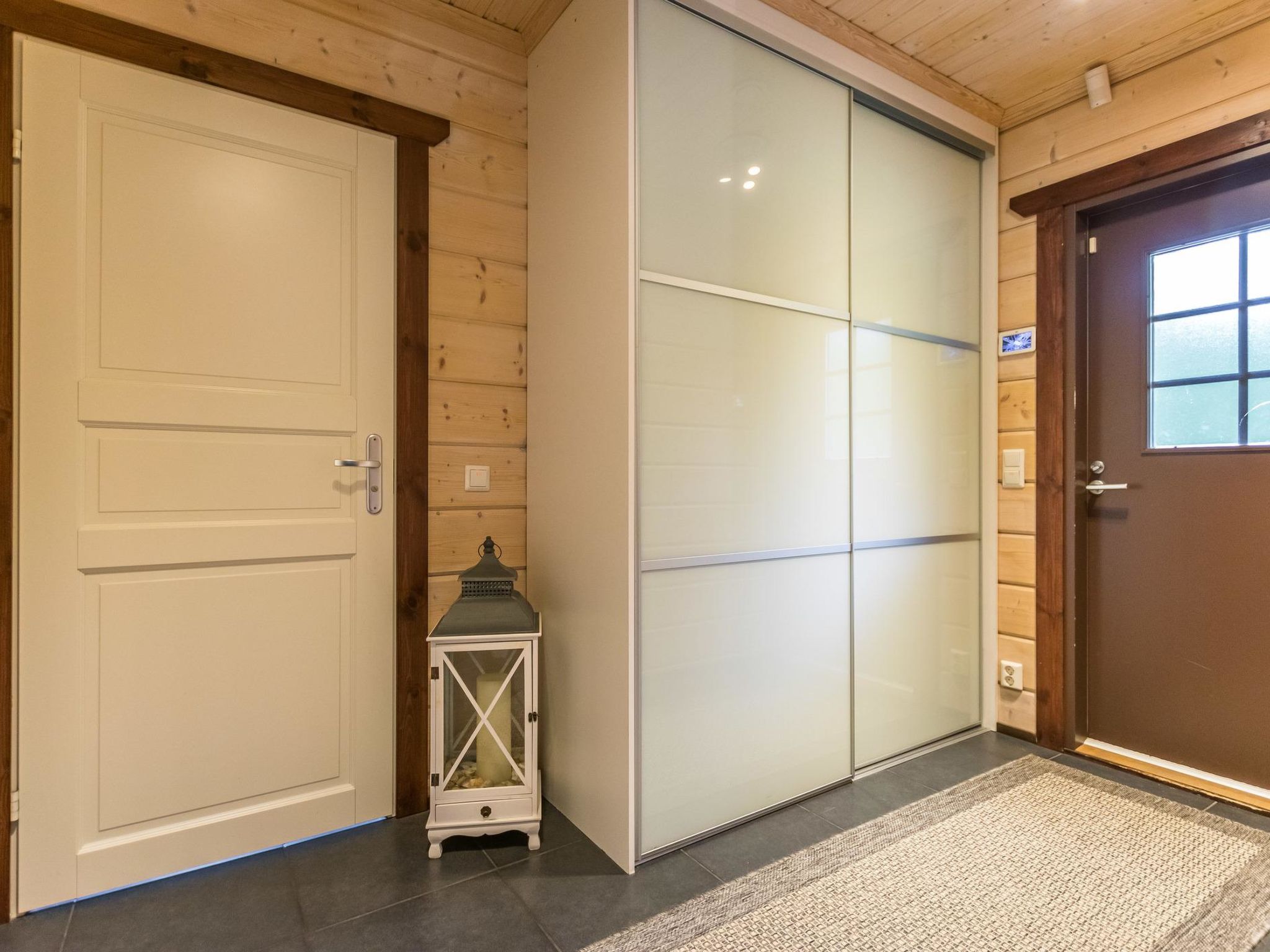 Mäntyranta ist ein geräumiges Haus, das für eine größere Gruppe oder zwei Familien geeignet ist. Das Haus bietet gute Angelmöglichkeiten am See Rutajärvi. Der Leivonmäki-Nationalpark liegt in der Nähe und ist am gegenüberliegenden Ufer des Sees zu sehen. Das Haus ist modern, gut ausgestattet und gemütlich, ideal für den Urlaub. 45 km südlich von Jyväskylä, See Rutajarvi 30 m (Länge 5 km, Breite 2,3 km), zuerst flacher Kiesstrand, dann schnell tiefer werdend, eigener Pier, Ruderboot, Außenbordmotor zu mieten. Große Blockhausvilla (2008). Im Erdgeschoss Küche, Hauswirtschaftsraum, Wohnzimmer, Schlafzimmer 1: Doppelbett 180x200 cm, WC, Sauna (sogenannter Elektrosaunaofen), Waschraum (3 Duschen) mit Hydromassage-Badewanne. Verglaste Terrasse mit grosser, nicht überdachte Terrasse davor. Im Obergeschoss, WC, drei Schlafzimmer (1. Schlafzimmer: 1 Bett 120x200 cm, 2. Schlafzimmer: 2 Betten 80x200 cm, 3. Schlafzimmer: 2 Betten 90x200 cm), Vorraum mit Schlafcouch (Länge 196 cm) und TV. Garage und Carport auf dem Hof. Der Carport steht dem Mieter zur Verfügung, aber nicht die Garage. Separate Seesauna mit Strom, Elektroheizung, Schlafsofa (140x190 cm) als Bettalternative. Waschraum mit Kessel zur Warmwasserbereitung, Saunaraum mit holzbeheiztem Saunaofen. Wasser in die Sauna muss mit einem Eimer aus dem See gebracht werden. Vor der Sauna befindet sich Lagerfeuerplatz, mit herrlichem Blick auf den See. Dieses Reiseziel bietet Platz für bis zu 8 Personen, einschließlich Kinder. Das Objekt ist am Anreisetag ab 17.00 Uhr verfügbar. Das Haus verfügt über Überwachungskamerasystem, welcher jedoch nicht verwendet wird, wenn sich Mieter im Haus befinden. Sonniges Hanggrundstück, das zum Strand hin abfällt. Toller Blick auf den See vom Haus und Hof. Gemütliche verglaste Terrasse, die Sie auch bei kühlerem Wetter genießen können. Nationalpark Leivonmäki 16 km, Jyväskylä 55 km, Leivonmäki 5 km, Bäckerei und Restaurant Karoliinan kahvimylly (in Leivonmäki) 6 km.