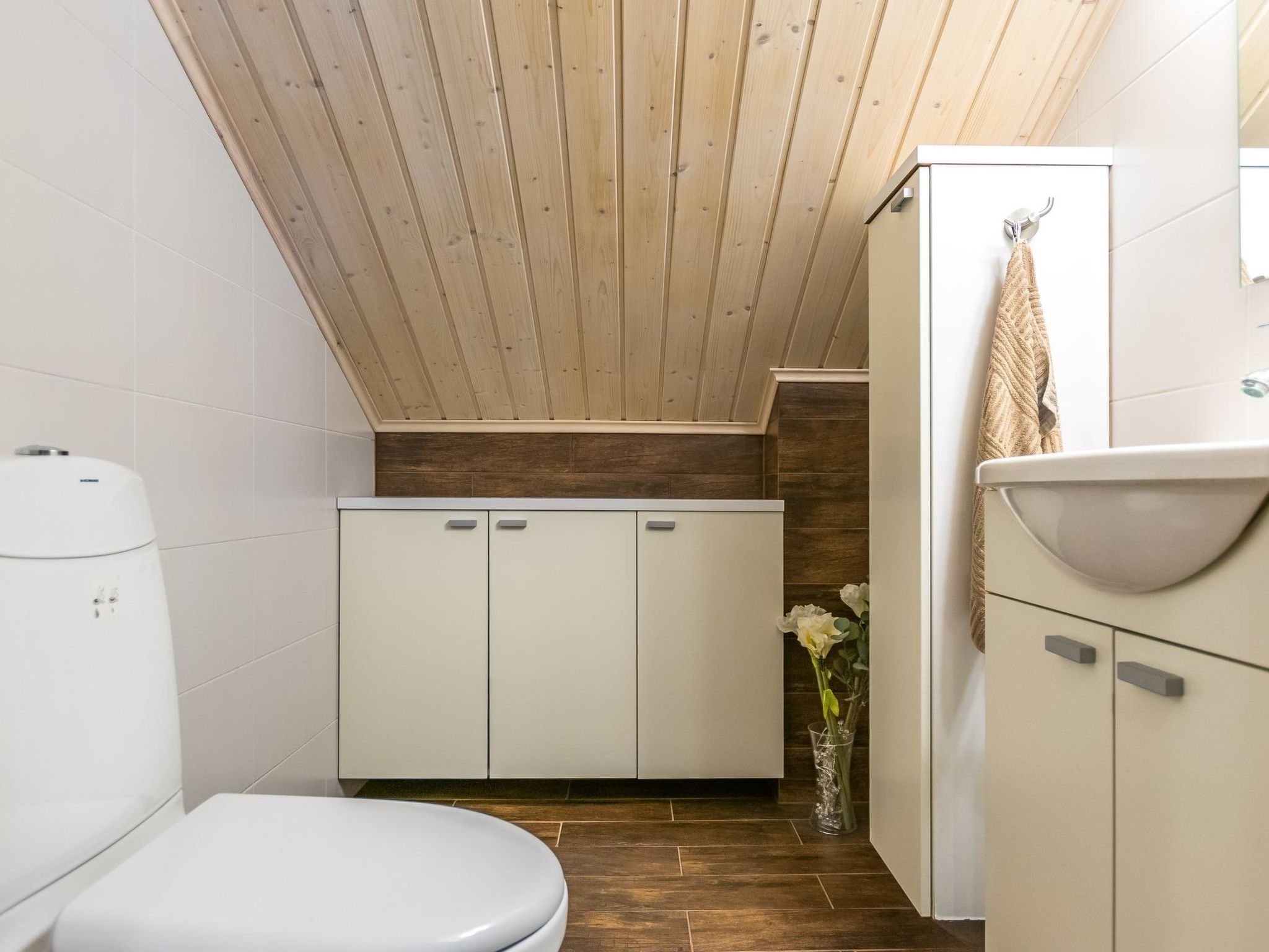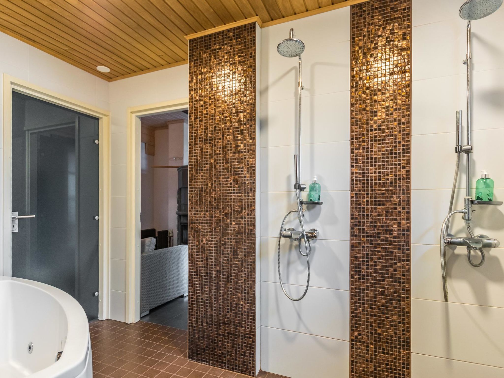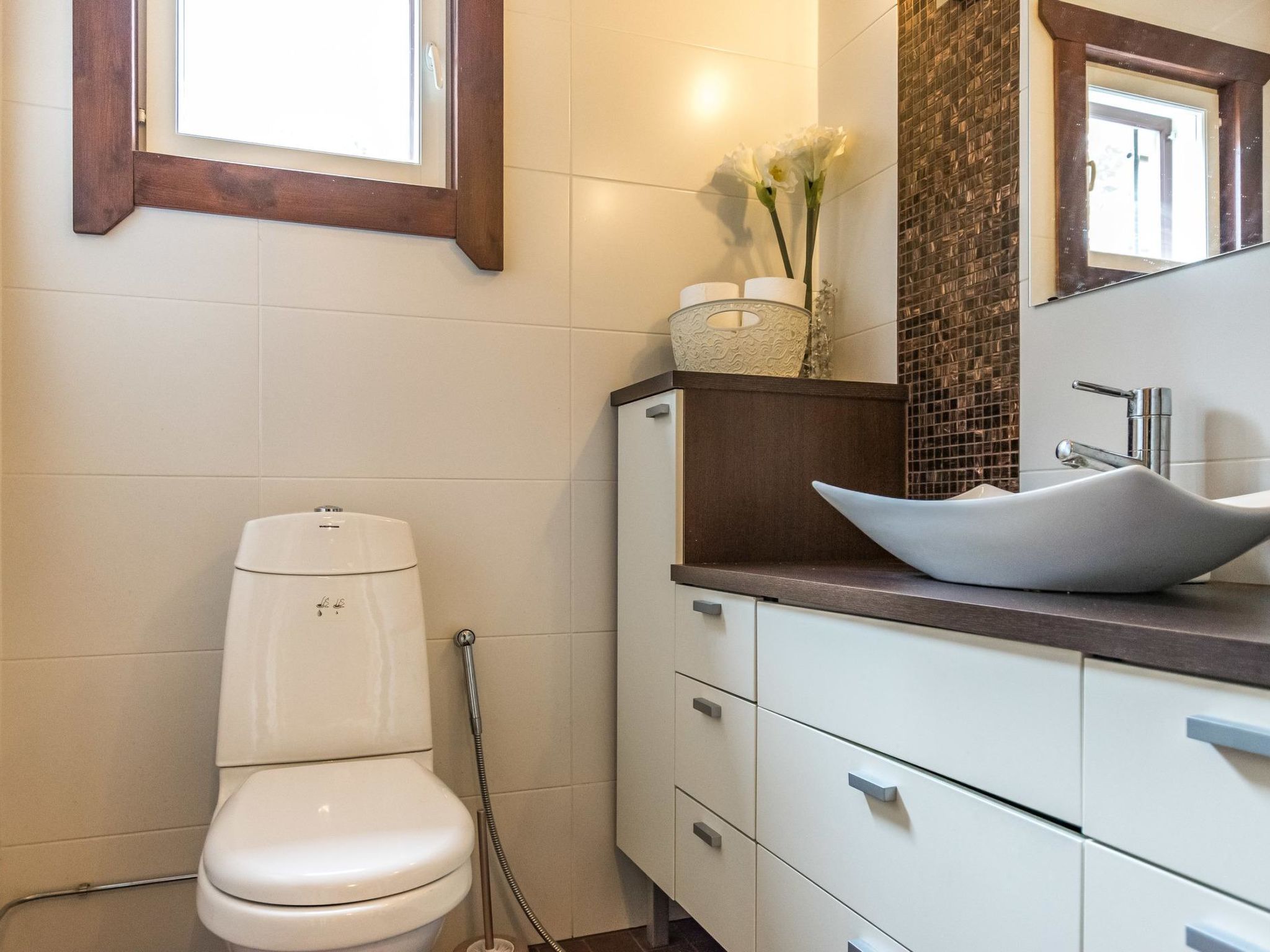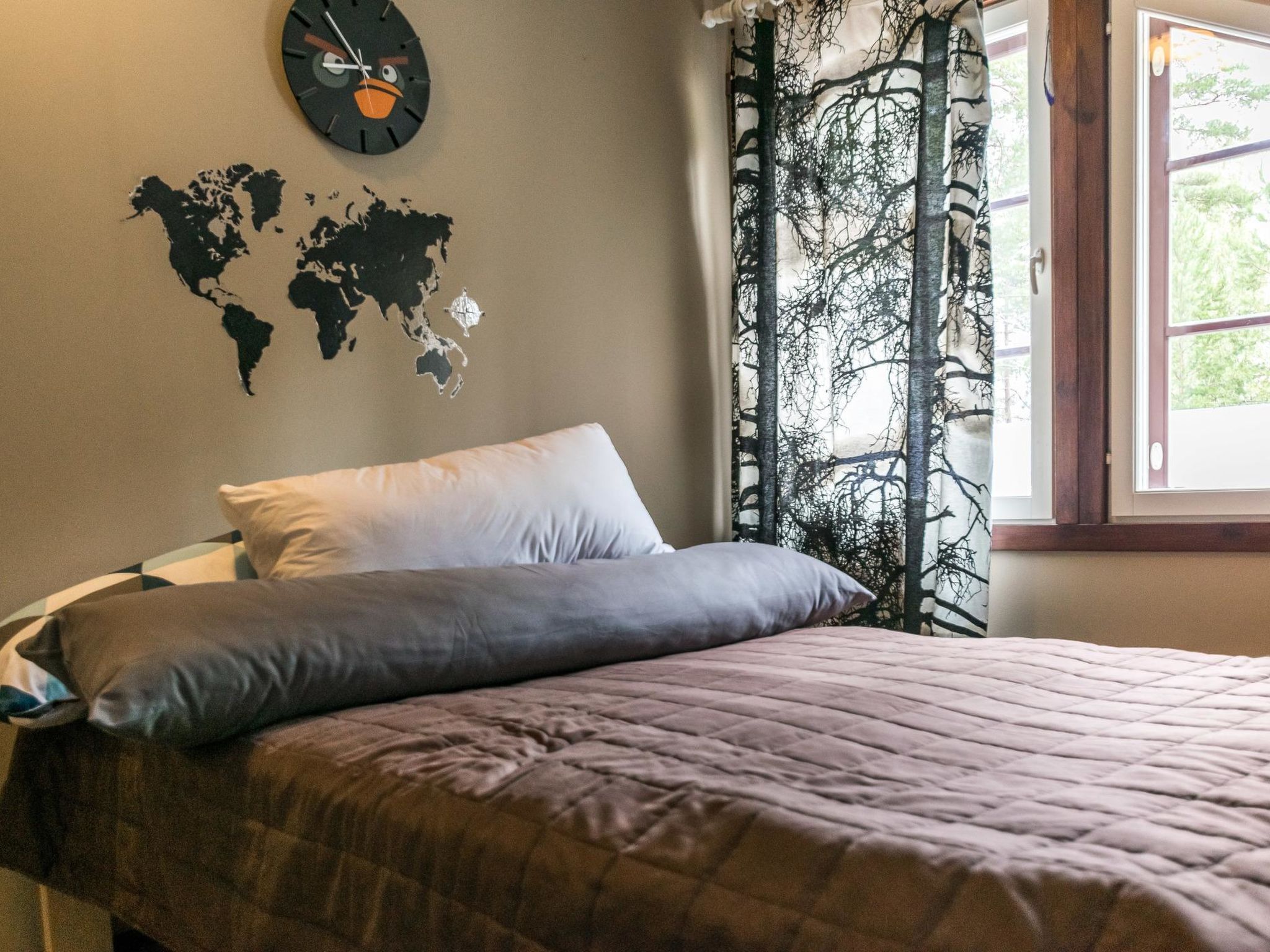 Mäntyranta ist ein geräumiges Haus, das für eine größere Gruppe oder zwei Familien geeignet ist. Das Haus bietet gute Angelmöglichkeiten am See Rutajärvi. Der Leivonmäki-Nationalpark liegt in der Nähe und ist am gegenüberliegenden Ufer des Sees zu sehen. Das Haus ist modern, gut ausgestattet und gemütlich, ideal für den Urlaub. 45 km südlich von Jyväskylä, See Rutajarvi 30 m (Länge 5 km, Breite 2,3 km), zuerst flacher Kiesstrand, dann schnell tiefer werdend, eigener Pier, Ruderboot, Außenbordmotor zu mieten. Große Blockhausvilla (2008). Im Erdgeschoss Küche, Hauswirtschaftsraum, Wohnzimmer, Schlafzimmer 1: Doppelbett 180x200 cm, WC, Sauna (sogenannter Elektrosaunaofen), Waschraum (3 Duschen) mit Hydromassage-Badewanne. Verglaste Terrasse mit grosser, nicht überdachte Terrasse davor. Im Obergeschoss, WC, drei Schlafzimmer (1. Schlafzimmer: 1 Bett 120x200 cm, 2. Schlafzimmer: 2 Betten 80x200 cm, 3. Schlafzimmer: 2 Betten 90x200 cm), Vorraum mit Schlafcouch (Länge 196 cm) und TV. Garage und Carport auf dem Hof. Der Carport steht dem Mieter zur Verfügung, aber nicht die Garage. Separate Seesauna mit Strom, Elektroheizung, Schlafsofa (140x190 cm) als Bettalternative. Waschraum mit Kessel zur Warmwasserbereitung, Saunaraum mit holzbeheiztem Saunaofen. Wasser in die Sauna muss mit einem Eimer aus dem See gebracht werden. Vor der Sauna befindet sich Lagerfeuerplatz, mit herrlichem Blick auf den See. Dieses Reiseziel bietet Platz für bis zu 8 Personen, einschließlich Kinder. Das Objekt ist am Anreisetag ab 17.00 Uhr verfügbar. Das Haus verfügt über Überwachungskamerasystem, welcher jedoch nicht verwendet wird, wenn sich Mieter im Haus befinden. Sonniges Hanggrundstück, das zum Strand hin abfällt. Toller Blick auf den See vom Haus und Hof. Gemütliche verglaste Terrasse, die Sie auch bei kühlerem Wetter genießen können. Nationalpark Leivonmäki 16 km, Jyväskylä 55 km, Leivonmäki 5 km, Bäckerei und Restaurant Karoliinan kahvimylly (in Leivonmäki) 6 km.