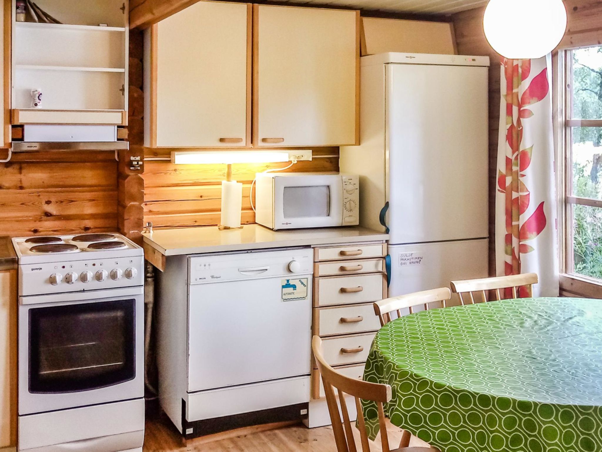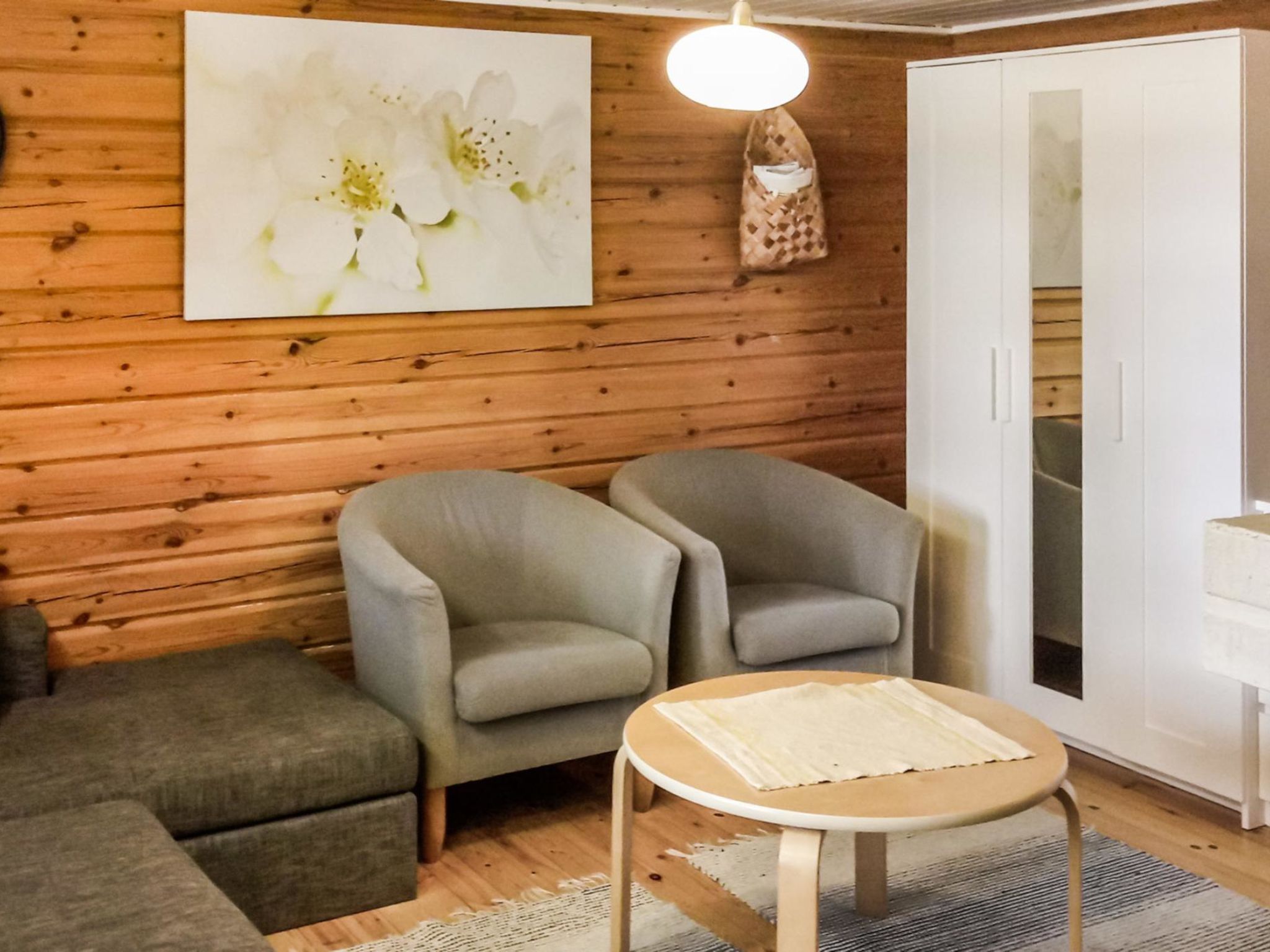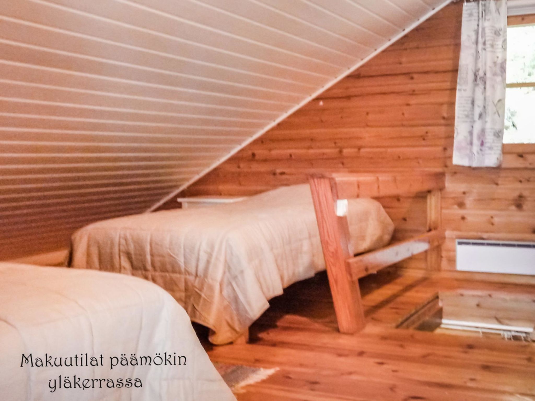 50 km nordwestlich von Tampere. See Kyrösjärvi 20 m (Länge 30 km, Breite 5 km), flaches Wasser, fester Sand-/Felsboden, Anlegestelle. Eigenes Boot. Blockhaus, Baujahr 1988 auf einem Hanggrundstück, Küche, Wohnzimmer, 2 Schlafzimmer mit je 1 Bett, Schlafboden (Höhe auf dem höchsten Punkt 1.7 m, steile Treppe) mit 2+2 Betten, verglaste Veranda. Separate Sauna (20 m²) mit 2 Betten, offene Veranda. Hanggrundstück und daher für behinderte Menschen oder kleine Kinder nicht gerade geeignet. Rauchsauna nach Vereinbarung. Im Ferienhaus ist Handbrause. Internetverbindung.
