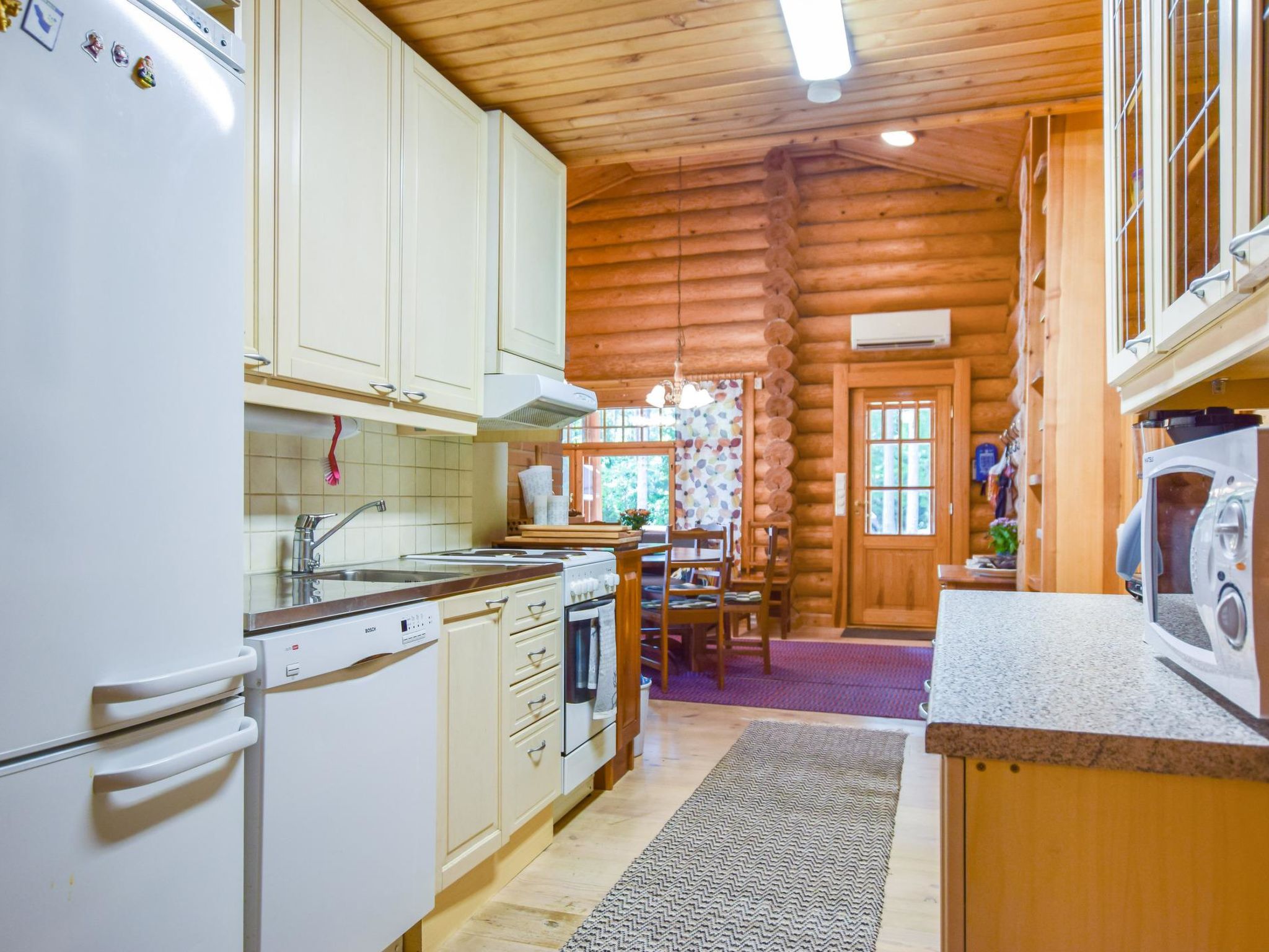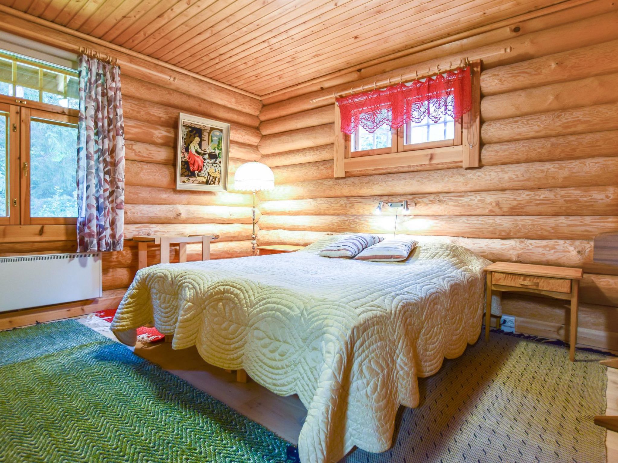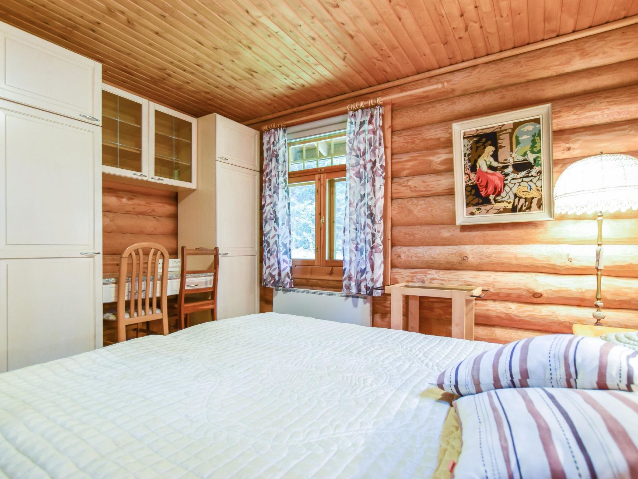 75 km nördlich von Tampere, See Kyrösjärvi 30 m (Länge 42 km, Breite 5 km), flacher und hart geschliffener Lehmboden, eigenes Boot. Blockferienhaus, Baujahr 2006, Wohnküche, 3 Schlafzimmer mit je 2 Betten, Ankleideraum, Waschraum, Sauna, offene Veranda. Zusätzlich separates Saunagebäude (25 m²), Kaminzimmer, Sauna mit elektrischem Licht und Heizung, sowie Kaltwasserleitung (Saunagebäude nur in der Zeit von 1.5. bis 30.9. verfügbar). Hochwertiges Ferienhaus mit Sauna. Grundstück ist eben und hauptsächlich gasbewachsen und Ufer ist nach Süden ausgerichtet. Ikaalinen Spa im Winter auf der Eisstrasse 7 km, auf der Strasse 25 km entfernt. Nur für Familien.