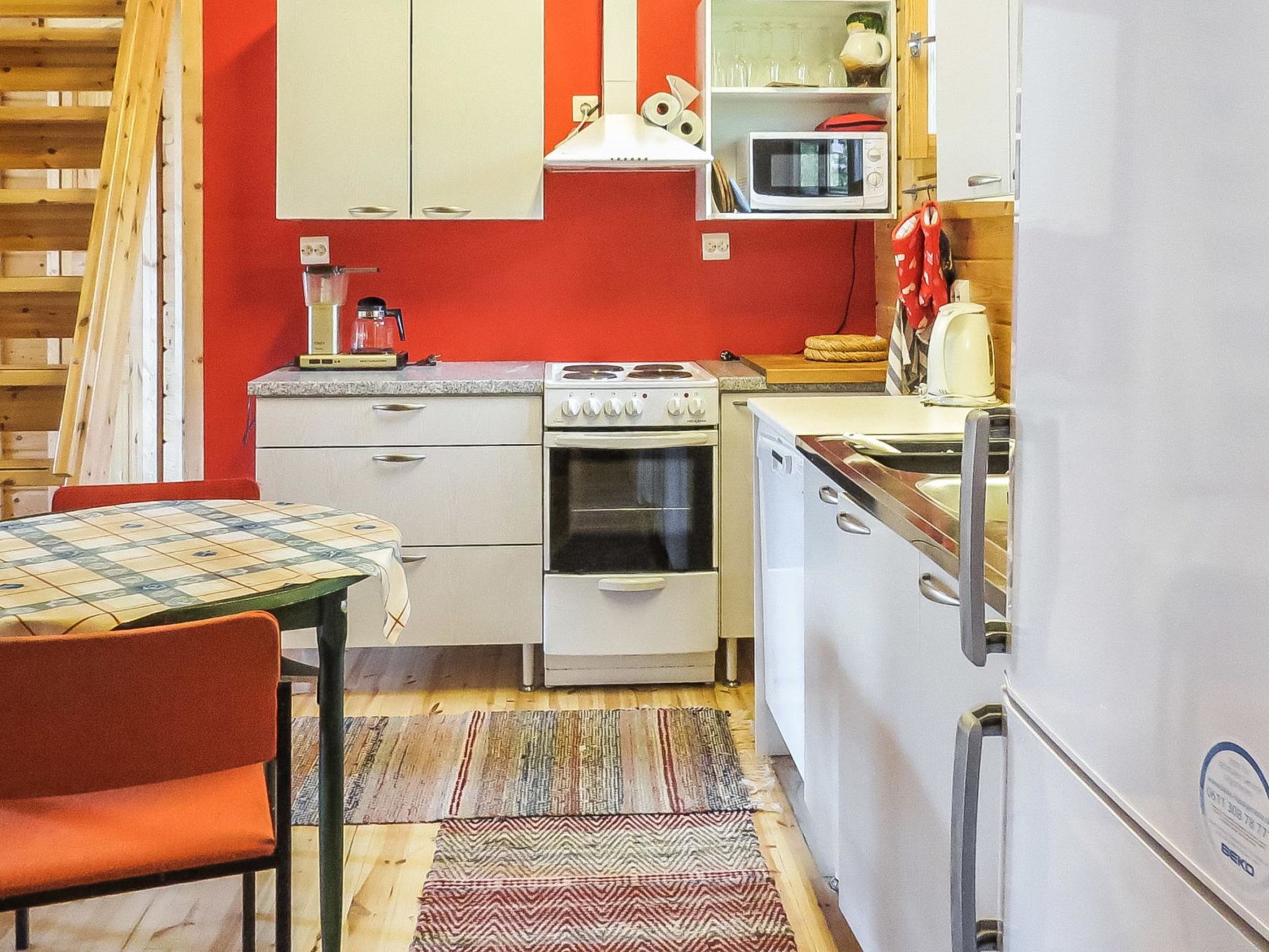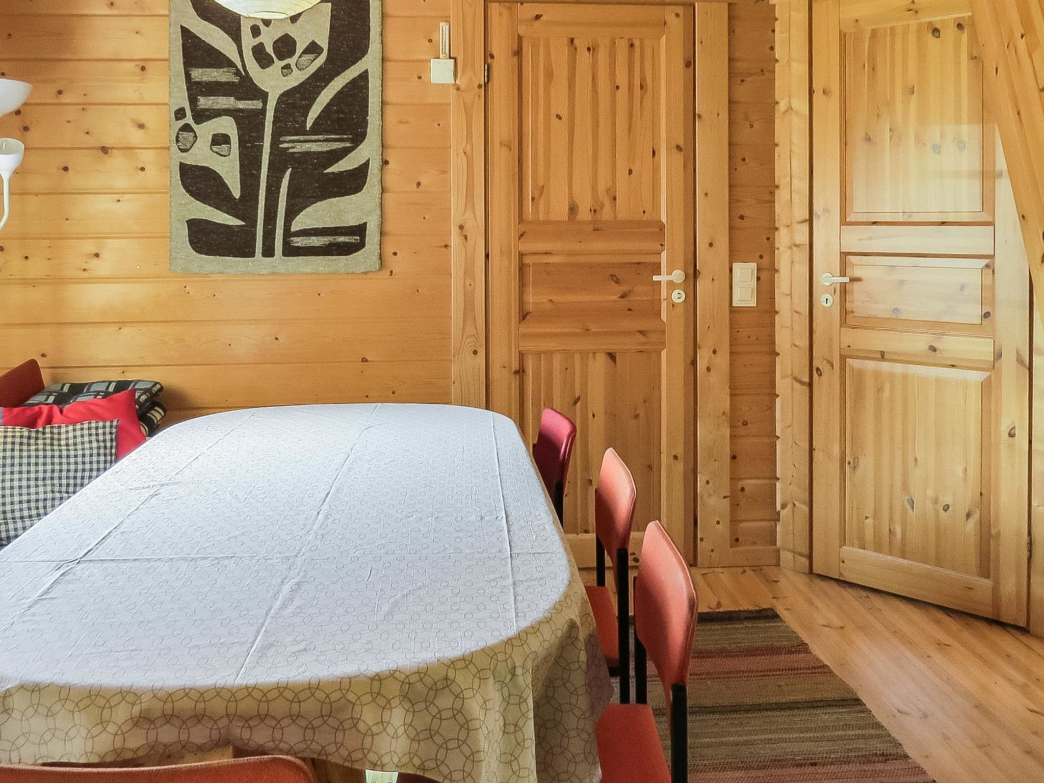170 km nordwestlich von Helsinki. Blockferienhaus nicht neben einem See gelegen, Baujahr 2011, Wohnküche, 2 Schlafzimmer mit je 2 Betten, Sauna (Holzofen), Waschraum mit 2 Duschen, Ankleideraum, Öko-Toilette, Dusche, 2 Schlafböden mit insgesamt vier Matratzen. Fussbodenheizung im WC und Wasch-/Ankleideraum. Blockferienhaus in der Gegend mit 4 Ferienhäusern, neben dem regionalen Skigebiet Porttikallio. Die Ferienhäuser teilen sich ein Schwimmbad, welches sich zwischen den Häusern 8547 a 8548 befindet. Die Lage bietet das ganze Jahr über vielfältige Möglichkeiten für aktive Menschen. Das Skigebiet verfügt auch über eine beleuchtete Skipiste und Biathlonziele sowie Grill-Tipi, das jedem zur Verfügung steht (200 m). Auch Vogelbeobachtungsturm gibt es auf einem, 600 m entfernten, Naturlehrpfad. Skipisten werden im Sommer zum Joggen und Radfahren benutzt. Markierte Mountainbike-Strecke 9 km. Frisbee-Bahn mit 9 Körben, Golfplatz Kesälaidun (9 Löcher) 3 km. Kanustrecke nach Huittinen (Länge 28 km). Särkkä Tanzpavillon 10 km. Flusskreuzfahrten und Vogelbeobachtungsausflüge werden vom Eigentümer arrangiert. Fahrradverleih nach gesonderter Vereinbarung (1 Fahrrad ist in der Ferienhausmiete enthalten). Tagungseinrichtungen für Gruppen (max. 20 Personen). Flughafen Tampere 75 km.