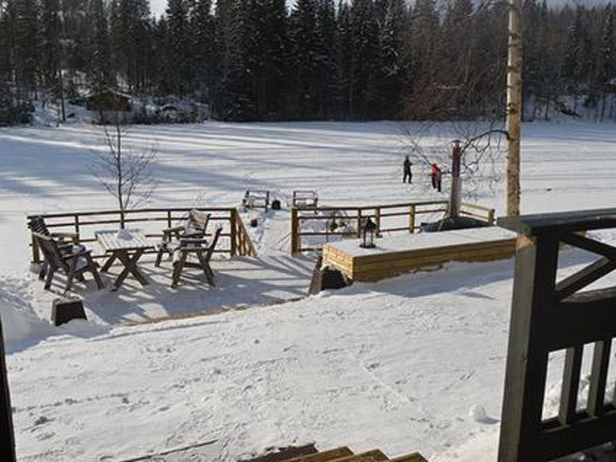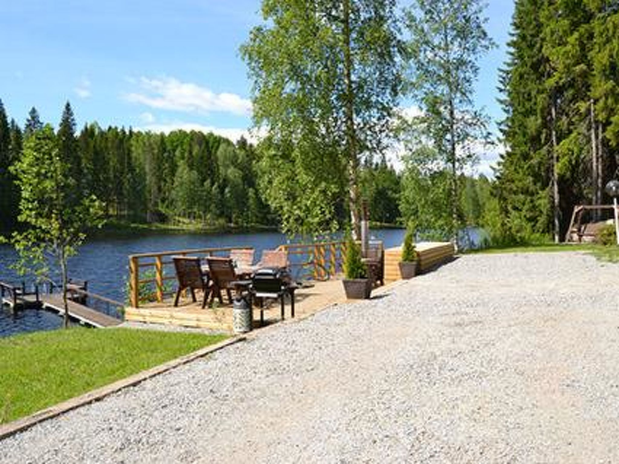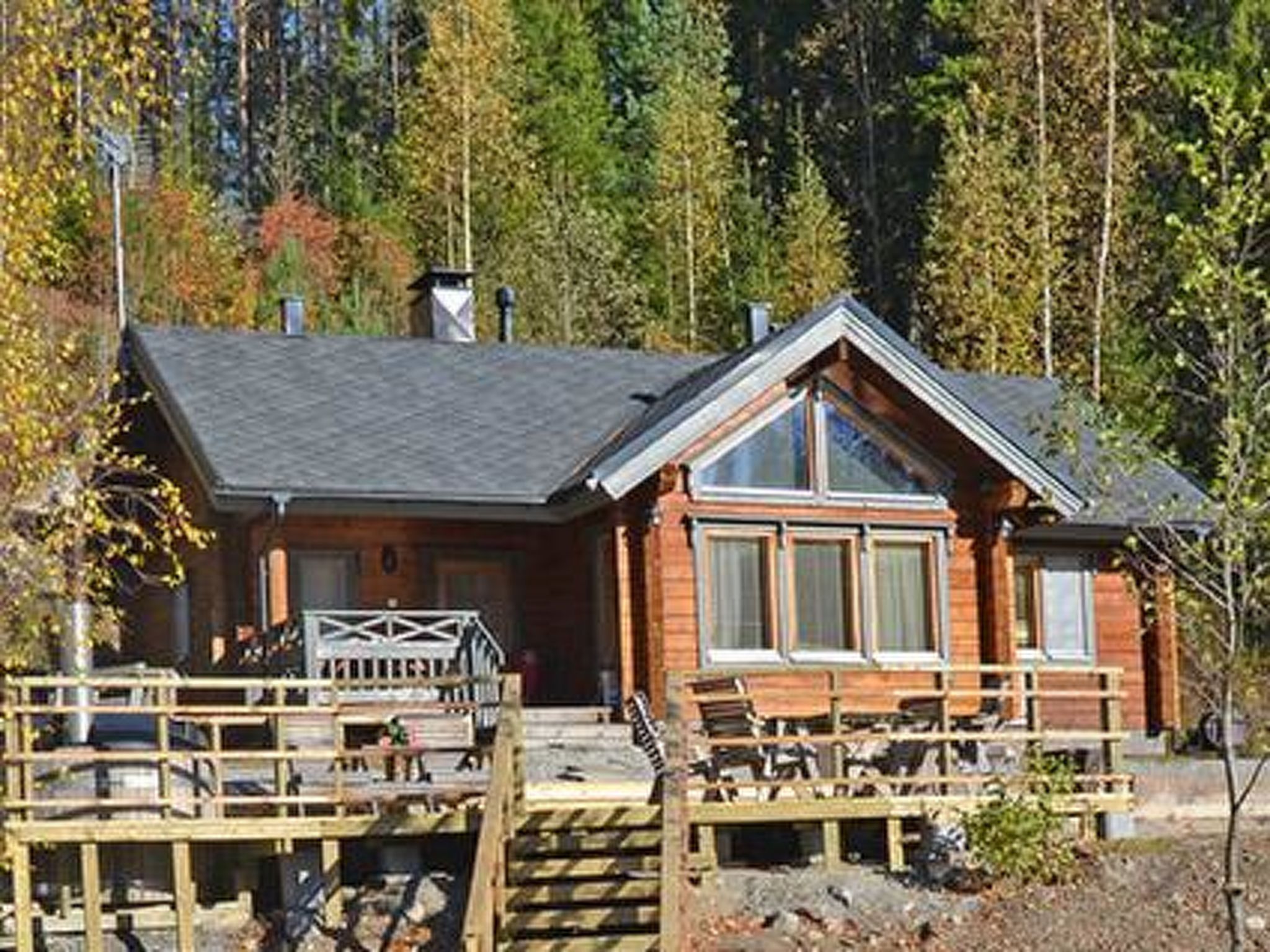 64 km westlich von Tampere, See Suodenjärvi 20 m (Länge 2 km, Breite 200 m), tiefer und weicher Lehm-/Schlammboden, eigene Anlegestelle und Boot. Blockferienhaus, Baujahr 2005, Wohnküche mit Schlafsofa, 2 Schlafzimmer mit je 1 Doppelbett, Schlafboden mit 4 Zustellbetten (steile Treppe zum Dachboden, niedrige Decke), Waschraum, Ankleidezimmer, Sauna, Veranda. Es gibt eine Luftwärmepumpe. Whirlpool auf der Terrasse kann gemietet werden (€ 120/Buchungszeitraum, Kunde heizt ihn selbst mit Holz auf, Zahlung direkt an den Eigentümer). Die Wanne kann nicht gemietet werden, wenn das Winterwetter sehr kalt ist. Blockhaus am kleinen See. Fischarten: Zander, Barsch und Hecht. Der Hofbereich ist eben und hell, im Hinterhof gibt es steilen Hang. Für Kinder Schaukel und Sandkasten verfügbar. In der Nähe befinden sich Naturpfade, Aussichtsturm, sowie ein 4 km entfernter Suomu-Angelplatz, wo Sie nach Regenbogenforellen fischen können. Der Eigentümer verkauft Genehmingungen. Auf dem Bio-Bauernhof des Eigentümers gibt es Ziegen und Hühner. Geschäft und Restaurant in Suodenniemi 5 km, Eden Spa Nokia und Ikaalinen Spa 50 km, Skigebiet Ellivuori 37 km, im Winter (wenn die Schneebedingungen dies zulassen) bereitet der Eigentümer Skipisten zum See vor, Vammala 35 km, Tampere und Pori 60 km.