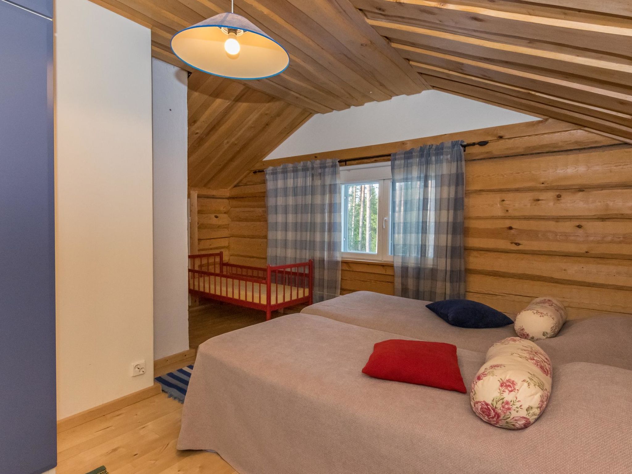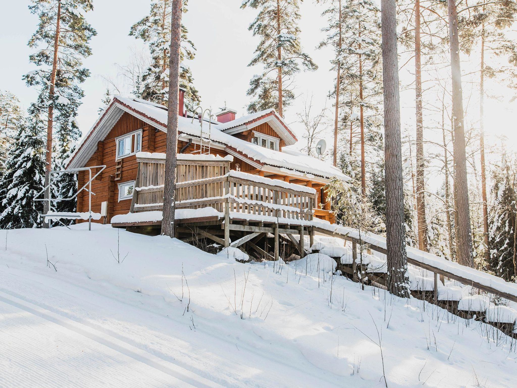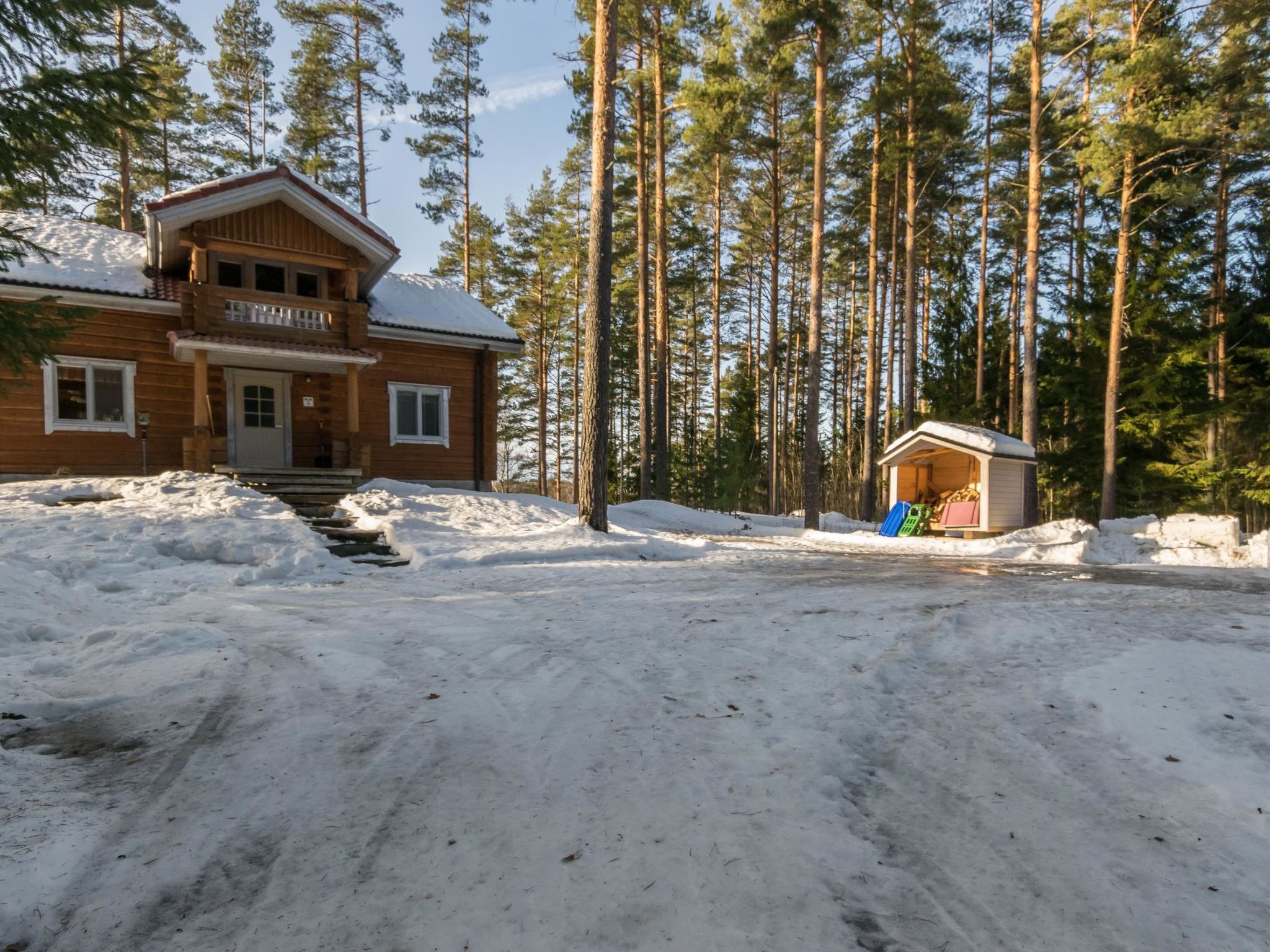 55 km nordwestlich von Heinola, See Suojärvi 45 m (Länge 3 km, Breite 0.8 km), harter und flacher, leicht abfallender Sand-Ton-Schlammboden, Anlegestelle und eigenes Boot. Handgeschnitzte Blockvilla, Baujahr 2004, Wohnküche, Schlafzimmer mit Doppelbett, Sauna (Holz- und Elektroherd), Waschraum, Anleide-/Hauswirtschaftsraum, Flur, Terrasse. Im Obergeschoss Schlafzimmer mit 2 Betten, Schlafzimmer mit zwei Betten und einem Kinderbett, Schlafsofa für zwei in der Lobby, WC, Balkon. Kindertor im Ober- und Erdgeschoss. W-LAN Zugang. Klimaanlage. Satellitenantenne. Unterstand und Lagerfeuer. Tainan Tupa ist eine schöne Villa, auf einem Hügel. Schlafzimmer sind geräumig und bieten gemütliche Atmosphäre. Es gibt Treppen zum Strand hinunter. Der Suojärvi-See ist ein See mit klarem Wasser. Der Eigentümer vermietet Aussenbordmotor, Freizeitausrüstung (z.B. Kanus, Fahrräder, Elektrofahrräder und Angelausrüstung), sowie Sauna am See. Der Eigentümer hat ein weiteres Miet-Ferienhaus (12928), in 0.8 km Entfernung. Im Winter (wenn es genug Schnee gibt) beginnen sowohl Freestyle- als auch klassische Skipisten vom Hof des Ferienhauses, 11 km lang. Sysmä 7 km, Tennisplatz, Joggingstrecke, Eisbahn (Kunsteis), Akkordeon Museum, Schwimmhallte, Kino 7 km, Pulkkilanharju 40 km, Vääksy Kanal 60 km. Nationalpark Päijätsalo (Päijänne Nationalpark) 15 km, Kammiovuori 24 km/Südfinnlands zweihöchster Punkt (221 km), Yhden lehmän navetan Pub (Scheunenkneipe) 22 km, Sysmä Diensthaus mit Hallenbad und Fitnesszentrum 7 km, Golfplatz Hartola Golf 28 km. Reitmöglichkeiten im Sommer in den Starhill-Stallungen 15 km, ganzjährige Unettu Pferdefarm Hartola 29 km, Reitstall Vahto in Asikkala 30 km, Purnuvuori Ski 46 km, Lahti, Messilä 80 km, Himos 102 km, Nokia Eden 183 km, Spa Serena Espoo 199 km.