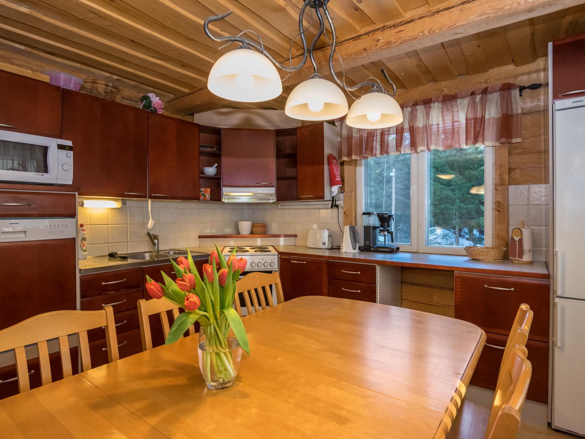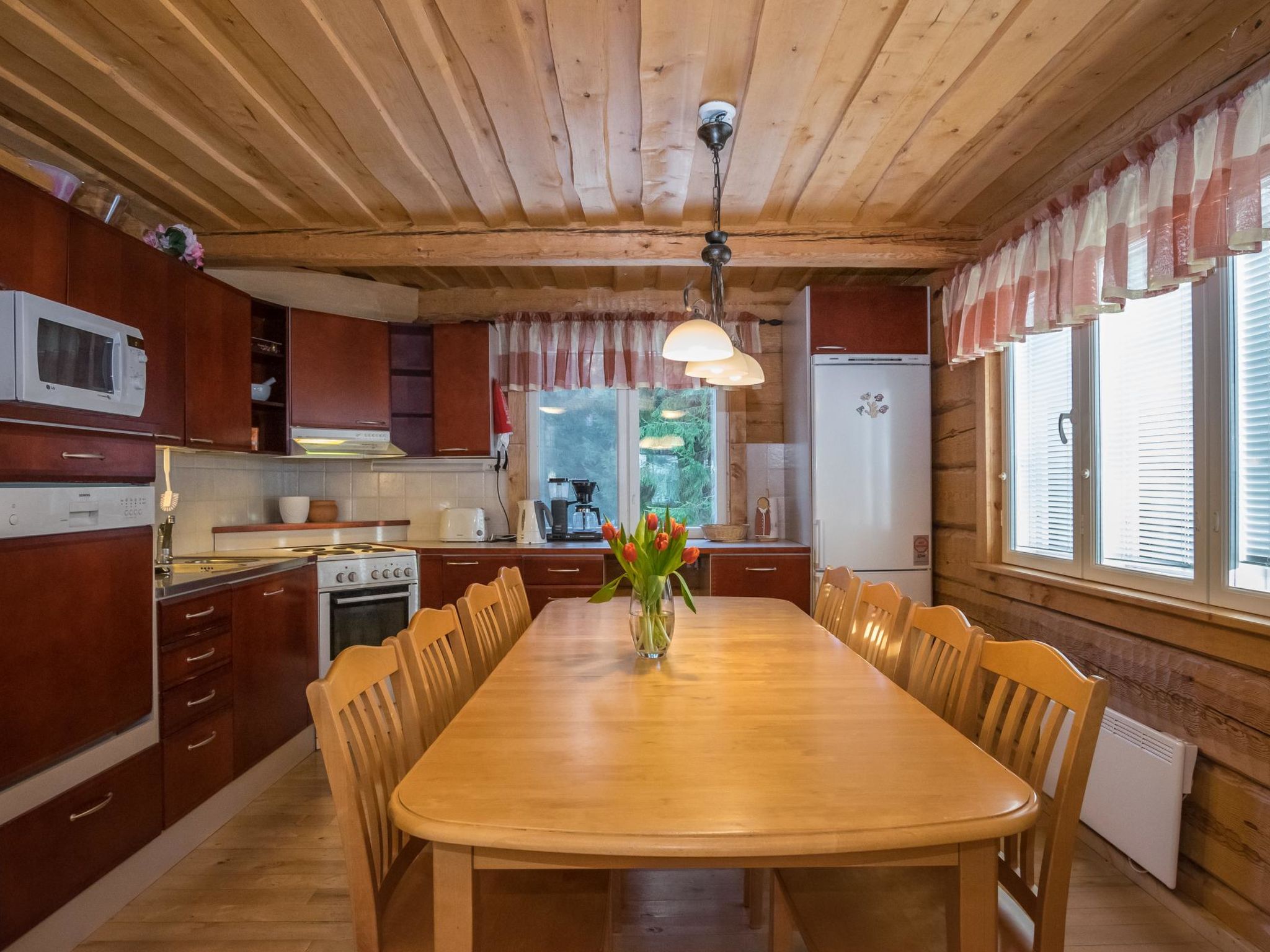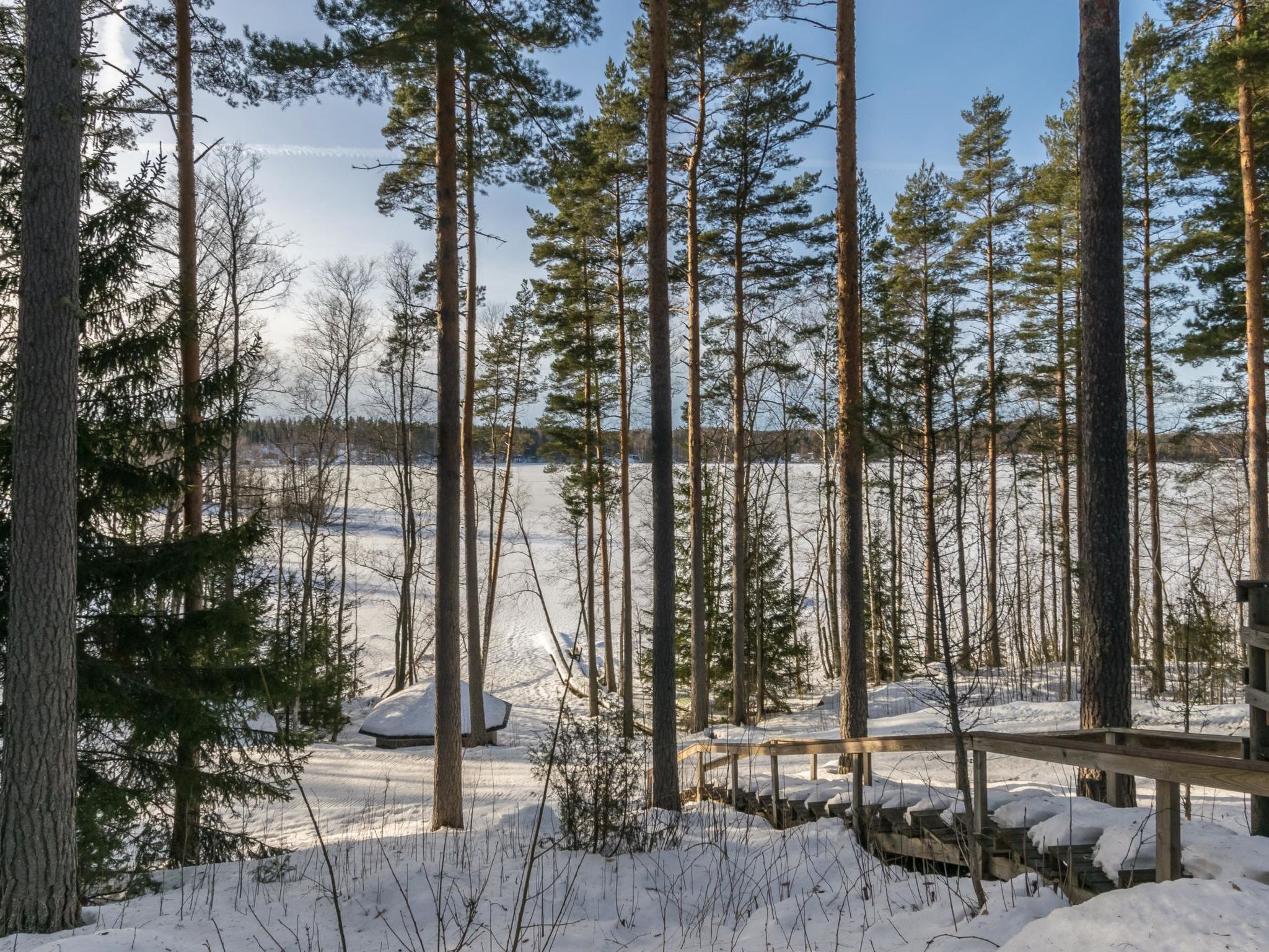 55 km nordwestlich von Heinola, See Suojärvi 45 m (Länge 3 km, Breite 0.8 km), harter und flacher, leicht abfallender Sand-Ton-Schlammboden, Anlegestelle und eigenes Boot. Handgeschnitzte Blockvilla, Baujahr 2004, Wohnküche, Schlafzimmer mit Doppelbett, Sauna (Holz- und Elektroherd), Waschraum, Anleide-/Hauswirtschaftsraum, Flur, Terrasse. Im Obergeschoss Schlafzimmer mit 2 Betten, Schlafzimmer mit zwei Betten und einem Kinderbett, Schlafsofa für zwei in der Lobby, WC, Balkon. Kindertor im Ober- und Erdgeschoss. W-LAN Zugang. Klimaanlage. Satellitenantenne. Unterstand und Lagerfeuer. Tainan Tupa ist eine schöne Villa, auf einem Hügel. Schlafzimmer sind geräumig und bieten gemütliche Atmosphäre. Es gibt Treppen zum Strand hinunter. Der Suojärvi-See ist ein See mit klarem Wasser. Der Eigentümer vermietet Aussenbordmotor, Freizeitausrüstung (z.B. Kanus, Fahrräder, Elektrofahrräder und Angelausrüstung), sowie Sauna am See. Der Eigentümer hat ein weiteres Miet-Ferienhaus (12928), in 0.8 km Entfernung. Im Winter (wenn es genug Schnee gibt) beginnen sowohl Freestyle- als auch klassische Skipisten vom Hof des Ferienhauses, 11 km lang. Sysmä 7 km, Tennisplatz, Joggingstrecke, Eisbahn (Kunsteis), Akkordeon Museum, Schwimmhallte, Kino 7 km, Pulkkilanharju 40 km, Vääksy Kanal 60 km. Nationalpark Päijätsalo (Päijänne Nationalpark) 15 km, Kammiovuori 24 km/Südfinnlands zweihöchster Punkt (221 km), Yhden lehmän navetan Pub (Scheunenkneipe) 22 km, Sysmä Diensthaus mit Hallenbad und Fitnesszentrum 7 km, Golfplatz Hartola Golf 28 km. Reitmöglichkeiten im Sommer in den Starhill-Stallungen 15 km, ganzjährige Unettu Pferdefarm Hartola 29 km, Reitstall Vahto in Asikkala 30 km, Purnuvuori Ski 46 km, Lahti, Messilä 80 km, Himos 102 km, Nokia Eden 183 km, Spa Serena Espoo 199 km.
