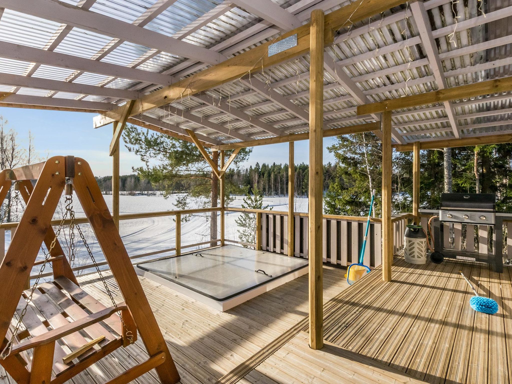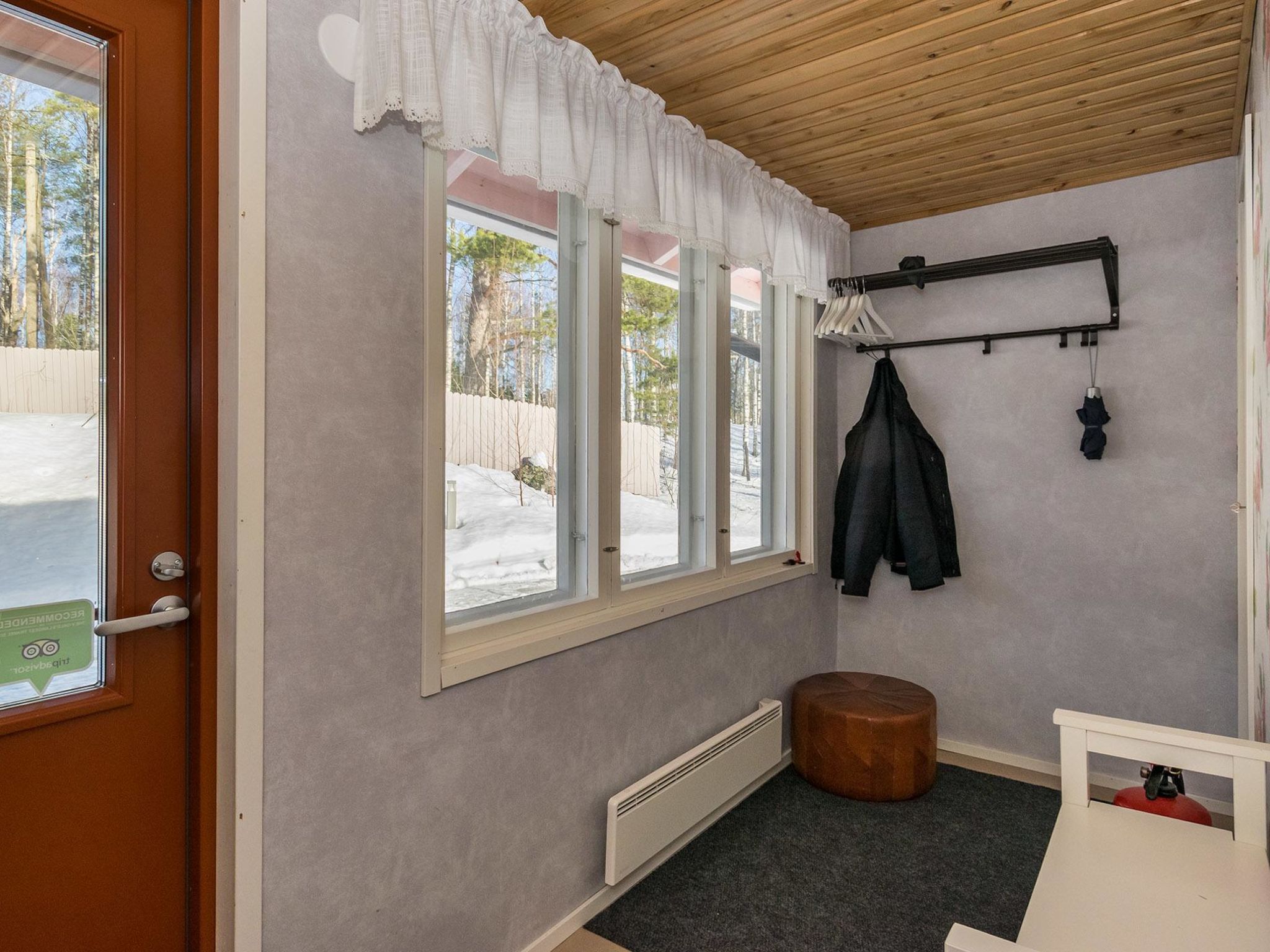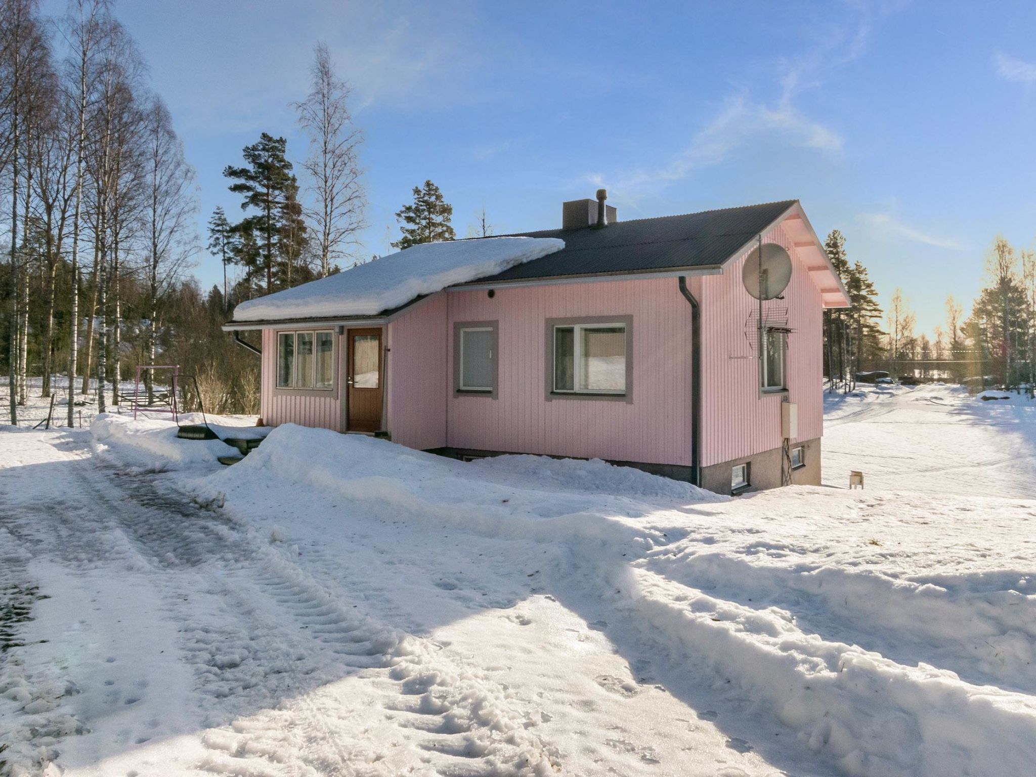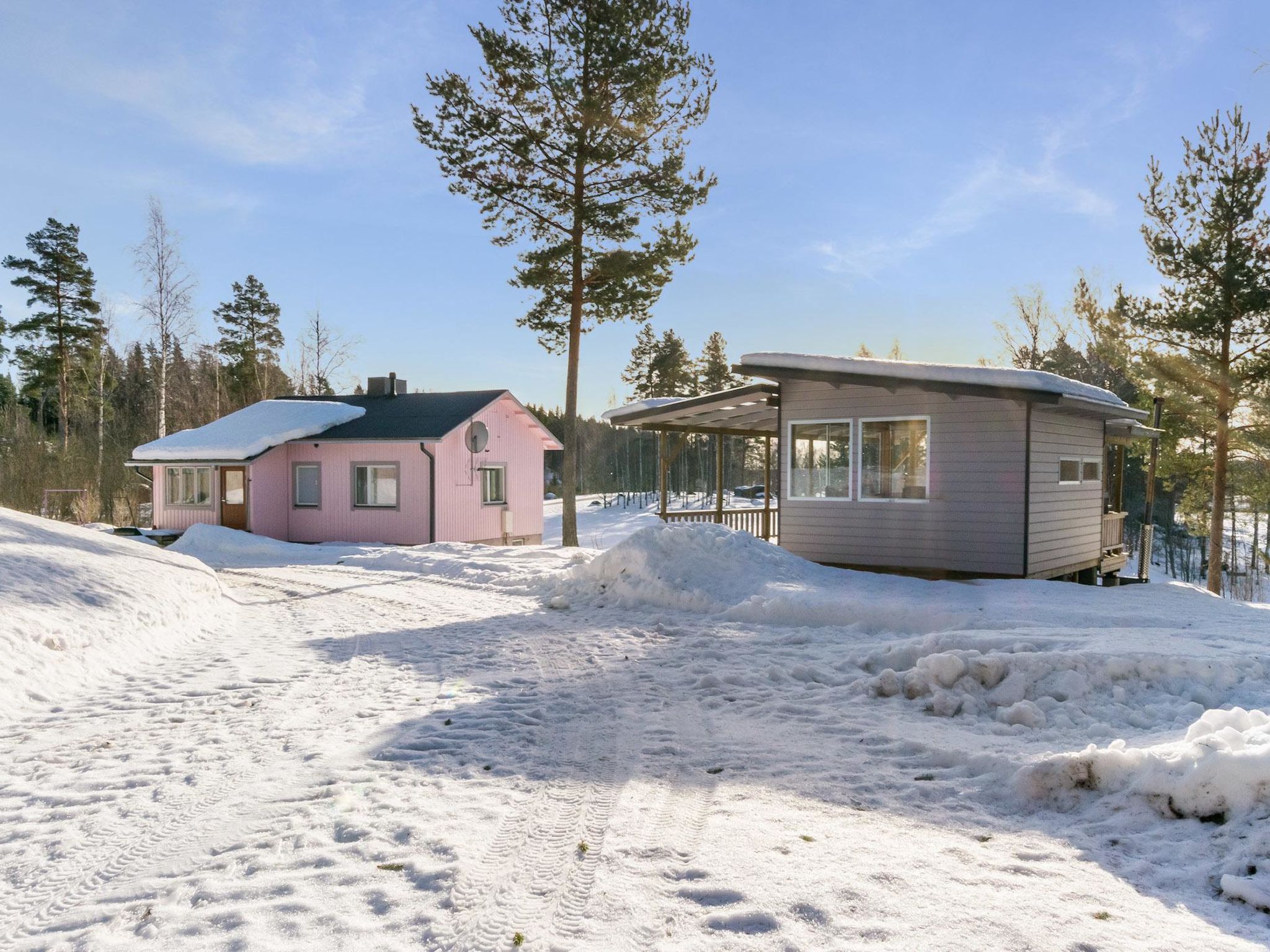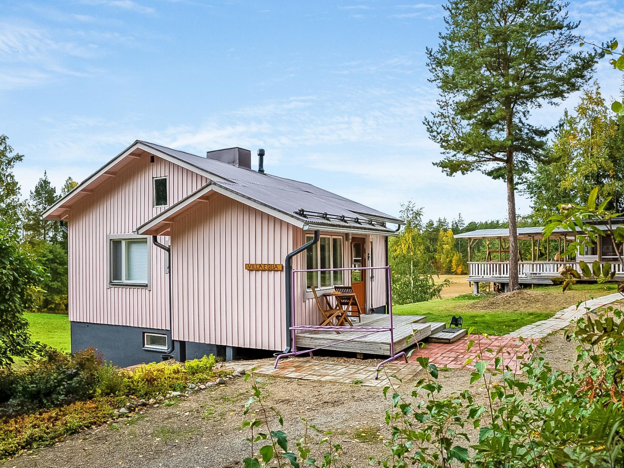55 km nordwestlich von Heinola, See Suojärvi 800 m entfernt (Länge 3 km, Breite 0.8 km), harter und tiefer Strand mit einigen Nachbarn geteilt, eigenes Boot. Holz-Ferienhaus, Baujahr 1965, renoviert 2014, Wohnküche mit Schlafsofa für 1 Person, Schlafzimmer mit 2 Betten, Sauna (elektrisch), Wasch-/Hauswirtschaftsraum mit begehbarer Dusche, Waschmaschine und Trockner, Veranda, Terrasse. Sommerküche, "DROP-Pool" und Terrasse 30 m². Holzschuppen. Internetzugang (Wi-Fi). Klimaanlage. Satellitenantenne. Villa Ebba ist ein nettes, rosa gefärbtes Omas Ferienhäuschen, mitten auf dem Land. Auf der überdachten Terrasse befindet sich "DROP-Pool" und holzbefeurter Whirlpool. Während des Zeitraums 1.5.-30.10. kann der Pool frei genutzt werden. Im Winter heizt der Eigentümer den Pool auf, die Gebühr beträgt € 100/Zeit (Barzahlung direkt beim Eigentümer). Die Heizung muss rechtszeitig gebucht werden. Der Pool hat eine Grenze von -15 Grad (kann nicht verwendet werden, wenn es -15 Grad oder kälter ist). Der Strand ist 0.8 km entfernt und kann über einen Pfad erreicht werden. Der Strand ist hart und tief. Der Eigentümer vermietet eine Sauna am See (3 km entfernt), wo sich auch ein Strand für Kinder befindet. Die Miete für die Sauna am See beträgt € 100/Nutzung. Die Sauna wird beheizt, Zahlung vor Ort. Neben der Villa Ebba leben im Sommer ein paar Dutzend Schafe. Die Gäste können die Schafe füttern, wenn sie wollen. Ein professionell ausgebildeter Schäferhund (Hütehund Vilja) ist als Assistent dabei. Die Eigentümer können gerne über die Schafe und ihre Behandlung berichten. Tervalepikko's Schafe leben unter konventionellen Bedingungen inmitten von Wiese und Wald. Geben Sie bitte bei der Buchung des Ferienhauses an, ob Sie Reisebett für Babys und Hochstuhl benötigen. Der Eigentümer bringt diese beim Bedarf ins Haus. Der Eigentümer kann Aussenbordmotor, Freizeitausrüstung (z.B. Kanus, Fahrräder, Elektrofahrräder und Angelausrüstung) sowie Seesauna vermieten. Der Eigentümer hat zwei weitere Ferienhäuser (12927 und 12928), 2 km entfernt. Im Winter (wenn genügend Schnee liegt) beginnen sowohl die Freestyle- als auch die klassische Piste beim Hof des Ferienhauses, 11 km lang. Sysmä 7 km, Tennisplatz, Joggingstrecke, Eisbahn (Kunsteis), Akkordeon Museum, Schwimmhalle, Kino 7 km, Pulkkilanharju 40 km, Vääksy Kanal 60 km. Nationalpark Päijätsalo (Päijänne-Nationalpark) 15 km, Kammiovuori 24 km / Südfinnlands zweithöchster Punkt (221 m), "Yhden lehmän Navetan Pub" (Scheunenkneipe) 22 km, Innenpool und Fitnesscenter des Sysmä Diensthauses 7 km, Golfplatz Hartola Golf 28 km. Reitmöglichkeiten im Sommer - Pferdestall "Starhill" 15 km, ganzjährig Unettu Pferdefarm Hartola 29 km, Reitstall Vahto in Asikkala 30 km, Purnuvuori Ski 46 km, Lahti, Messilä 80 km, Himos 102 km, Nokia Eden 183 km, Spa Serena Espoo 199 km.