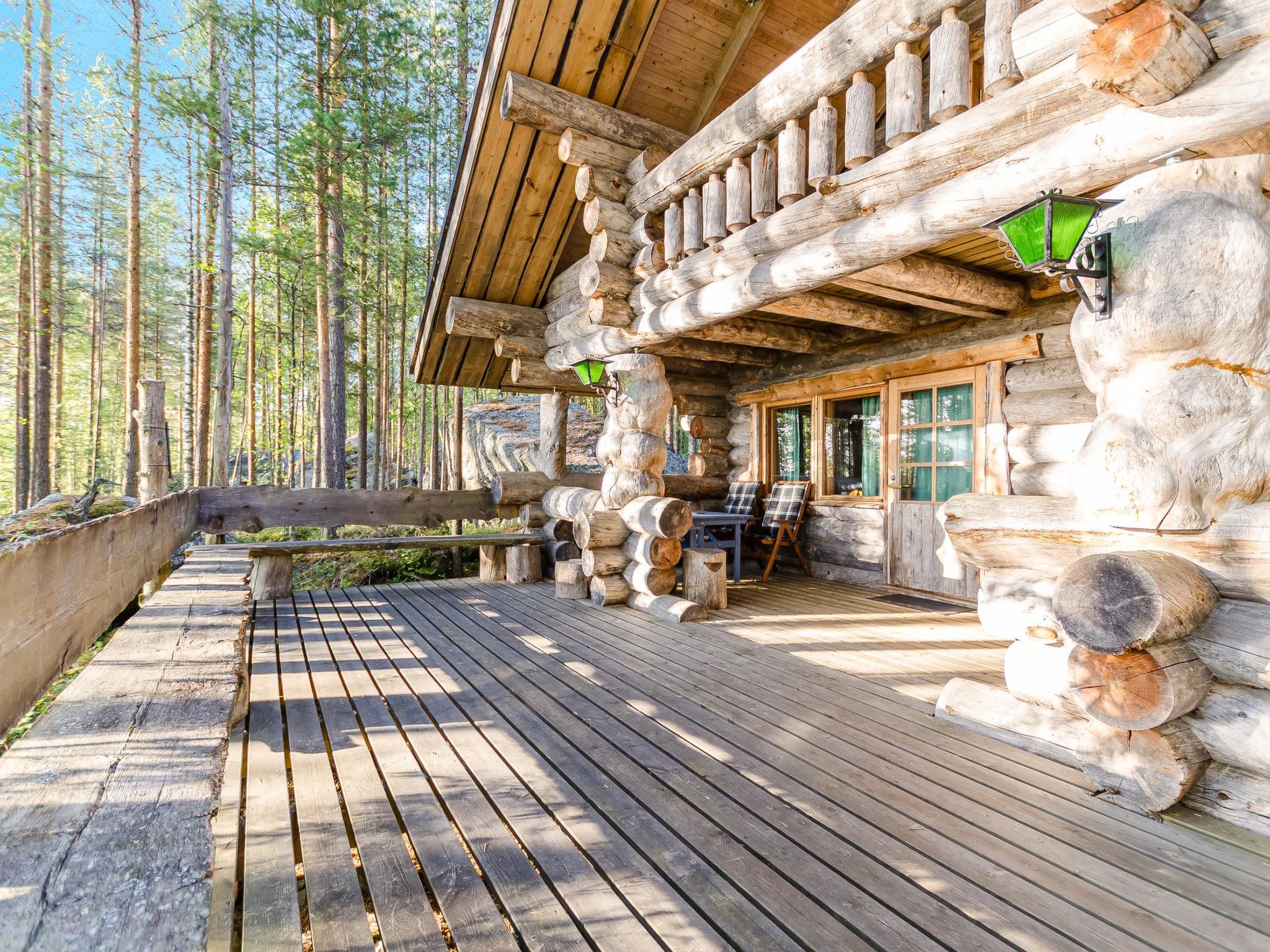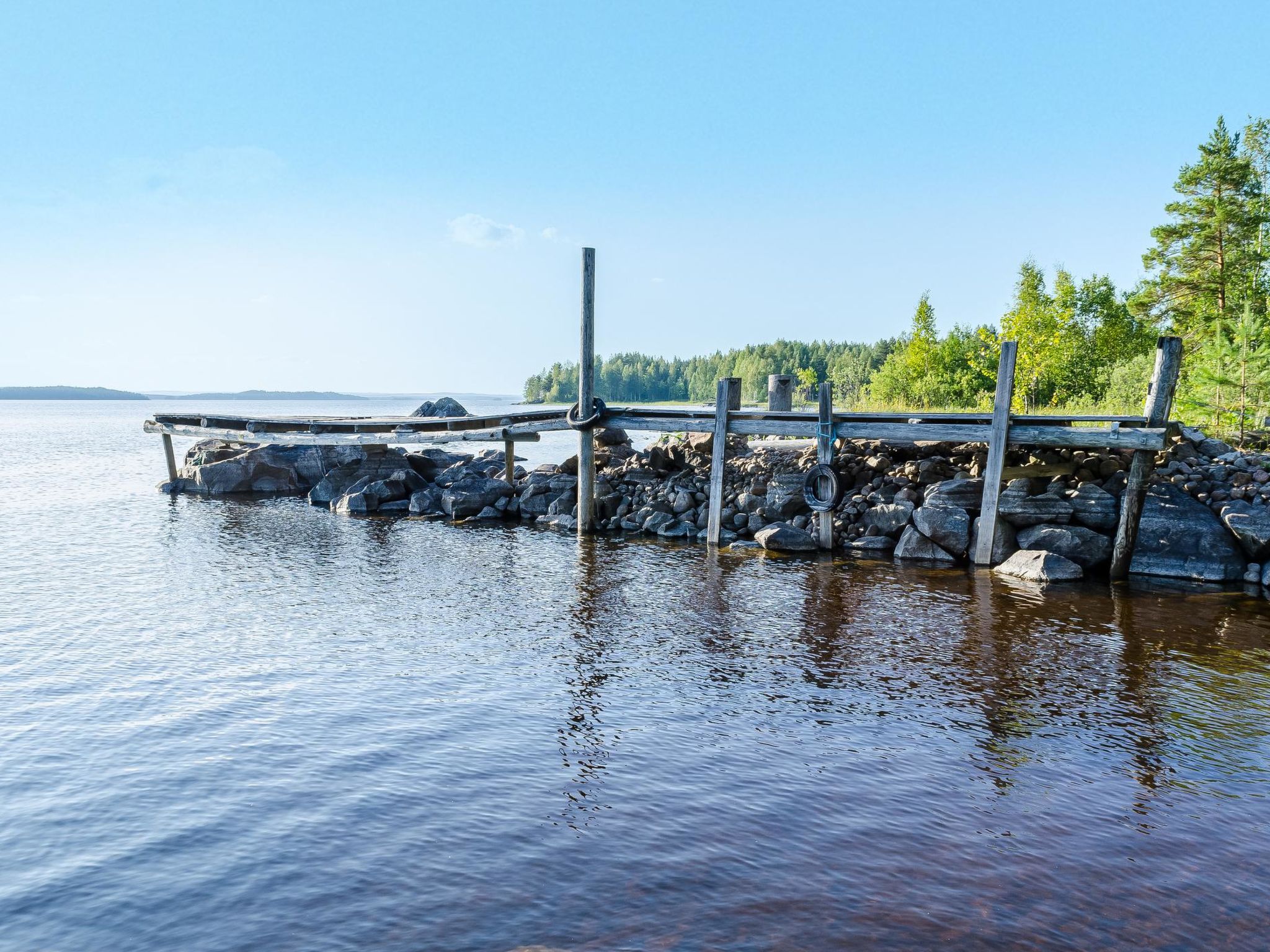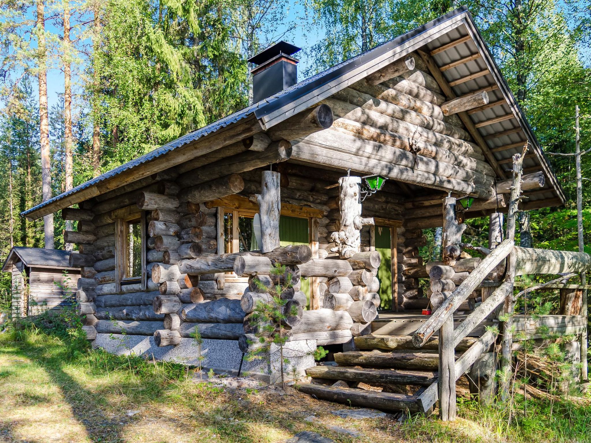 80 km nördlich von Joensuu, See Pielinen (871.2 km2) 25 m, flacher und sandiger Boden, eigenes Ufer und Boot. Blockhaus, Baujahr 1997, Wohnküche, Schlafnische (mit Vorhang) mit Schlafsofa, Schlafgalerie mit Doppelbett und zwei Einzelbetten (auf den Bildern Schlafsofa in der Schlafgalerie und Einzelbett in der Nische), Terrasse und Balkon. Separate Sauna (Holzofen), Dusche in der Sauna (kein separater Waschraum), Ankleide-/Kaminzimmer. Das Wasser in der Dusche wird warm, wenn die Sauna beheizt wird. Der Eingang zur Sauna erfolgt über die Veranda. Hervorragendes Blockhaus in der Natur. Kinderfreundlicher Strand ist nach Osten ausgerichtet. Tretboot und Kanu zur Verfügung. Gute Möglichkeiten zum Angeln, Trolling, Ködern und Netzfischen sind im Preis inbegriffen. Aussenbordmotor und Wasserroller können separat gemietet werden. Es ist möglich, Angel- und Picknickausflüge mit dem Eigentümer zu arrangieren. Gute Jagdmöglichkeiten: Kleinwild. Rauchsauna kann gemietet werden. Der Eigentümer vermietet Motor für Boot, EURO 10/Tag + Treibstoff. Reservierungen beginnen um 16:00 Uhr und enden um 12:00 Uhr (auch bei Wochenendbuchungen). Die Kosten für die Endreinigung werden zum Preis hinzugerechnet.