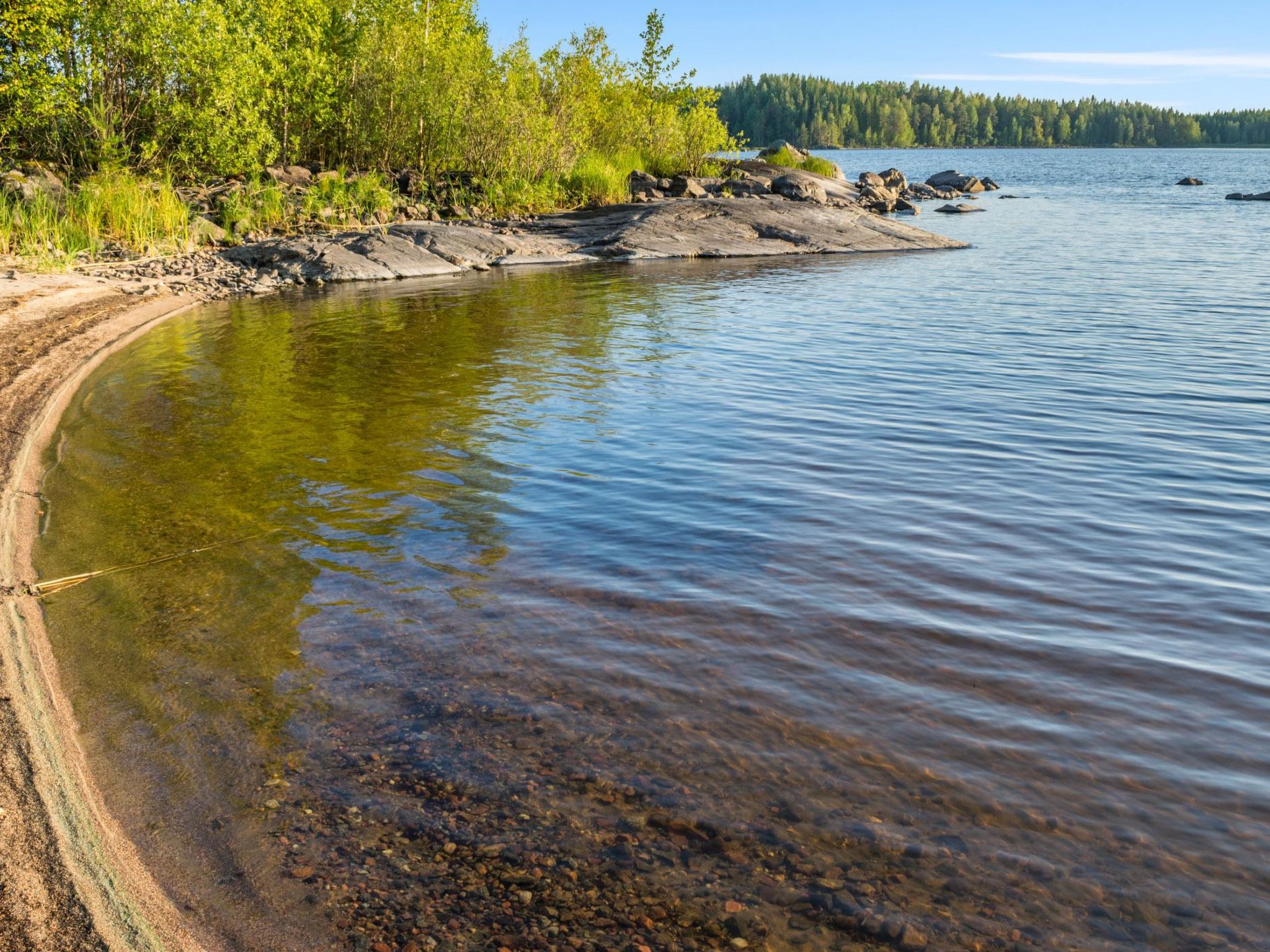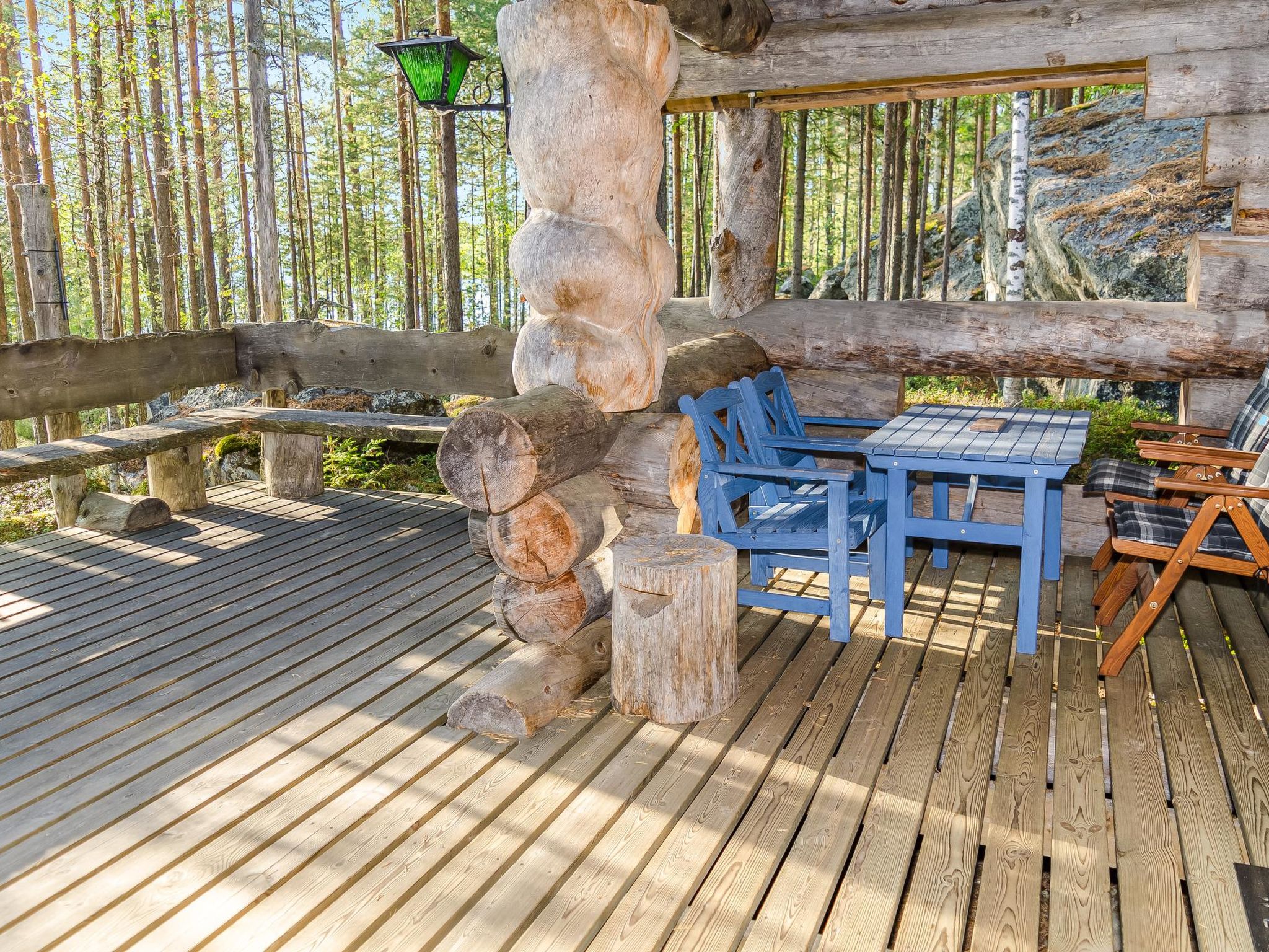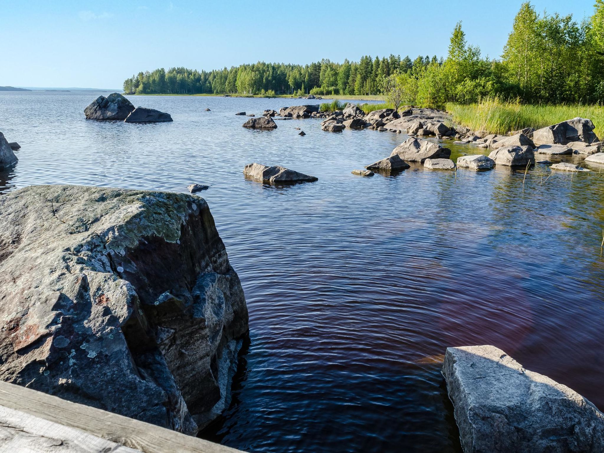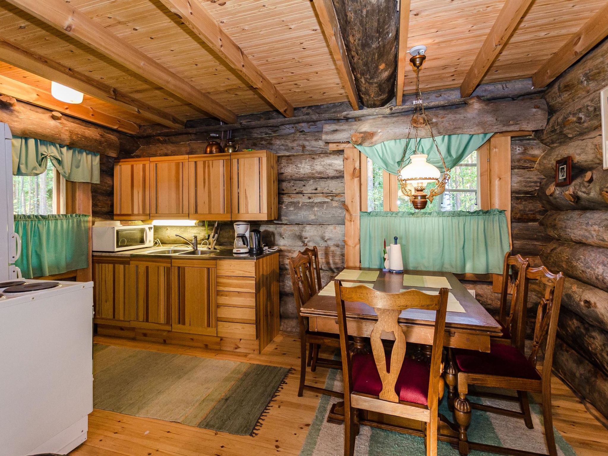 80 km nördlich von Joensuu, See Pielinen (871.2 km2) 25 m, flacher und sandiger Boden, eigenes Ufer und Boot. Blockhaus, Baujahr 1997, Wohnküche, Schlafnische (mit Vorhang) mit Schlafsofa, Schlafgalerie mit Doppelbett und zwei Einzelbetten (auf den Bildern Schlafsofa in der Schlafgalerie und Einzelbett in der Nische), Terrasse und Balkon. Separate Sauna (Holzofen), Dusche in der Sauna (kein separater Waschraum), Ankleide-/Kaminzimmer. Das Wasser in der Dusche wird warm, wenn die Sauna beheizt wird. Der Eingang zur Sauna erfolgt über die Veranda. Hervorragendes Blockhaus in der Natur. Kinderfreundlicher Strand ist nach Osten ausgerichtet. Tretboot und Kanu zur Verfügung. Gute Möglichkeiten zum Angeln, Trolling, Ködern und Netzfischen sind im Preis inbegriffen. Aussenbordmotor und Wasserroller können separat gemietet werden. Es ist möglich, Angel- und Picknickausflüge mit dem Eigentümer zu arrangieren. Gute Jagdmöglichkeiten: Kleinwild. Rauchsauna kann gemietet werden. Der Eigentümer vermietet Motor für Boot, EURO 10/Tag + Treibstoff. Reservierungen beginnen um 16:00 Uhr und enden um 12:00 Uhr (auch bei Wochenendbuchungen). Die Kosten für die Endreinigung werden zum Preis hinzugerechnet.