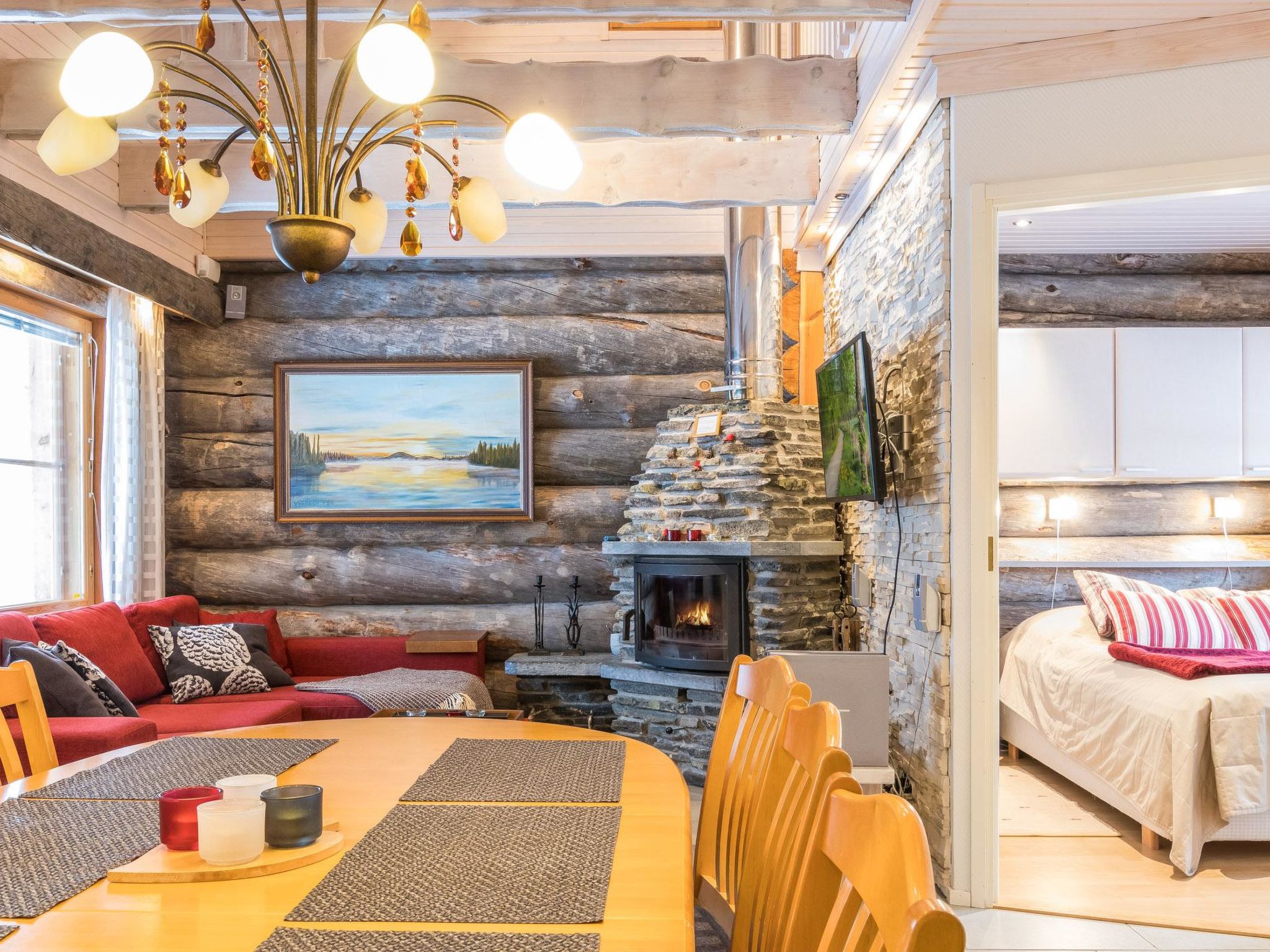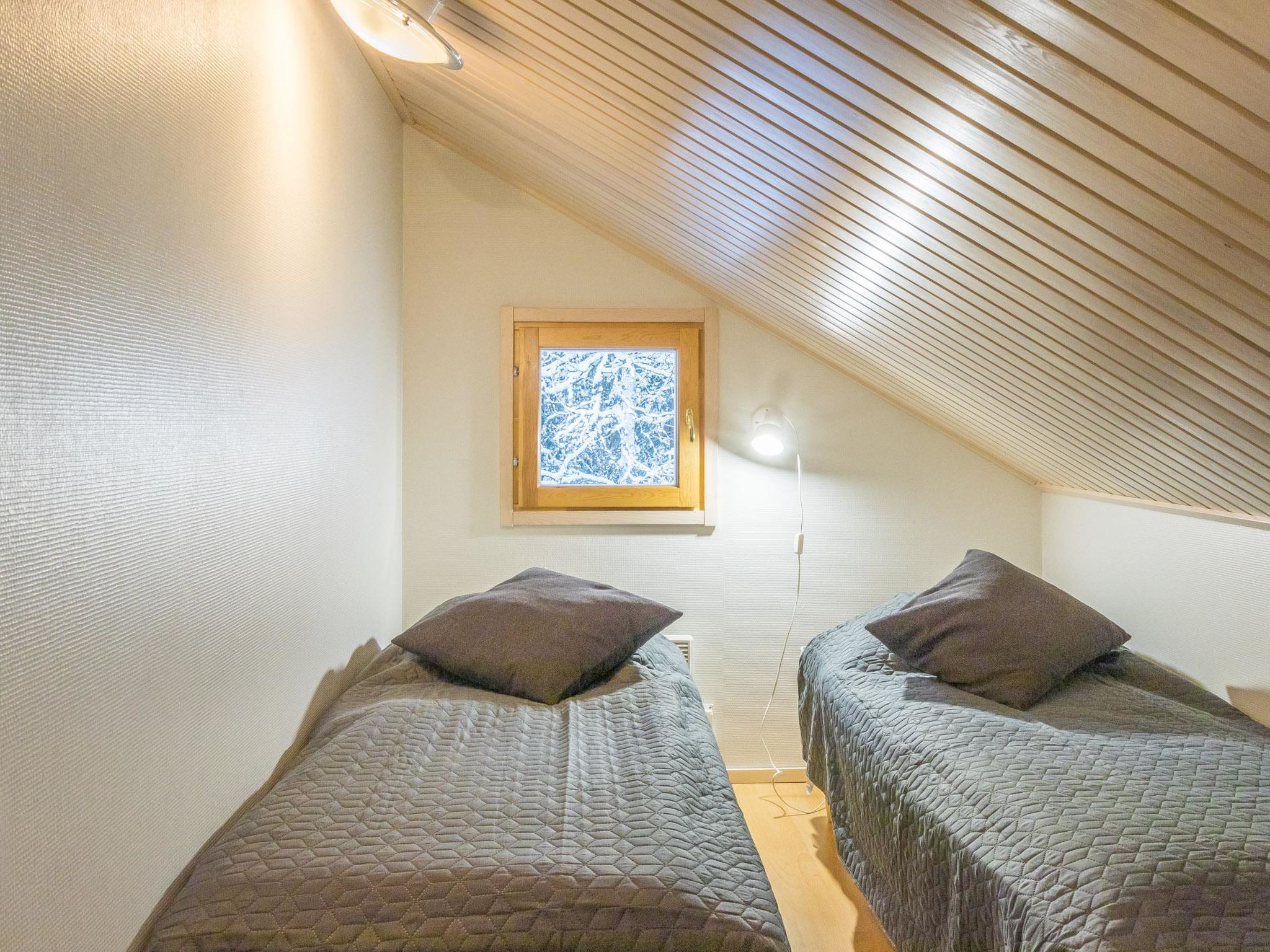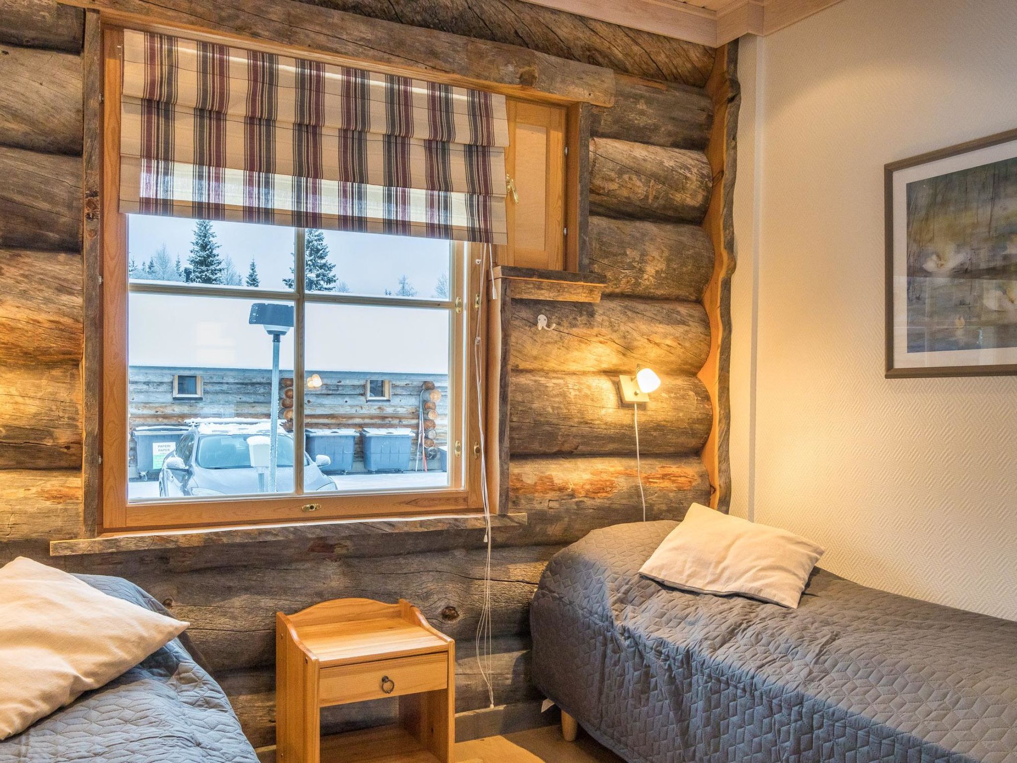 Reihenhauswohnung, 40 km nördlich von Kolari. Wohnküche, 2 Schlafzimmer im Erdgeschoss - eins mit Doppelbett und anderes mit zwei separaten Betten. Auf dem Dachboden Nische (22 m2) mit zwei separaten Einzelbetten und in der Dachboden-Halle zwei separate Betten. Sauna, Waschraum und separate Toilette, Toilette auch auf dem Dachboden. Drahtlose Internetverbindung. Skiwachsraum und Abstellraum. Hochwertige und einzigartige Reihenhauswohnung aus silbergrauem Kelo-Holz, in der Gegend von Nilivaara, in Äkäslompolo. Die Wohnung befindet sich in der Nähe von Dienstleistungen und Skipisten. Keine Haustiere erlaubt. Die Endreinigung ist im Preis inbegriffen, Bettwäsche auf Bestellung erhältlich.