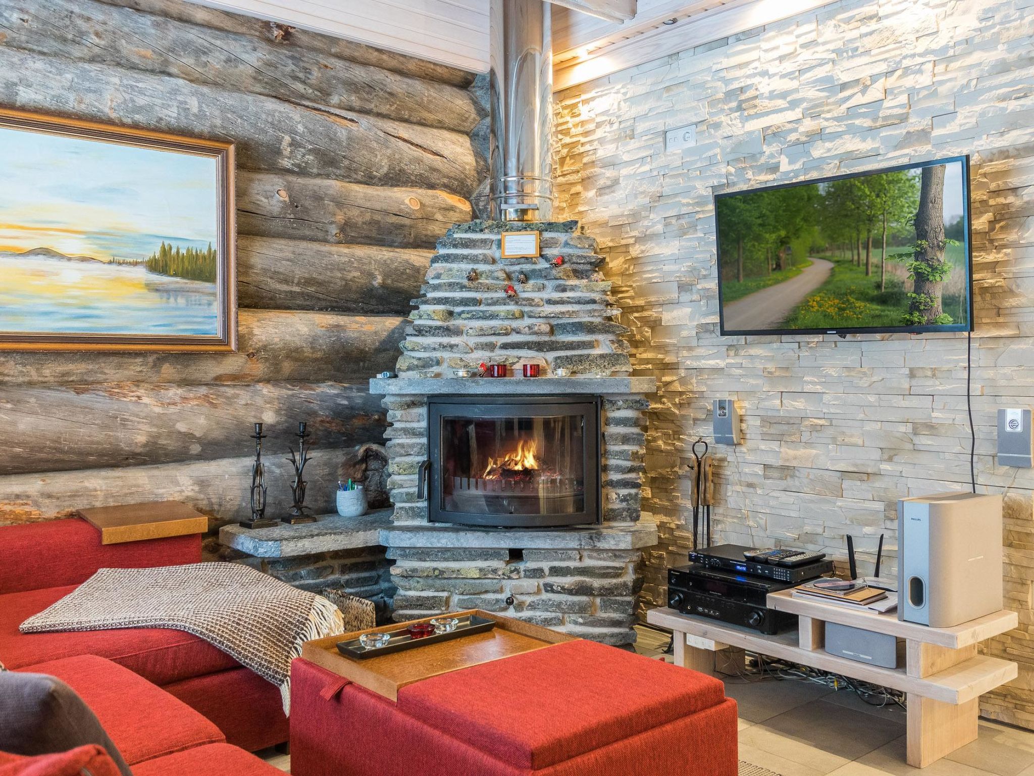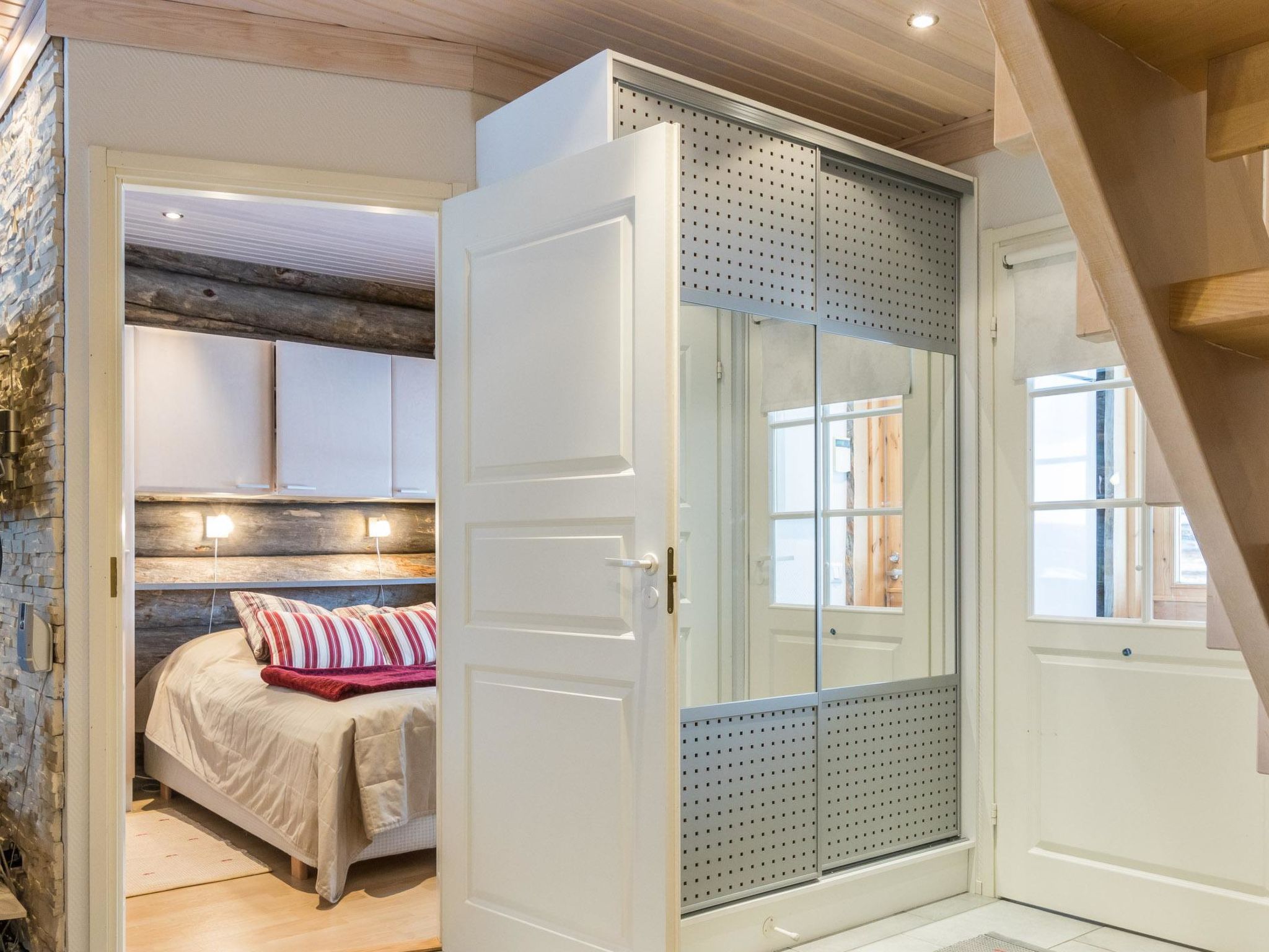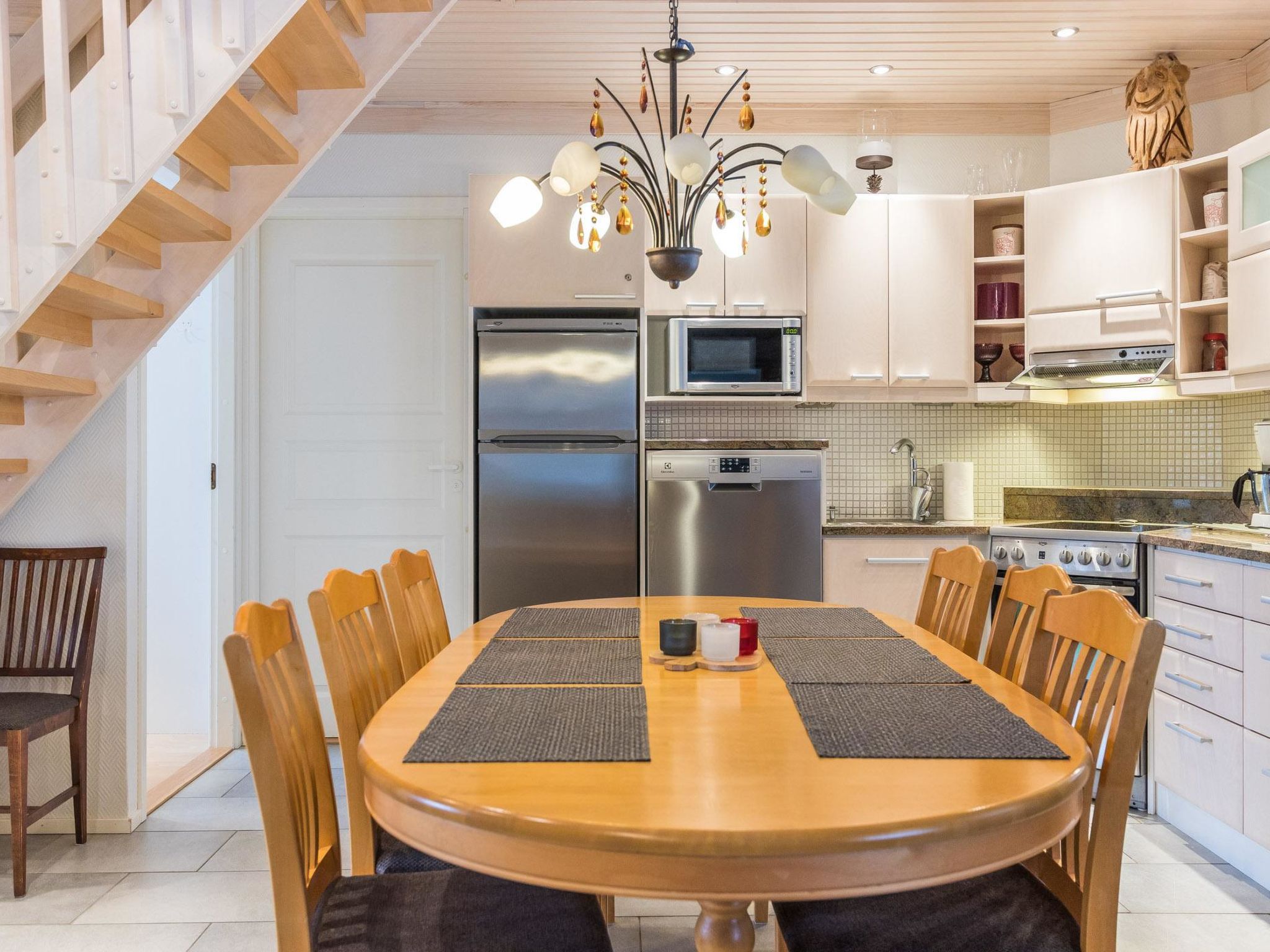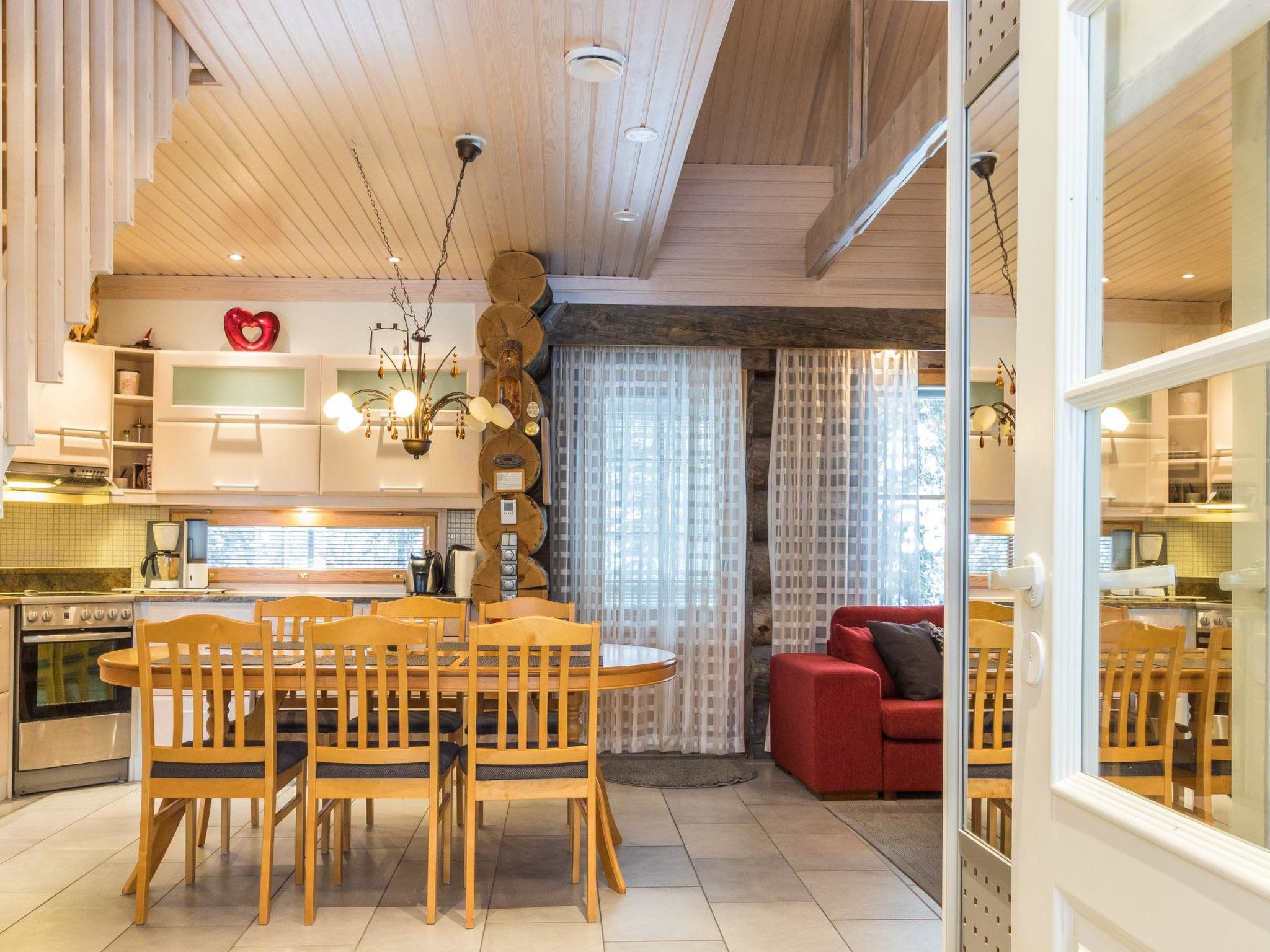 Reihenhauswohnung, 40 km nördlich von Kolari. Wohnküche, 2 Schlafzimmer im Erdgeschoss - eins mit Doppelbett und anderes mit zwei separaten Betten. Auf dem Dachboden Nische (22 m2) mit zwei separaten Einzelbetten und in der Dachboden-Halle zwei separate Betten. Sauna, Waschraum und separate Toilette, Toilette auch auf dem Dachboden. Drahtlose Internetverbindung. Skiwachsraum und Abstellraum. Hochwertige und einzigartige Reihenhauswohnung aus silbergrauem Kelo-Holz, in der Gegend von Nilivaara, in Äkäslompolo. Die Wohnung befindet sich in der Nähe von Dienstleistungen und Skipisten. Keine Haustiere erlaubt. Die Endreinigung ist im Preis inbegriffen, Bettwäsche auf Bestellung erhältlich.
