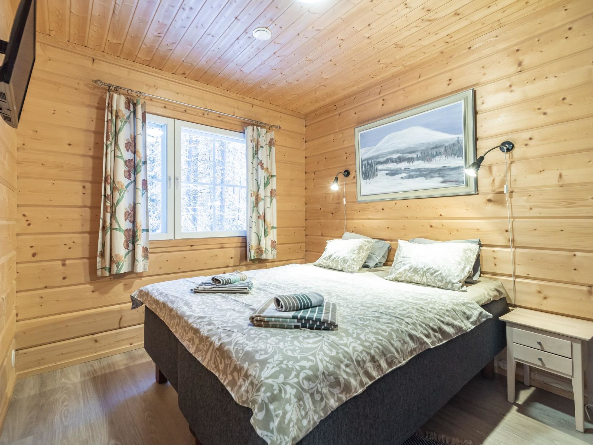Separates Blockferienhaus 40 km nördlich von Kolari, im zentralen Bereich des Dorfes Äkäslompolo, Baujahr 2014. Wohnküche, zwei Schlafzimmer mit je zwei getrennten Betten, elektrische Sauna, Waschraum, Toilette. Skiwartungsraum in der Umgebung. Blockferienhaus im zentralen Bereich des Dorfes Äkäslompolo. Skizentrum Ylläs-Ski 2.8 km, Ylläs Skipisten-Gebiet und Skibus 100 m, Lebensmittelgeschäft 600 m, Restaurant 300 m. Keine Haustiere erlaubt. Die Preise beinhalten Endreinigung und Bettwäsche. Der Eigentümer verlangt eine rückzahlbare Kaution in Höhe von EURO 200.