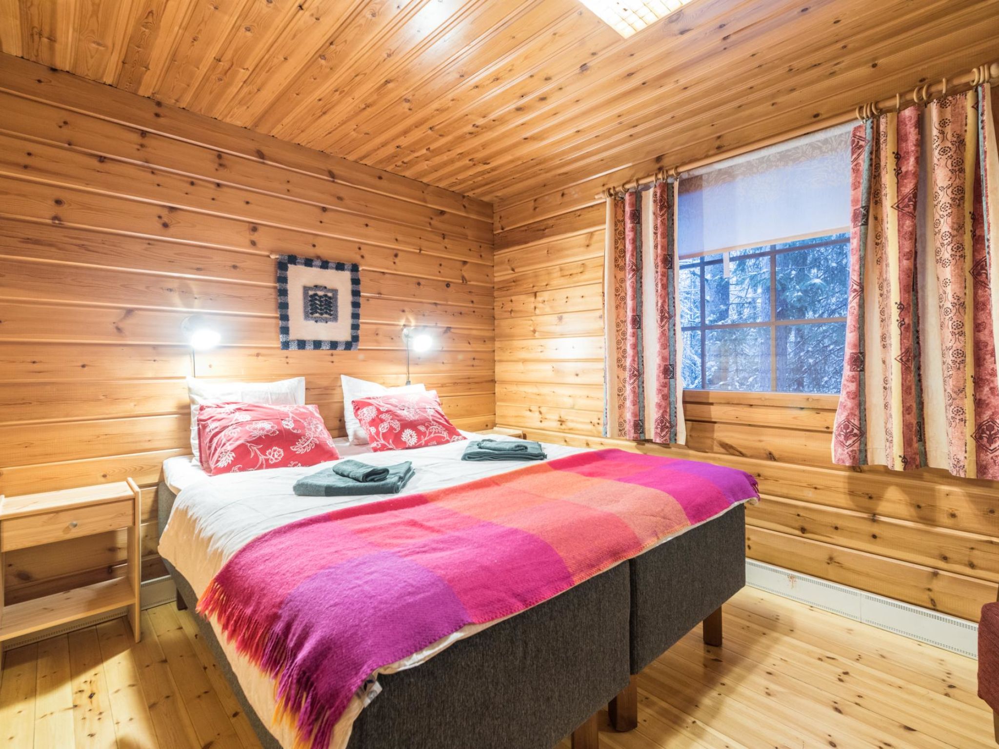 Separates Blockferienhaus, 40 km nördlich von Kolari, im zentralen Bereich des Dorfes Äkäslompolo, Baujahr 1990. Wohnküche mit Schlafsofa (Breite 120 cm), zwei Schlafzimmer mit je zwei getrennten Betten, elektrische Sauna, Waschraum/Toilette. Skiwartungsraum in der Umgebung verfügbar. Blockferienhaus im zentralen Bereich des Dorfes Äkäslompolo. Skigebiet Ylläs-Ski 2.8 km, Skipisten der Gegend Ylläs und Skibus 100 m, Lebensmittelgeschäft 600 m, Restaurant 300 m. Haustiere gegen Aufpreis erlaubt. Die Preise beinhalten Endreinigung und Bettwäsche. Der Eigentümer wird eine Kaution in Höhe von EURO 200 verlangen.