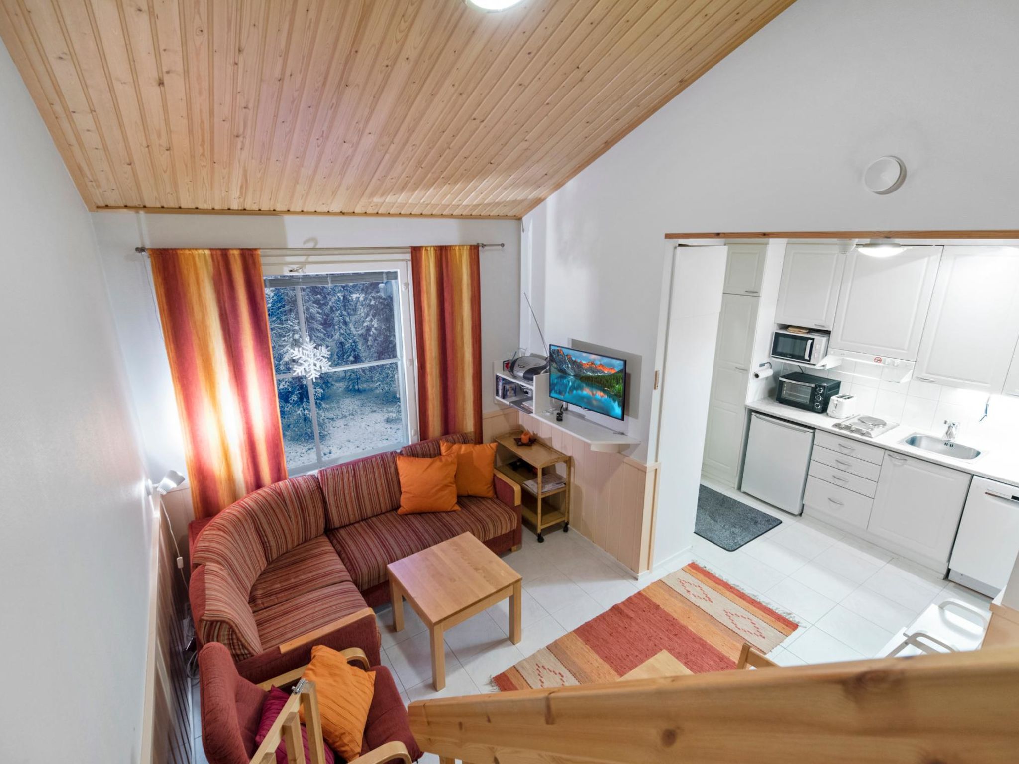 40 km nördlich von Kolari, See Äkäslompolojärvi 1 km, Badestrand 1.5 km. Ferienwohnung für 2+2 Personen, im Apartmenthotel, Baujahr 2006, Fläche 44 m², davon 11 m² auf dem Dachboden. Wohnzimmer/Küchenzeile, Nische mit 2 getrennten Betten, im Wohnzimmer Schlafsofa/Bett für 2 Personen, Dachboden (11 m²) mit 1 Schlafzimmer mit 2 getrennten Betten, Sauna (elektrisch beheizt), Waschraum/WC. Im Erdgeschoss von Yllästar 2 stehen Waschsalon und Skiwartungsraum zur Verfügung. HINWEIS! Kochplatten und kleiner Ofen. Apartmentshotels YlläStar I und II befinden sich im Zentralbereich von Ylläs, an der Niestatie Strasse, nur 600 m vom Äkäshotel entfernt. Sie benötigen kein eigenes Auto, wenn Sie in den Yllästar Ferienwohnungen übernachten. Die Dienstleistungen sind alle von den Ferienwohnungen zu Fuss erreichbar. Sie können den Skibus nutzen, wenn Sie zu den Skipisten wollen. Skispuren führen in der Nähe durch. Endreinigung ist in der Preisen inbegriffen, Bettwäsche wird immer zu den Buchungen hinzugefügt.