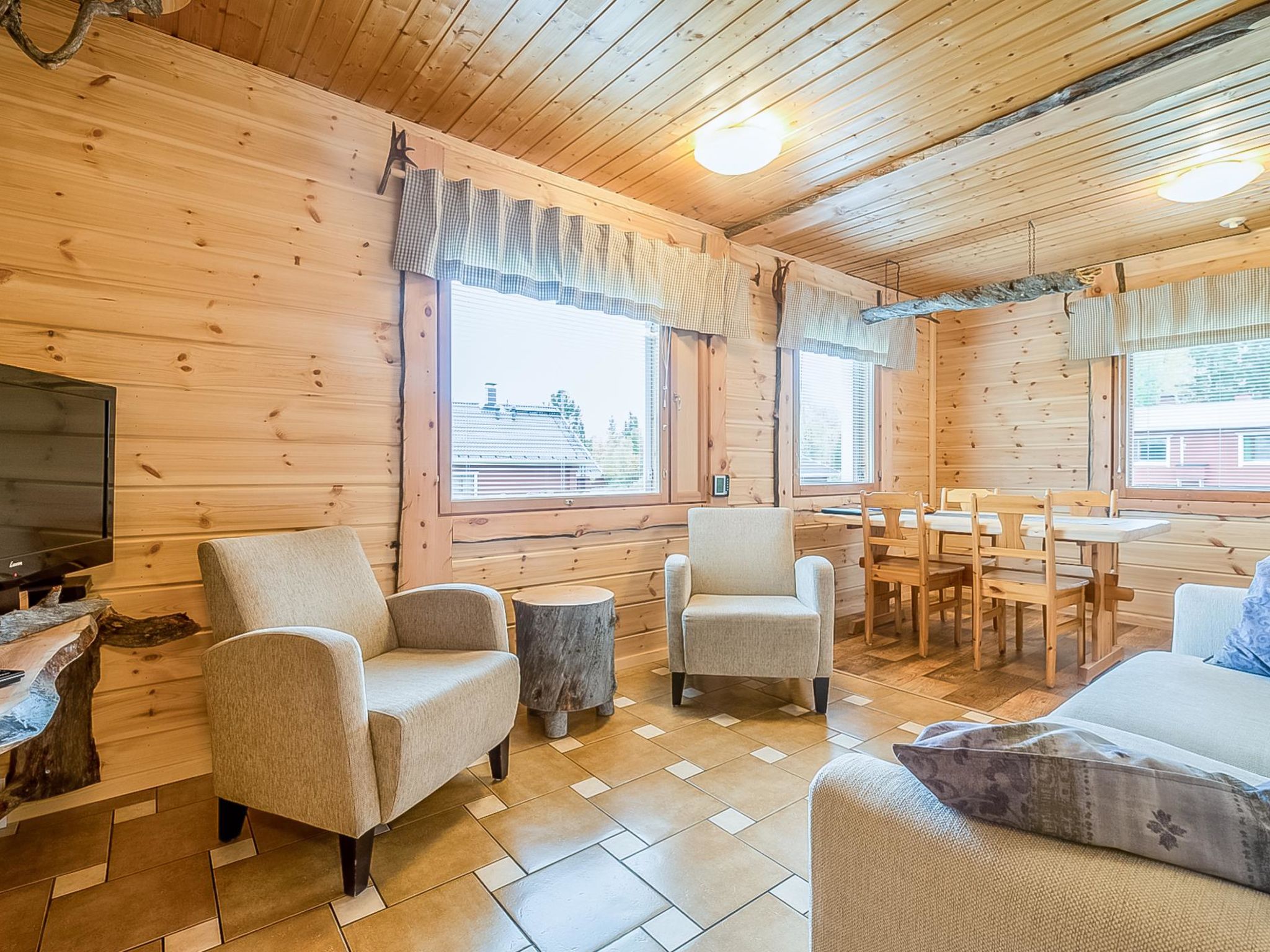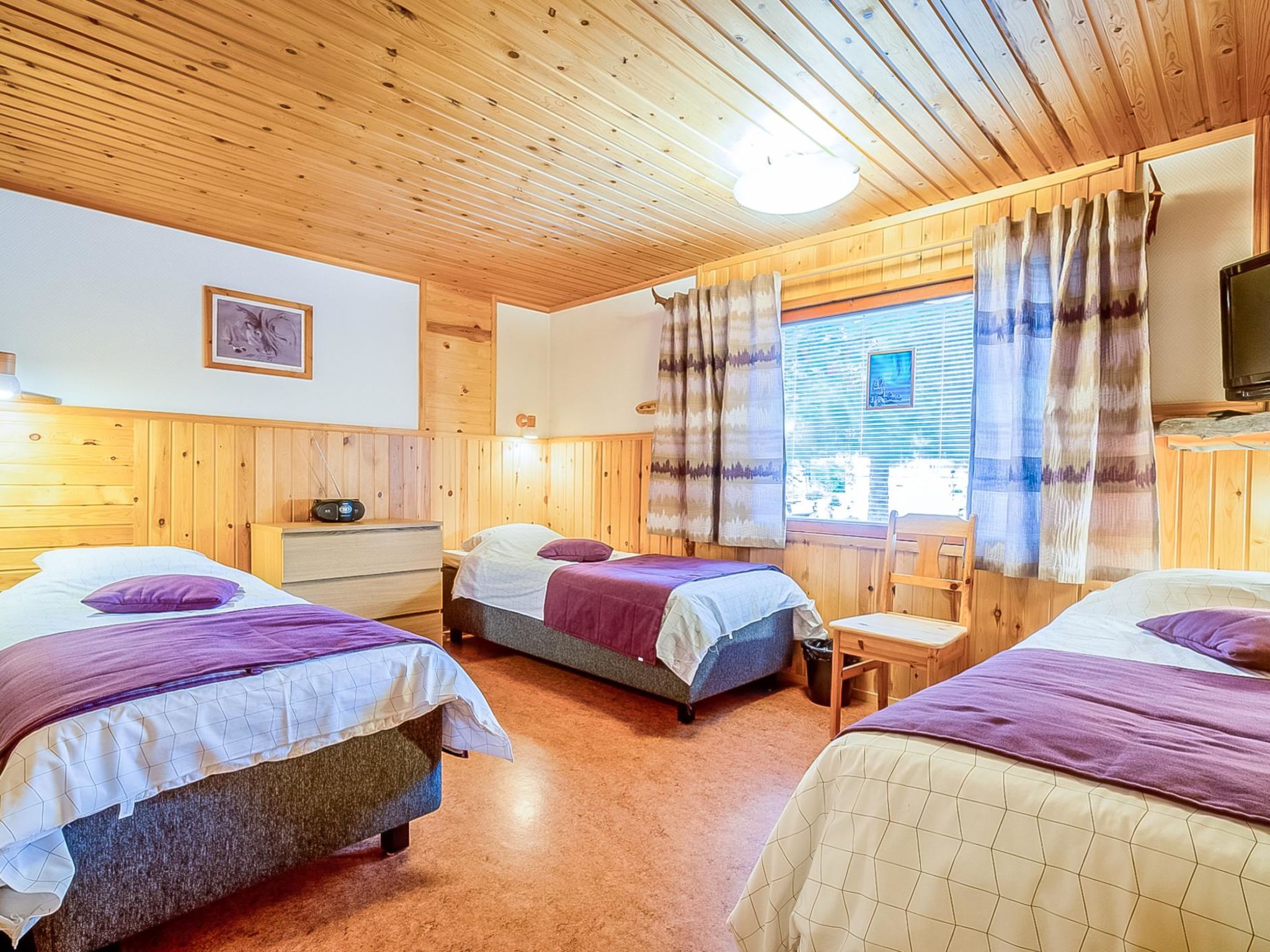 Maximal 1 Haustier/Hund erlaubt. 200 km nördlich von Rovaniemi, See Äkäslompolojärvi 220 m (Länge 1 km, Breite 2 km), flaches und tiefes Ufer, harter Lehmboden, öffentlicher Strand, Boote zur Mitbenutzung. Holzwohnung, Baujahr 1970, renoviert 2002, am anderen Ende Skiraum, Wohnküche, Schlafzimmer mit 2 Betten, Schlafzimmer mit 1 Doppelbett + 1 Bett, Waschraum, Sauna (Elektroherd), Veranda. Kamin ist etwas Besonderes, einer aus Metall. Kostenloses WLAN und Nordlicht-Alarm. Nach Absprache auch Seeufersauna zur Verfügung, Entfernung 220 m. Überdachter Grill zur Mitbenutzung, Entfernung 20 m. Flughafen Kittilä 50 km. Haustiere sind erlaubt, Aufpreis €20/Woche/Tier oder €10/Nacht/Tier. Die Haustiergebühr wird beim Schlüsseldienst bezahlt. Die Endreinigung, Bettwäsche und Feuerholz sind im Preis inbegriffen.Gäste können 2 überdachte Grills, Unterstand und Gasgrill nutzen. Bei Bedarf kann im Haus Ausrüstung für Kinder bereitgestellt werden: Kinderbett, Babystuhl, Töpfchen, Sicherheitssitz für Fahrräder, einfache „Ahkio“-Schlitten, Rodel, Rutschen und „Bob-Schlitten“ im Stil von Stiga. Waschmaschine zur Nutzung, in Gemeinschaftsräumen, vorhanden. Im Winter komplett ausgestattet, mit beheizter Skianlage und Kickschlitten. Im Sommer Fahrräder, Angelruten (Wurmköder) für Kinder, Spielhaus, Schaukeln, Trampolin und Sandkästen. Flughafen (Kittilä) 50 km. Reservierungen beginnen um 14.00 Uhr und enden um 10.00 Uhr (auch bei Wochenendbuchungen).