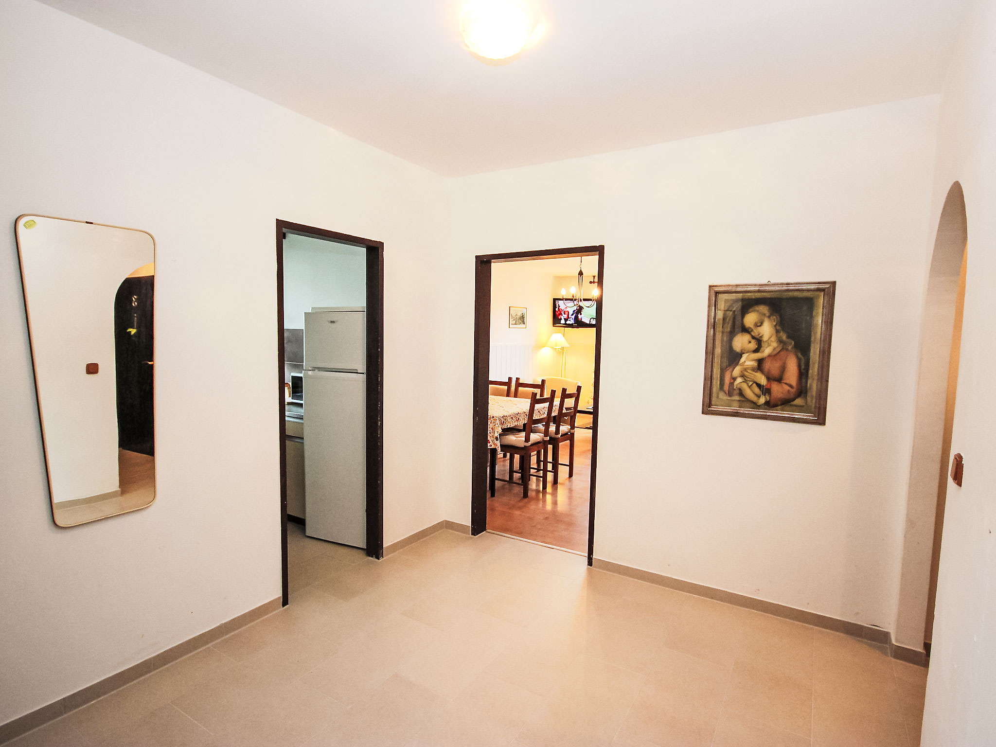 3-Zimmer-Wohnung 65 m2, im Erdgeschoss. Renoviert im Jahre 2016, gemütlich eingerichtet: Eingang. Wohn-/Esszimmer mit 1 Doppeldiwanbett, Essecke und Kabel-TV (Flachbildschirm). Ausgang zum Garten, zur Terrasse. 1 Doppelzimmer. 1 Zimmer mit 2 Betten und 1 x 2 Etagenbetten. Ausgang zur Terrasse. Küche (Backofen, Geschirrspüler, 4 Glaskeramikherd Platten, Mikrowelle). Bad/WC. 2 kleine Terrassen. Terrassenmöbel. Zur Verfügung: Babybett, Haartrockner. Internet (Wireless LAN, gratis). Bitte beachten: Nichtraucher-Unterkunft. Maximal 1 Haustier/Hund erlaubt. Die Terrasse ist zur Mitbenützung.