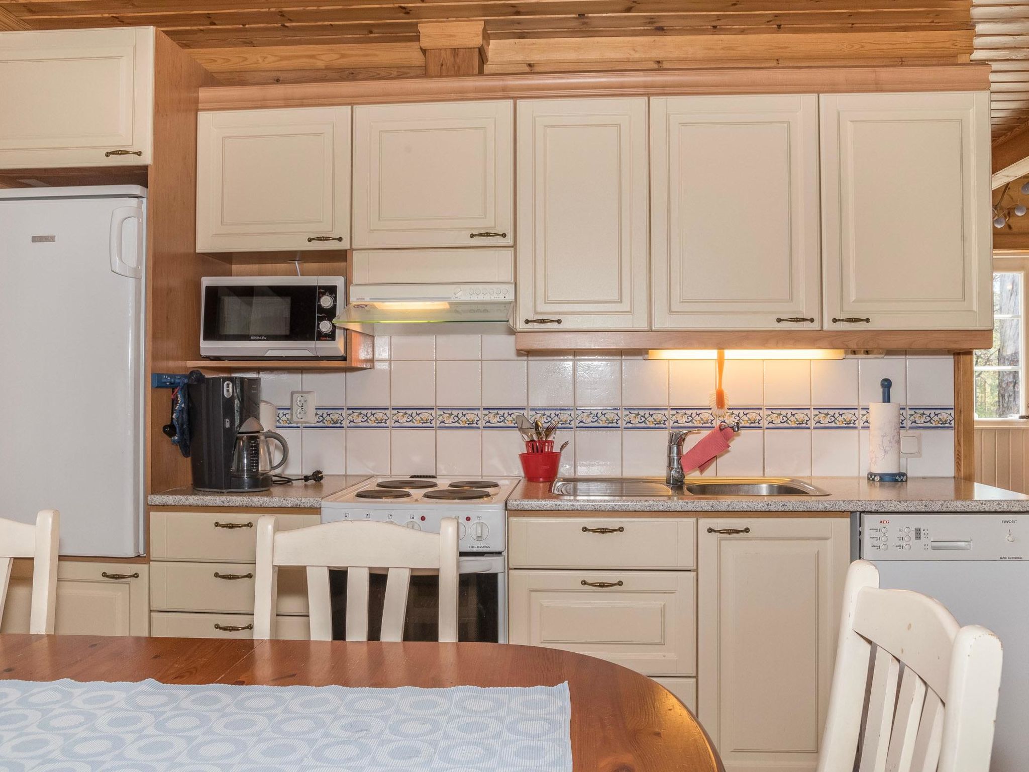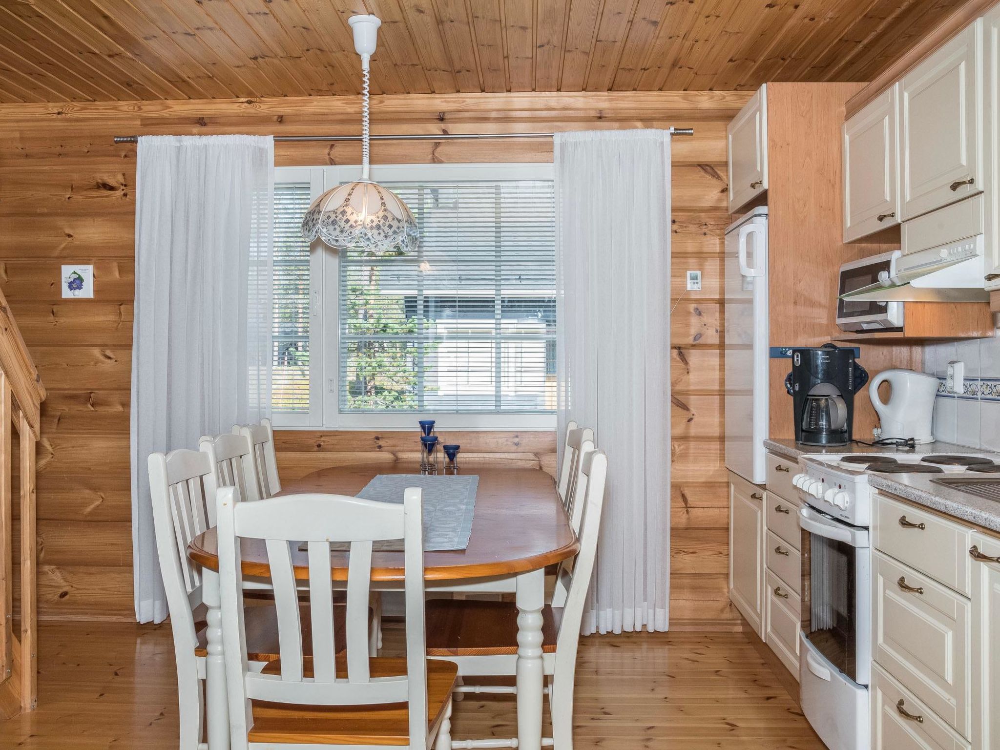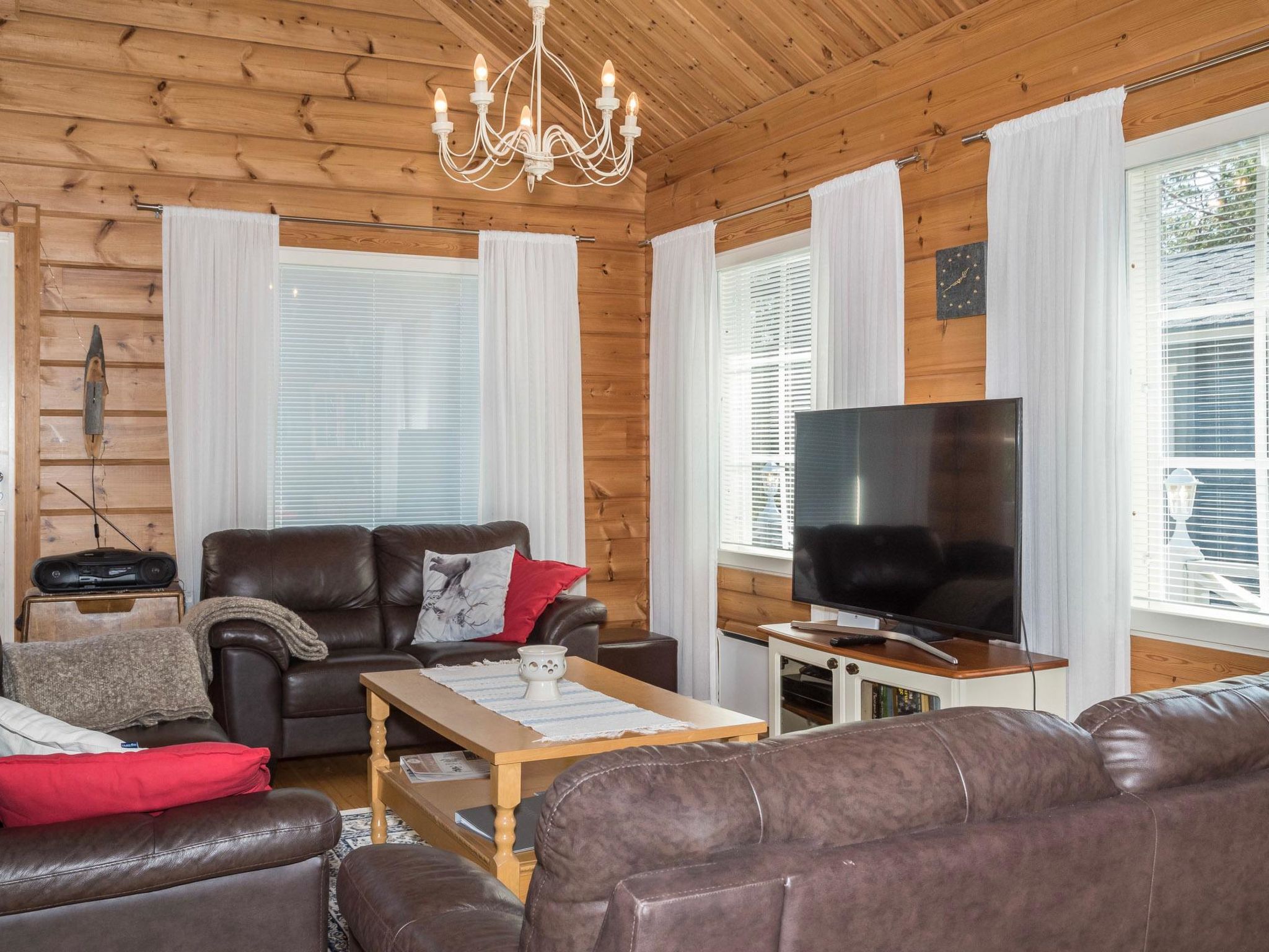 40 km nördlich von Kolari, See Äkäslompolo 1.5 km, Badestrand 3.5 km. Blockhaus, Baujahr 2003. Wohnküche, zwei Schlafzimmer - eins mit 2 getrennten Betten, anderes mit 1 Doppelbett. Dachboden (20 m²) mit 4 getrennten Betten, Sauna (elektrisch), Badezimmer/Toilette, separate Toilette. Ski-Wartungsraum im Lagerraum im Freien, Holzkohlegrill (der Kunde bringt die Holzkohle mit). Wi-Fi Internetzugang. Gut ausgestattetes Blockhaus im Dorf Äkäslompolo, in der Kaulavaara Gegend. Es befindet sich in einem ruhigen und gepflegten Ferienhausgebiet, neben den Skiloipen. Haustiere, gegen Aufpreis, erlaubt (max. 2 Haustiere/Buchung). Die Preise beinhalten Endreinigung, Bettwäsche kann gemietet werden.