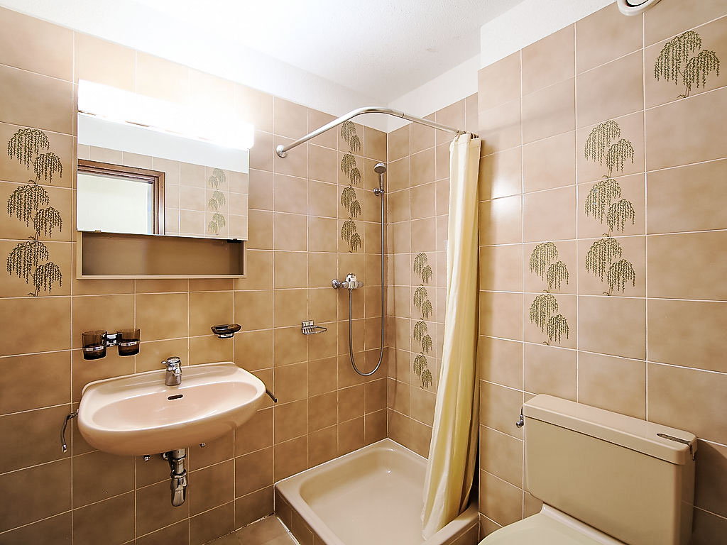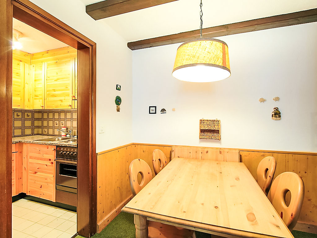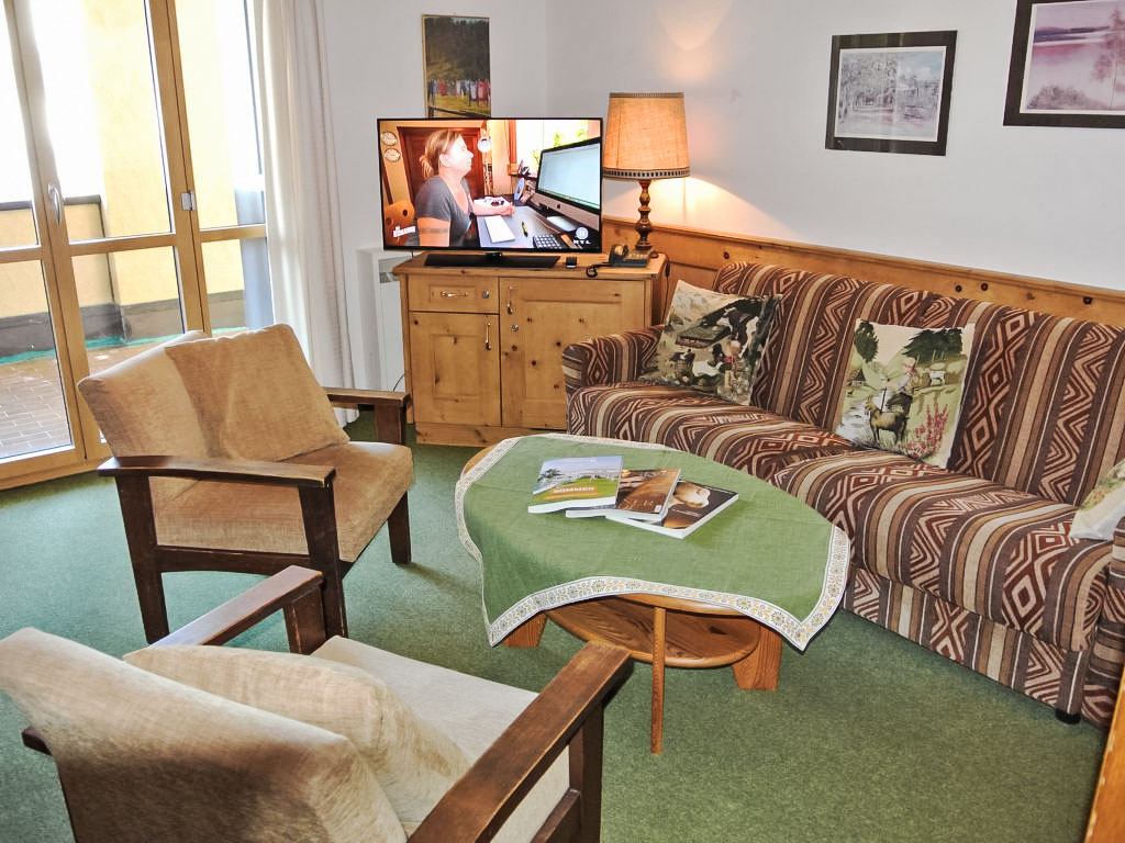 "34-8", 3-Zimmer-Wohnung 84 m2 im 1. Stock. Komfortabel eingerichtet: Wohn-/Esszimmer mit 1 Doppeldiwanbett, Digital-TV, Flachbildschirm und Radio. Ausgang zum Balkon, Richtung Süden. 2 Zimmer, jedes Zimmer mit 2 Betten. Küche (Backofen, Geschirrspüler, elektrische Kaffeemaschine). Bad/WC, Dusche/WC. Balkon, Südlage. Sicht auf die Berge und die Ortschaft. Zur Verfügung: Internet (Wireless LAN, gratis). Garage (extra). Maximal 1 Haustier/Hund erlaubt.