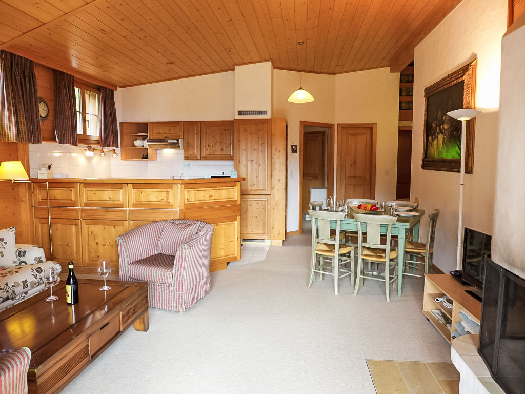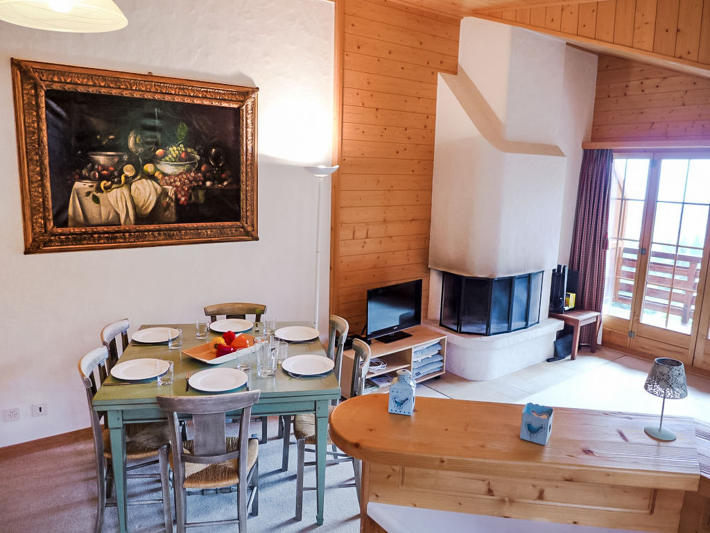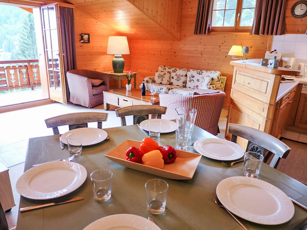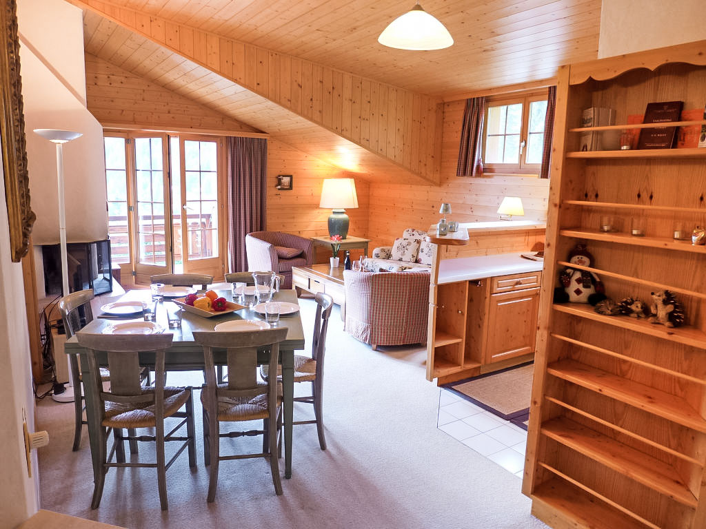 "Le Faucon 7", 4-Zimmer-Wohnung 120 m2 auf 2 Stockwerken im 2. Stock. Hell, teilweise abgeschrägt, komfortabel und schön eingerichtet: Wohn-/Esszimmer mit offenem Kamin, TV und DVD. Ausgang zum Balkon. 1 Zimmer mit 2 Betten und Dusche/WC. 1 Zimmer mit 1 franz. Bett und Bad/WC. Offene Küche (Backofen, Geschirrspüler, 4 Glaskeramikherd Platten, Mikrowelle, Tiefkühler, elektrische Kaffeemaschine). Dachgeschoss: (steile Treppe) abgeschrägte, offene Galerie mit 2 Betten. Dusche/WC. Balkon. Terrassenmöbel. Panoramasicht. Zur Verfügung: Internet (Wireless LAN, gratis). Parkplatz Nr. 7 (überdacht), Garage Nr. 5, Höhe 220 cm, Breite 400 cm.